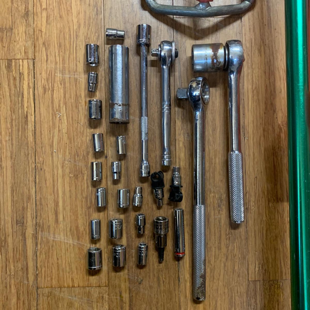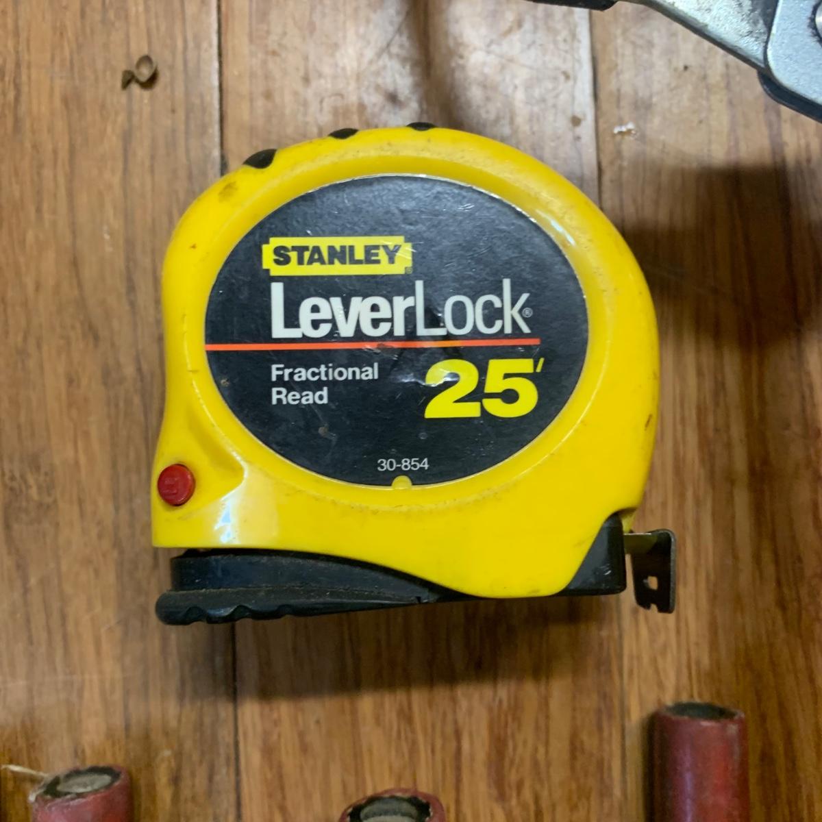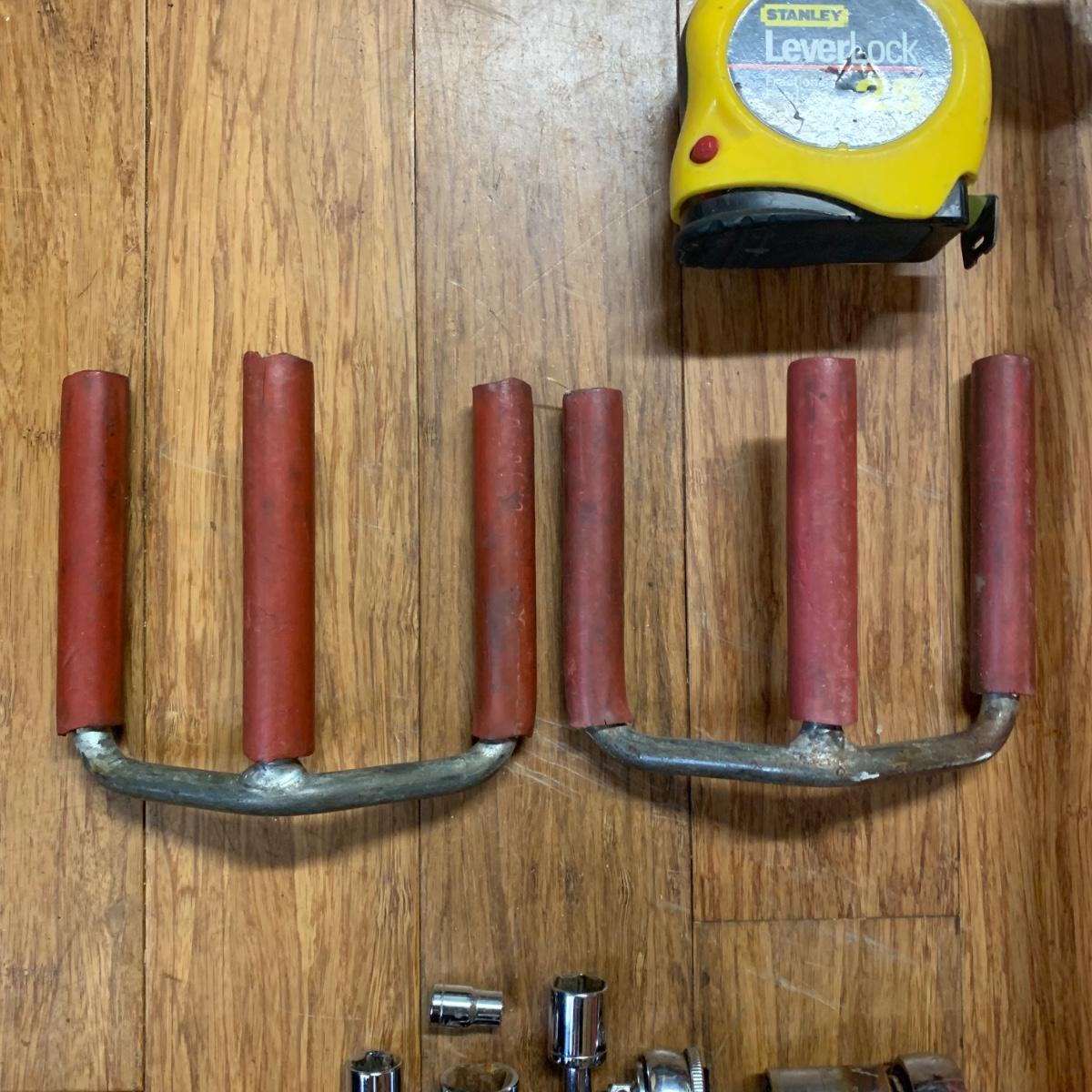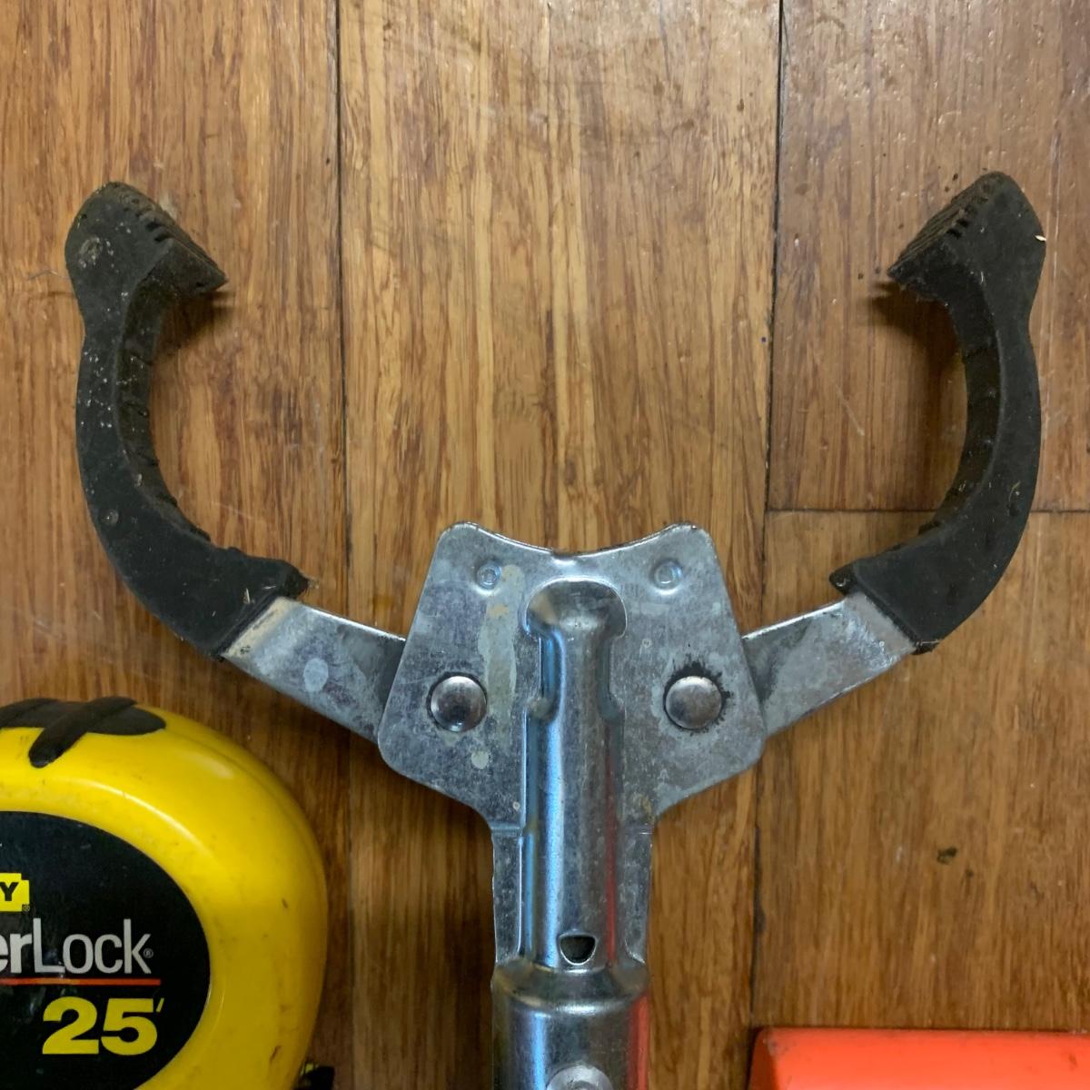 LOT 218 S: Stanley Tape Measure W/ Panel Carriers, Metal Panel Carriers, Ratchets W/ Bits, & Unger Gripper