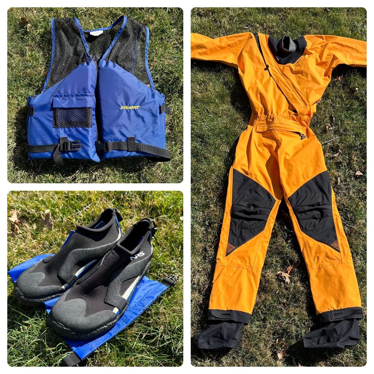 LOT 251X: Stohlquist Amp Drysuit w/ Life Jacket & NRS Kicker Remix Shoes