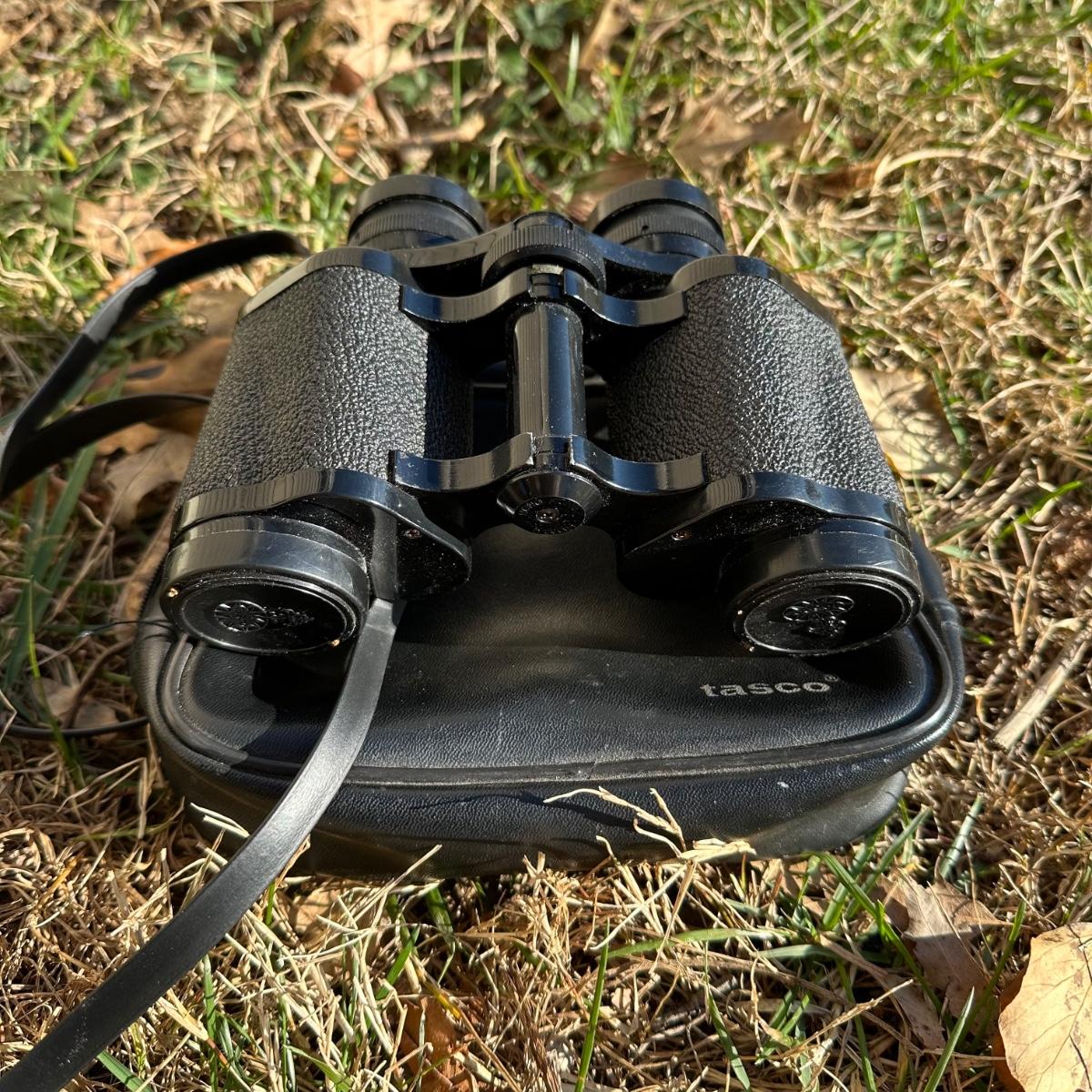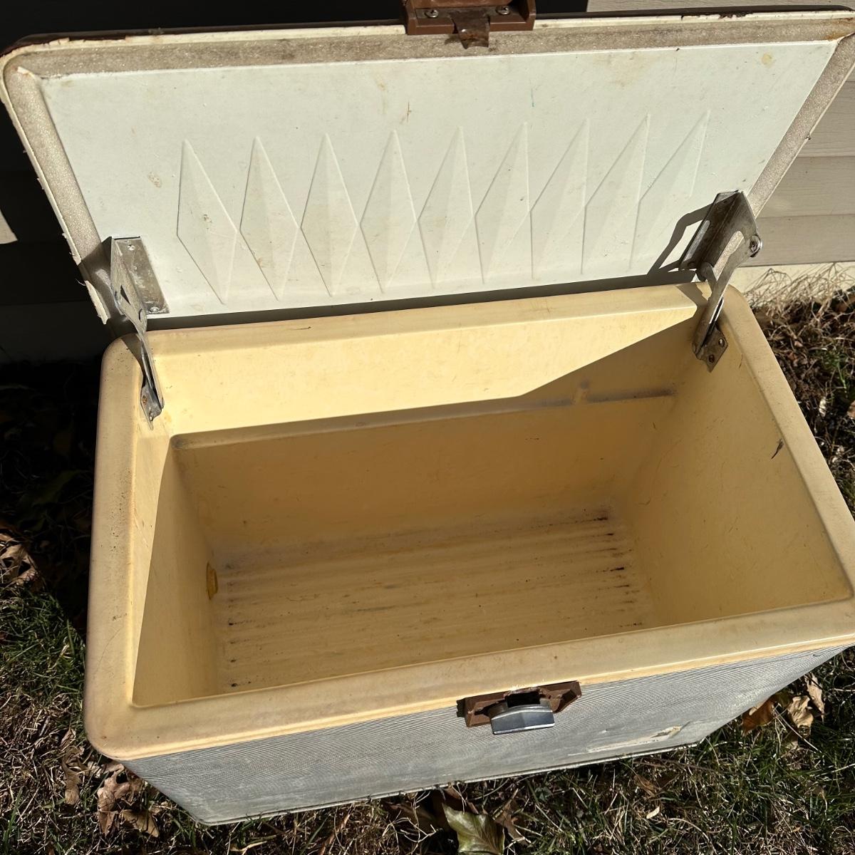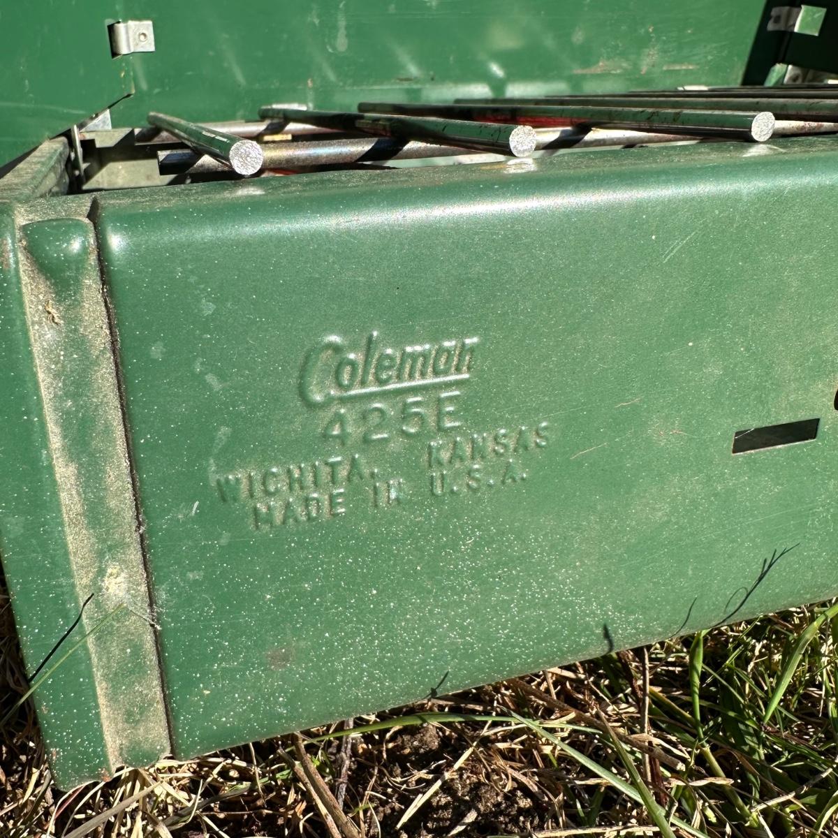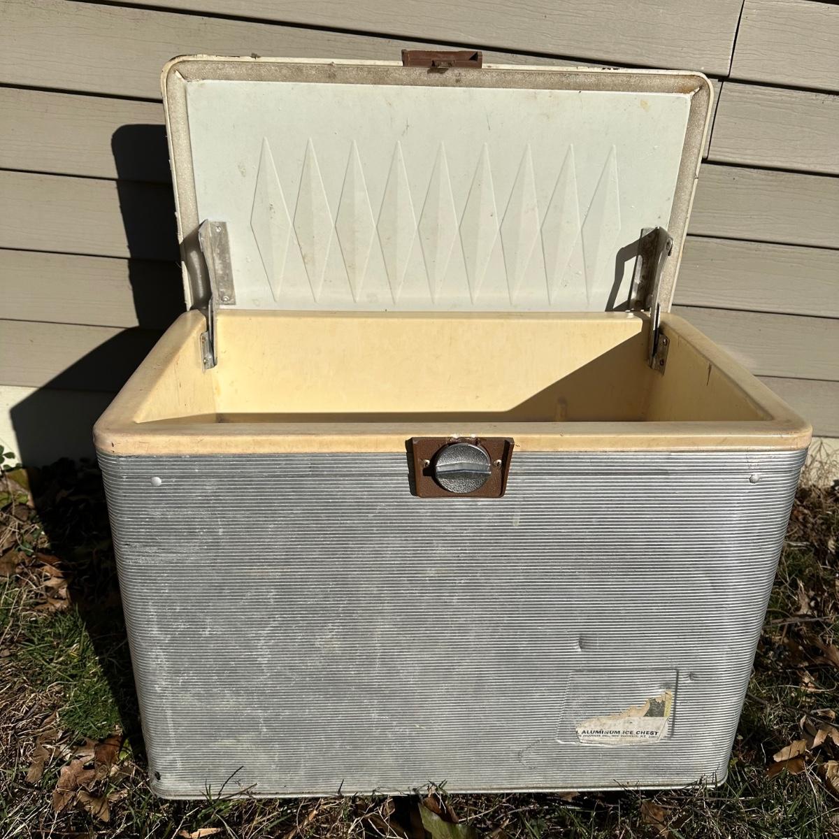 LOT 256S: Camping Lot - Vintage Ice Chest, Tasco Binoculars, Thermos, Coleman Portable Grill & More