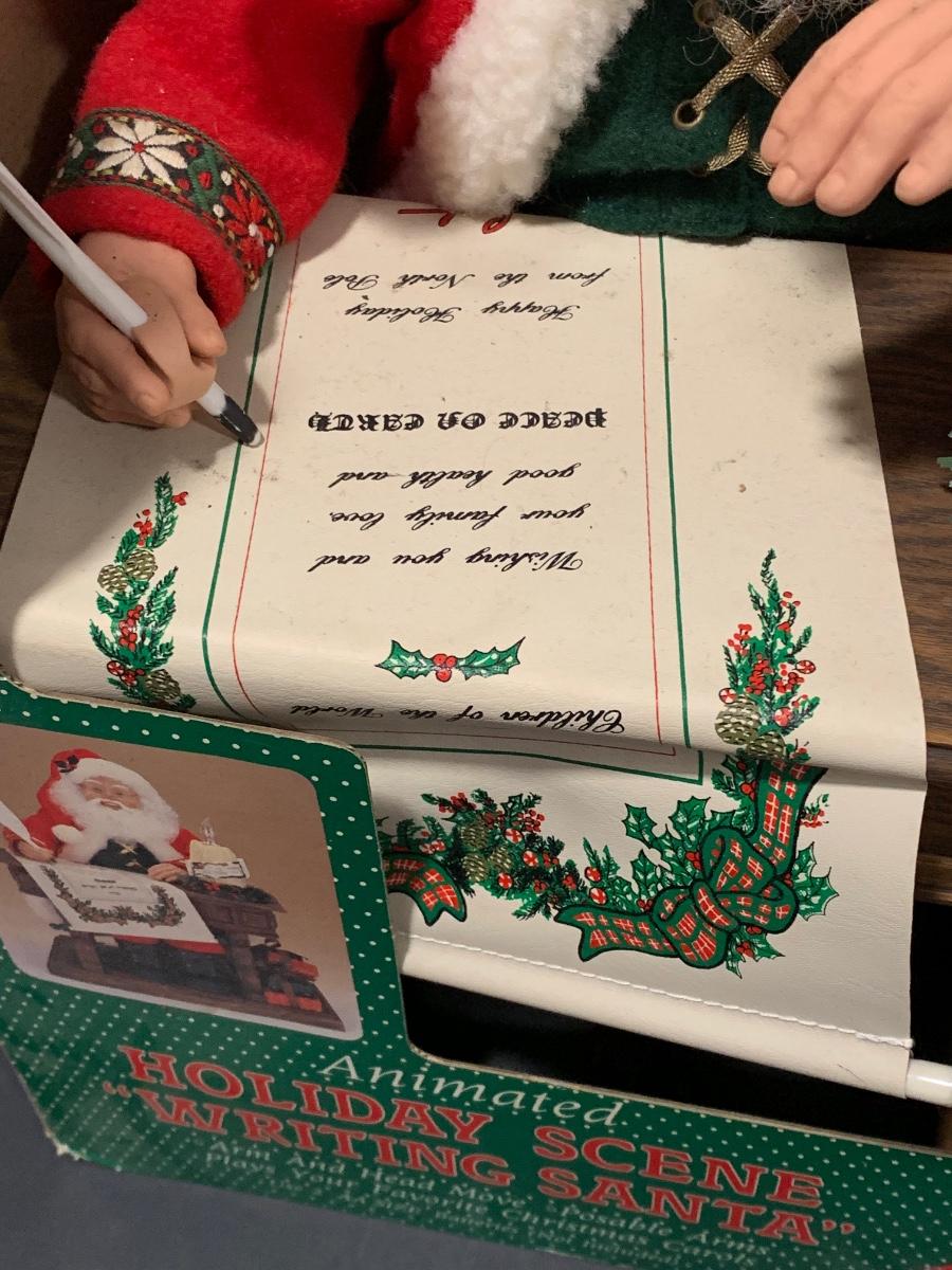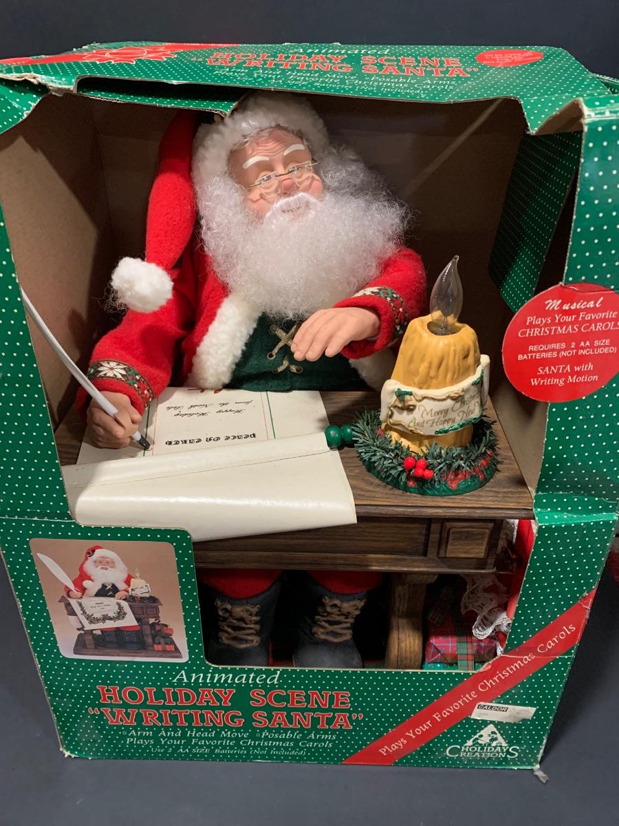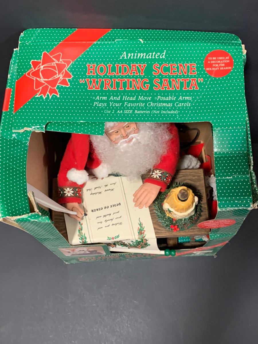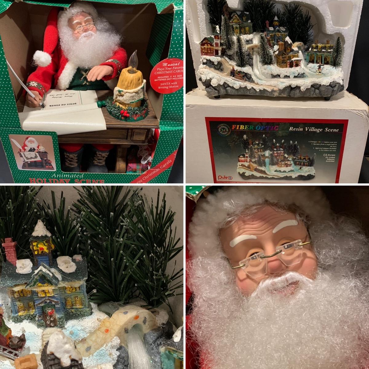 LOT 262 B: Vintage Animated Holiday Scene Writing Santa by Holiday Creations & Fiber Optic Rustic Village by Pule