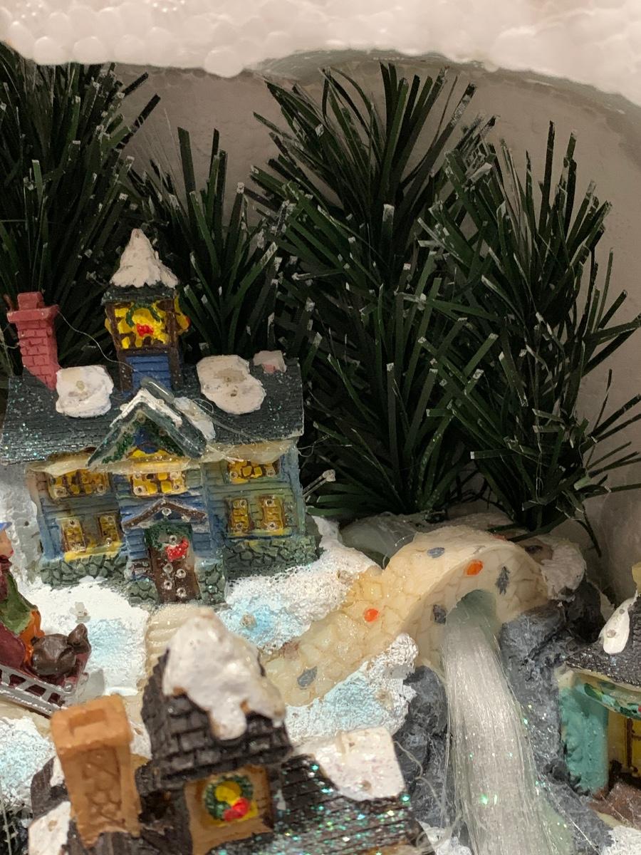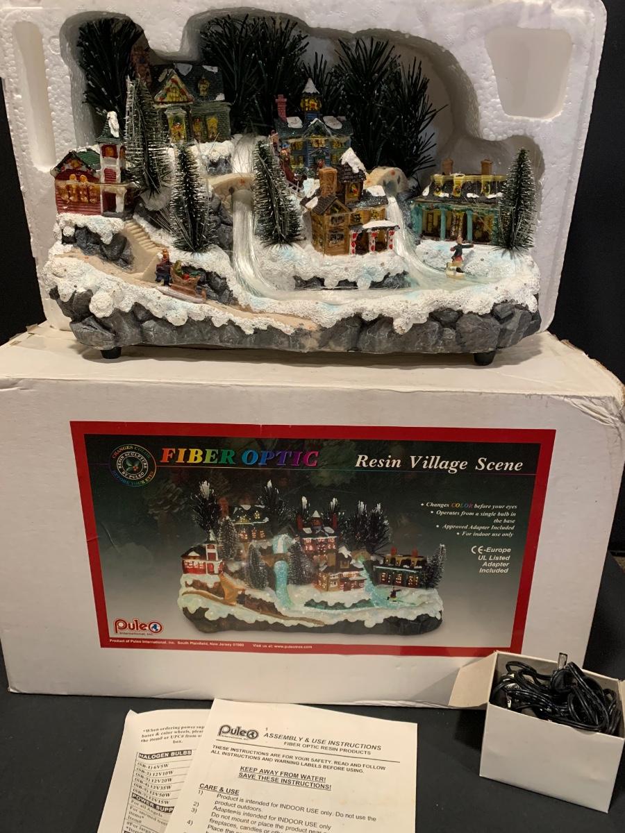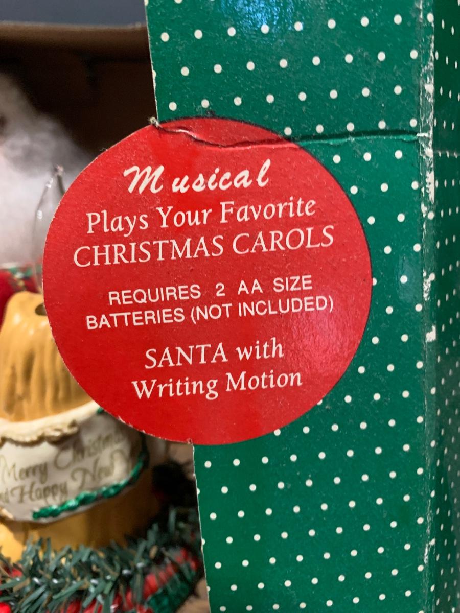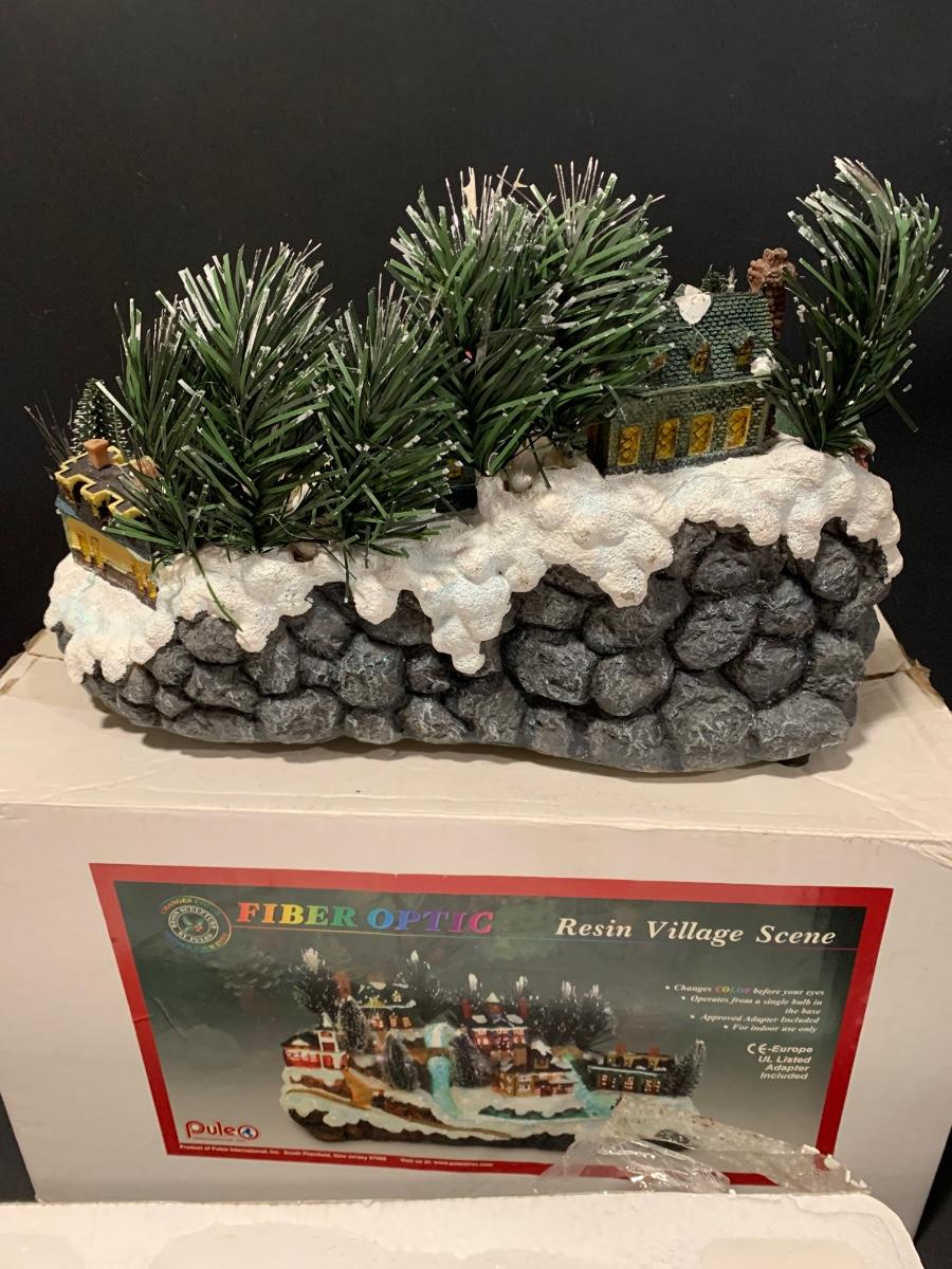 LOT 262 B: Vintage Animated Holiday Scene Writing Santa by Holiday Creations & Fiber Optic Rustic Village by Pule