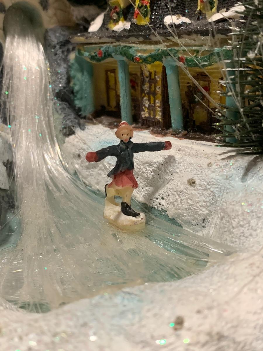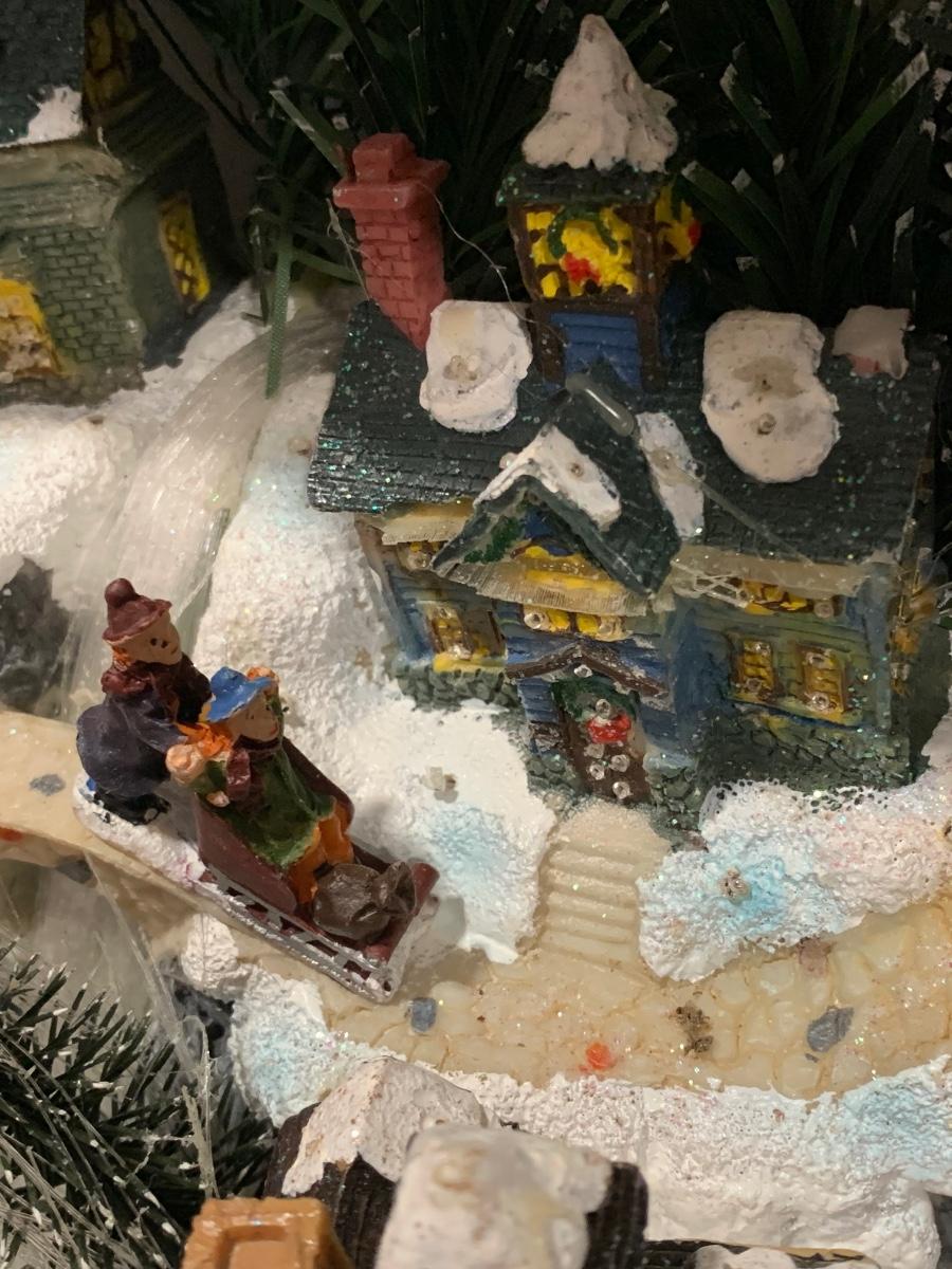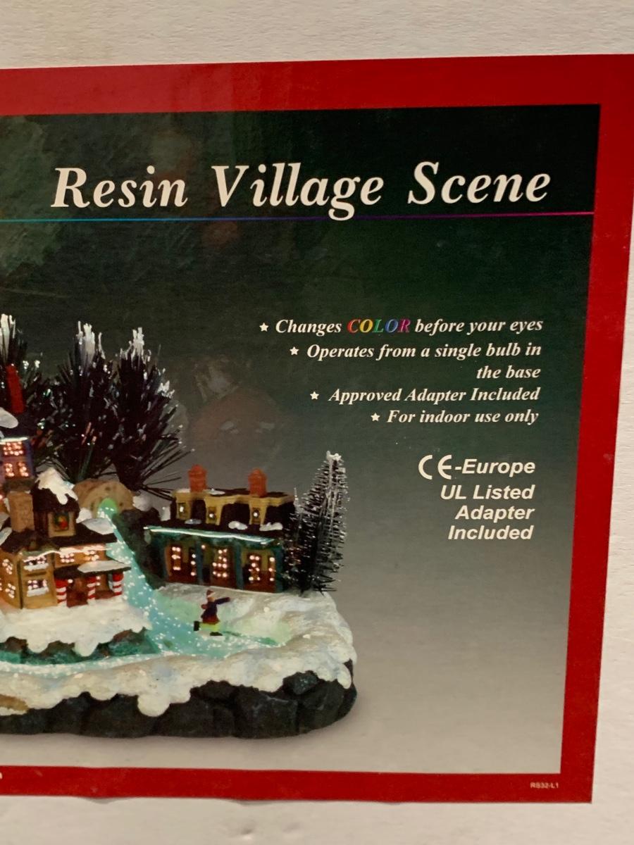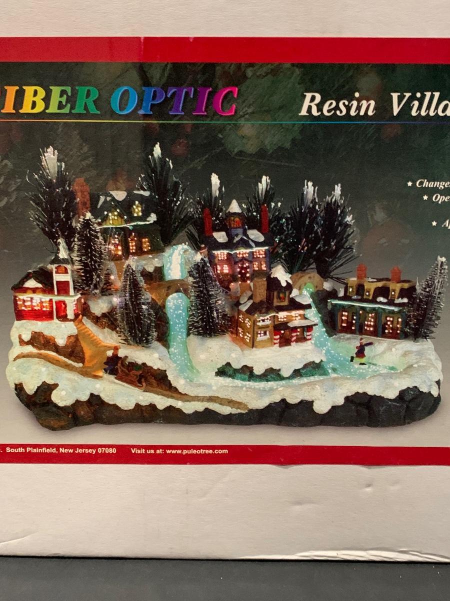 LOT 262 B: Vintage Animated Holiday Scene Writing Santa by Holiday Creations & Fiber Optic Rustic Village by Pule