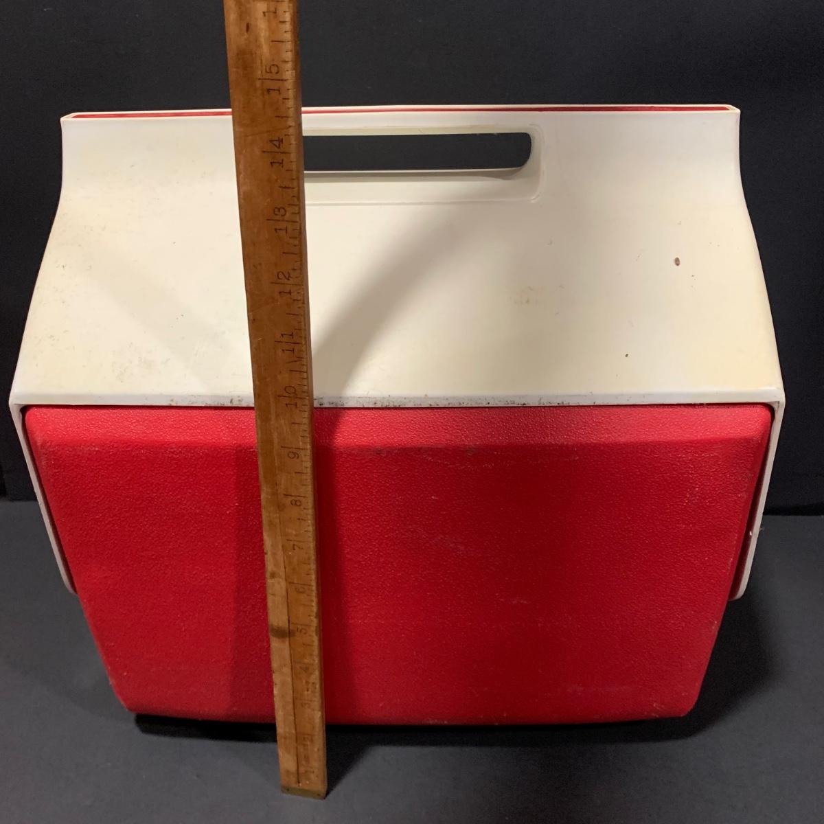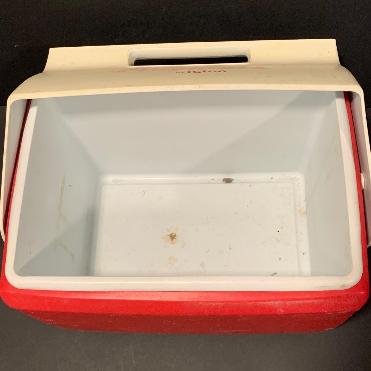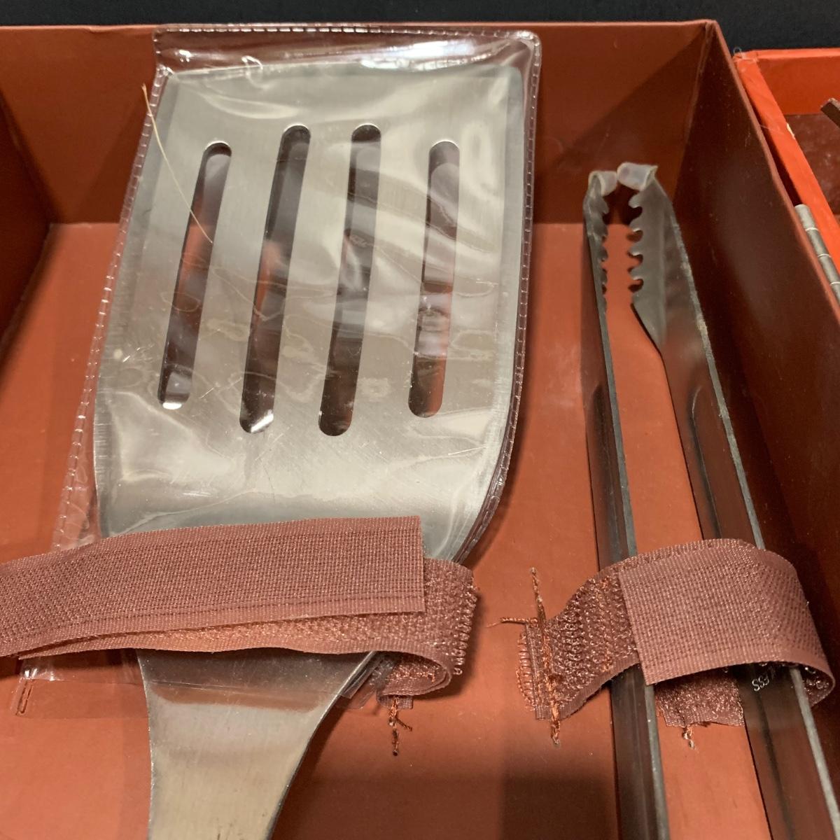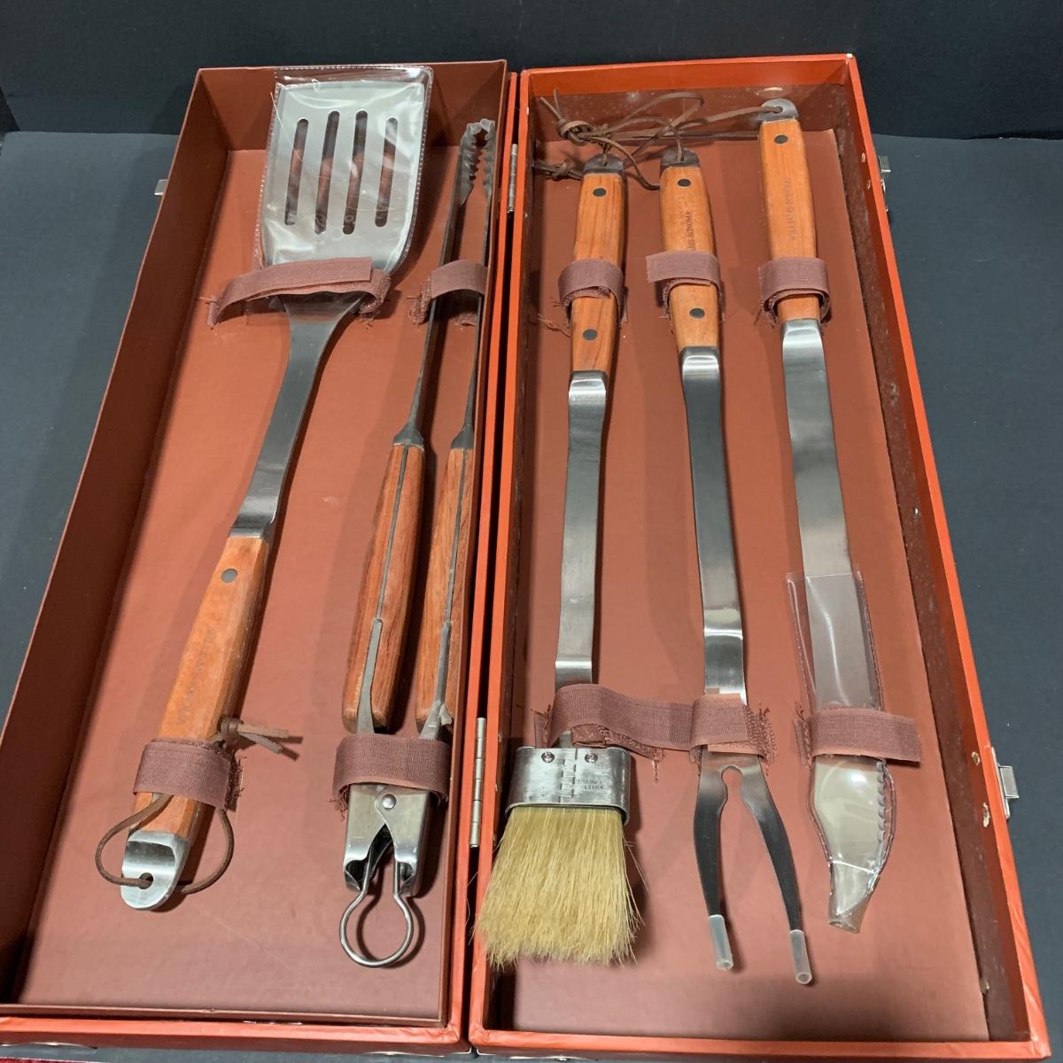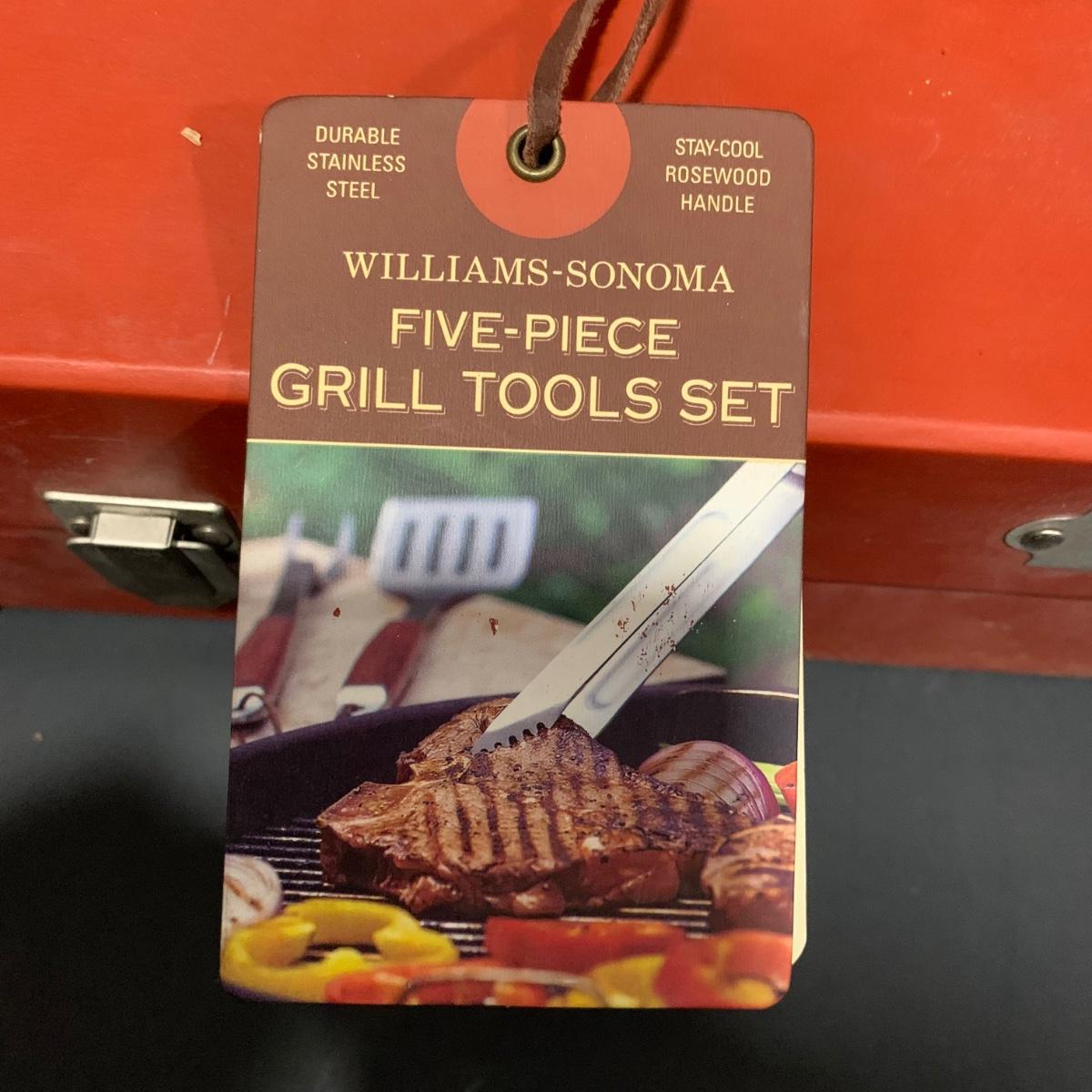 LOT 265 B: Camping Collection: William Sonoma 5 Piece Grill Tool Set, Igloo Playmate Cooler, Poloron 1 Gallon Jug, & More