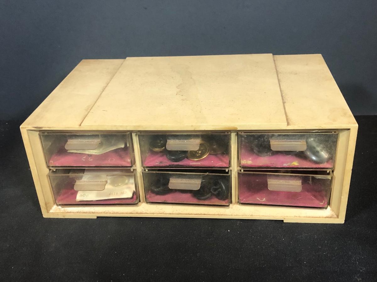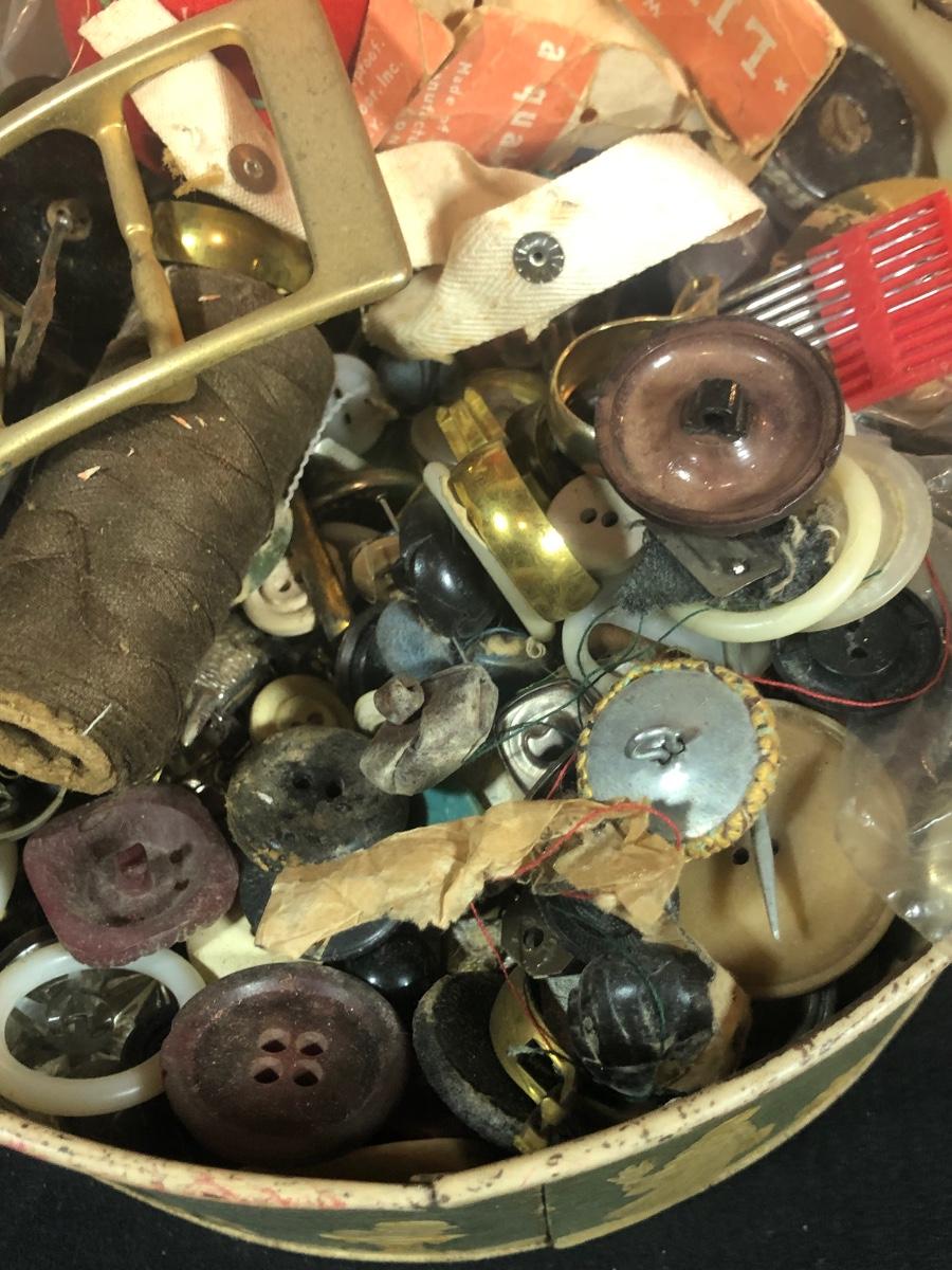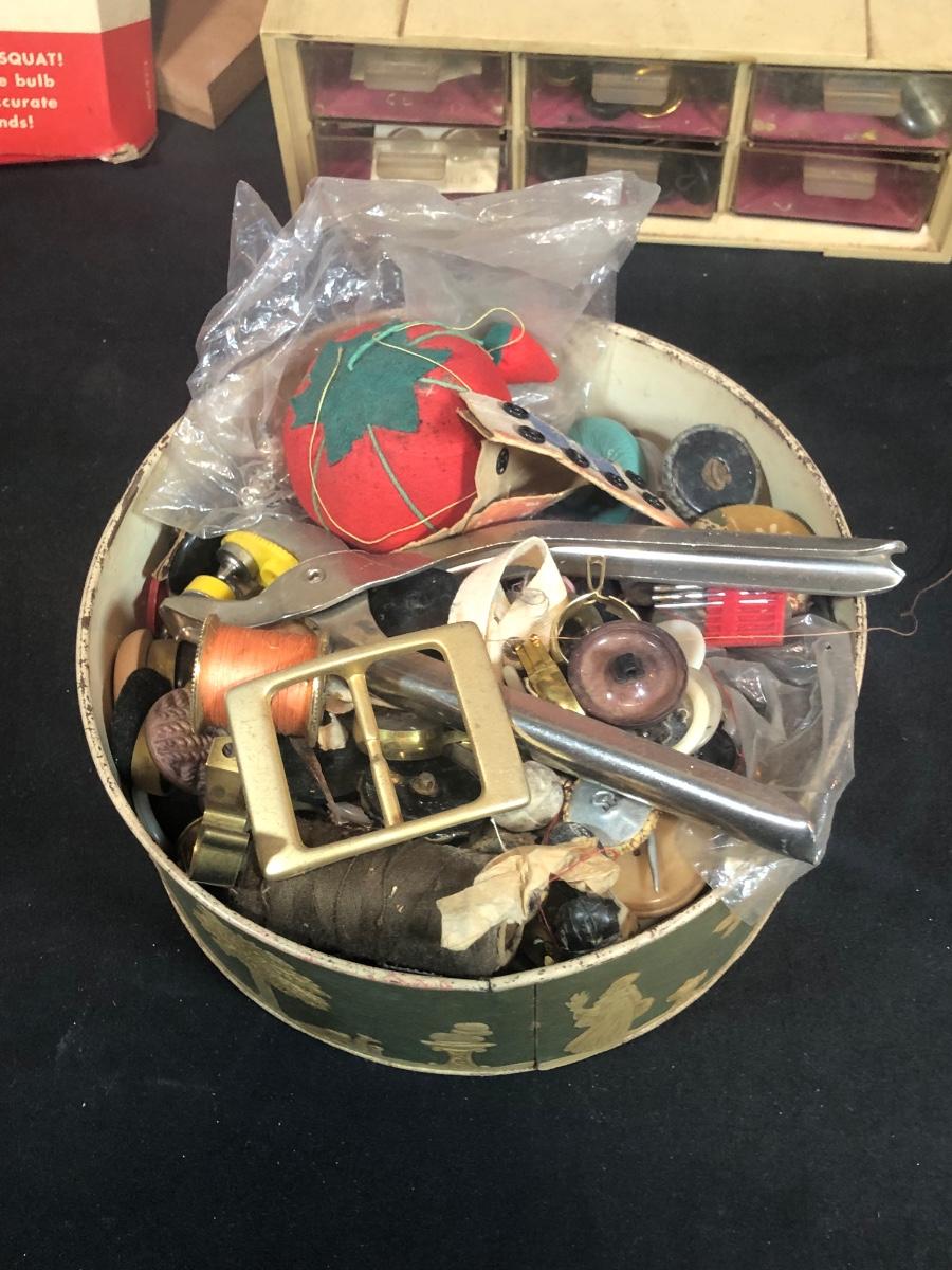 LOT 287B: Vintage Sewing Collection - Hand Held Singer W654321, Gromet Puncher, Scissors, Buttons & More