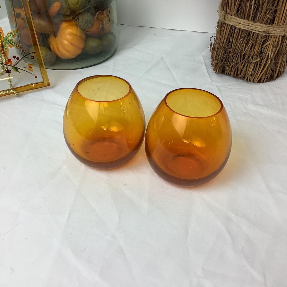 2 Amber Glass Votives