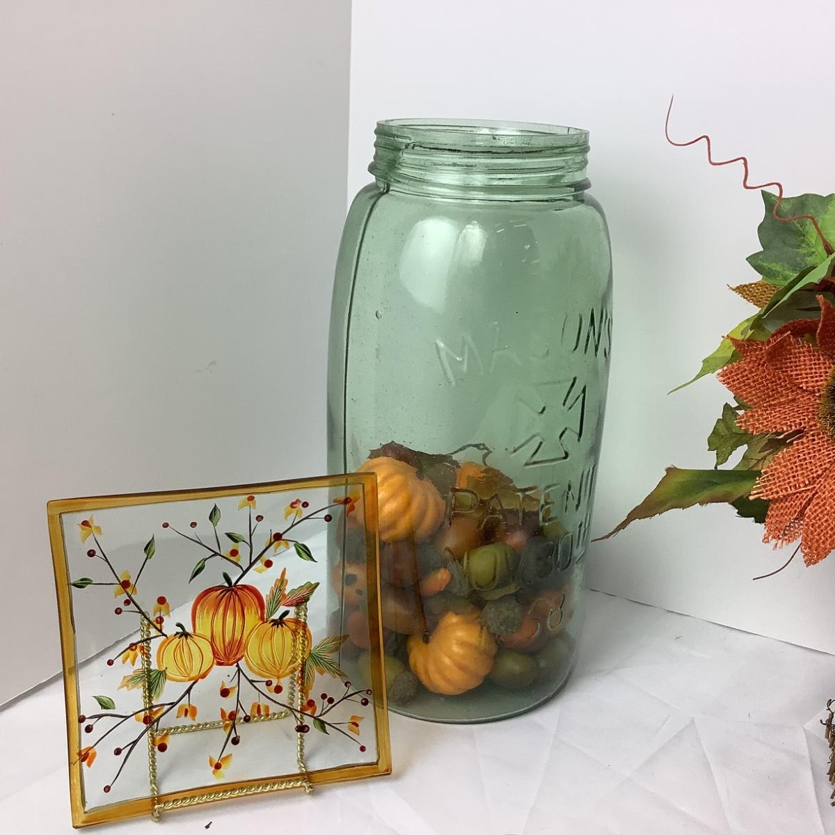 Glass Pumpkin Themed Plate & Candle Topper