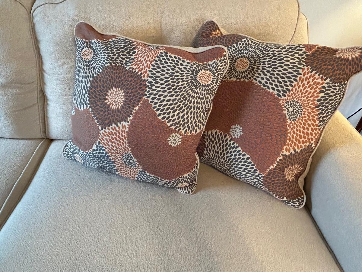 LOT 6: Cream Sofa and Throw Pillows