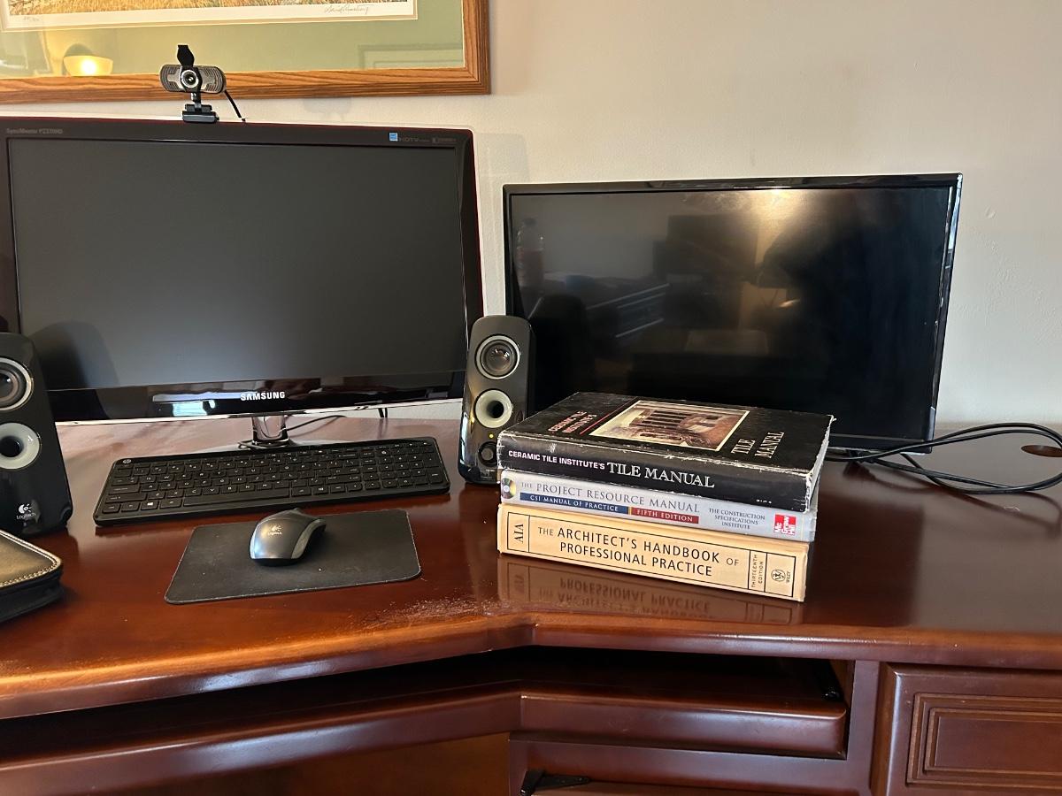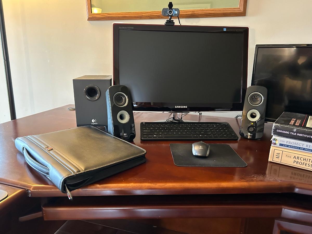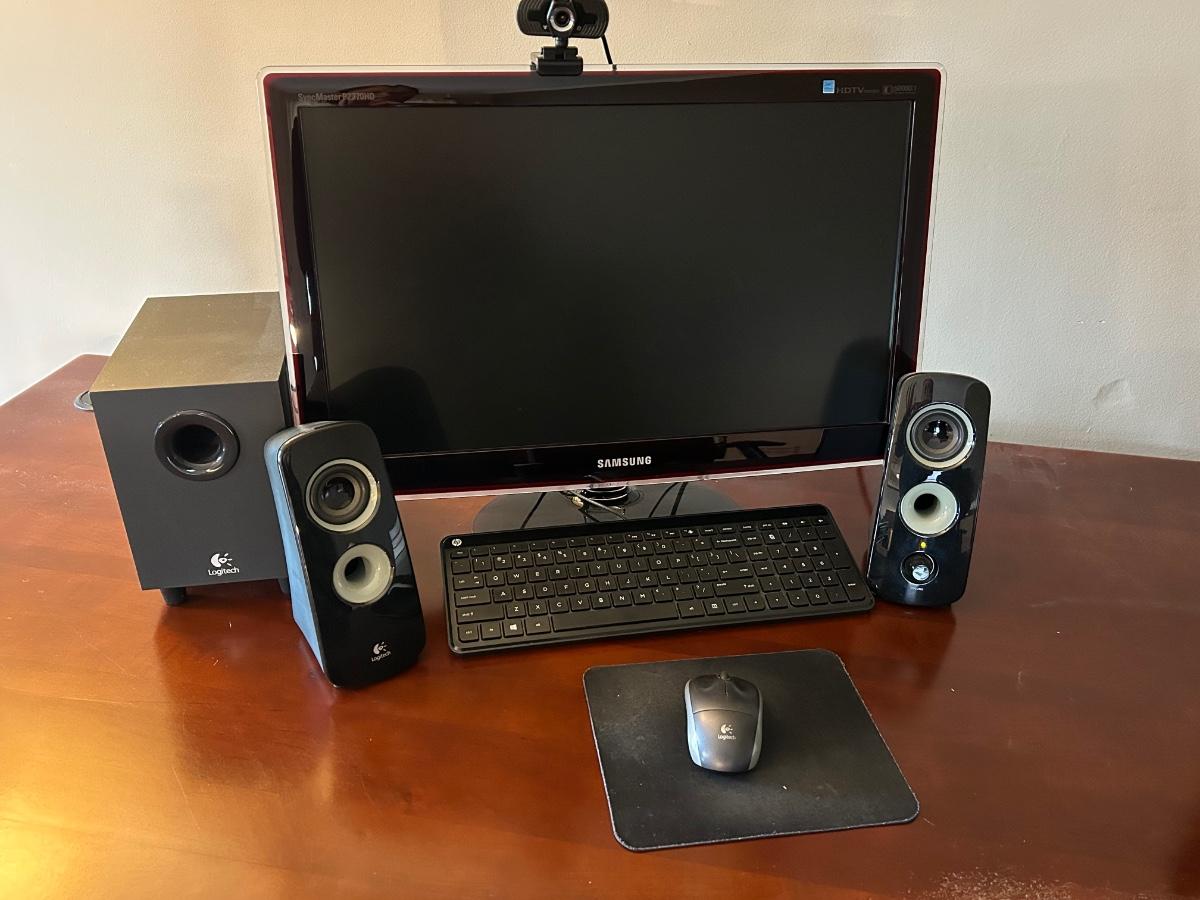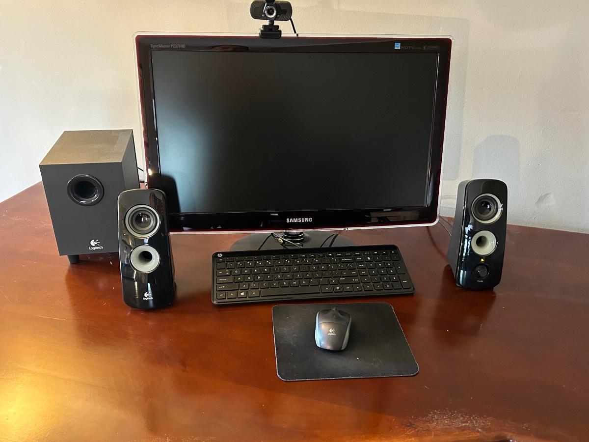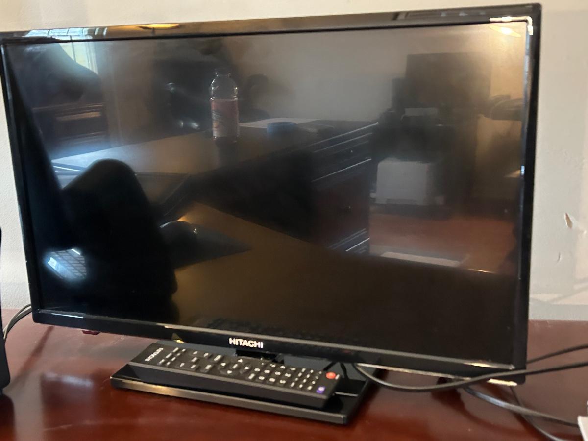 LOT 21: Samsung Monitor, Hitachi TV with Remote, Logitech Key Board & Speakers