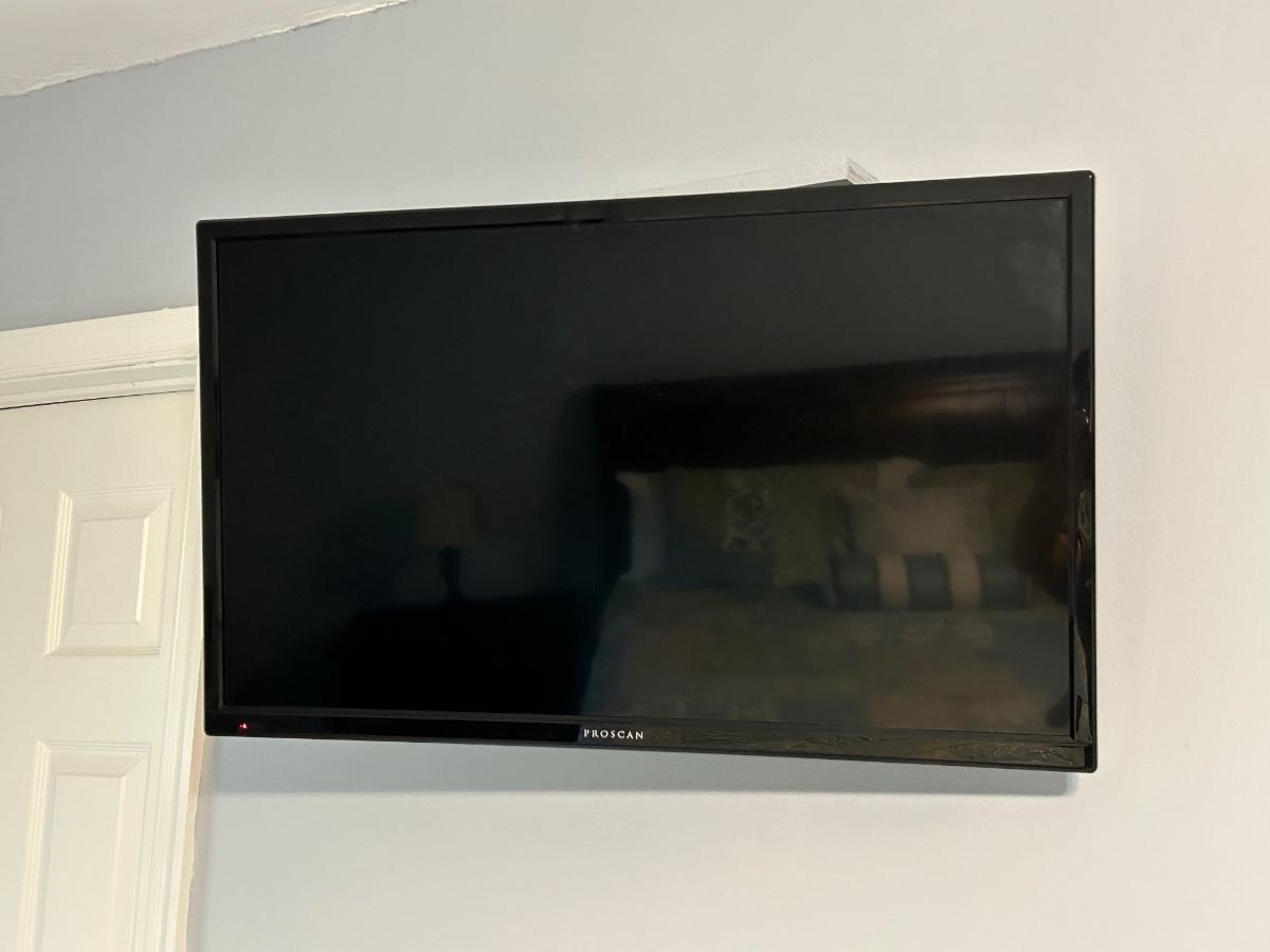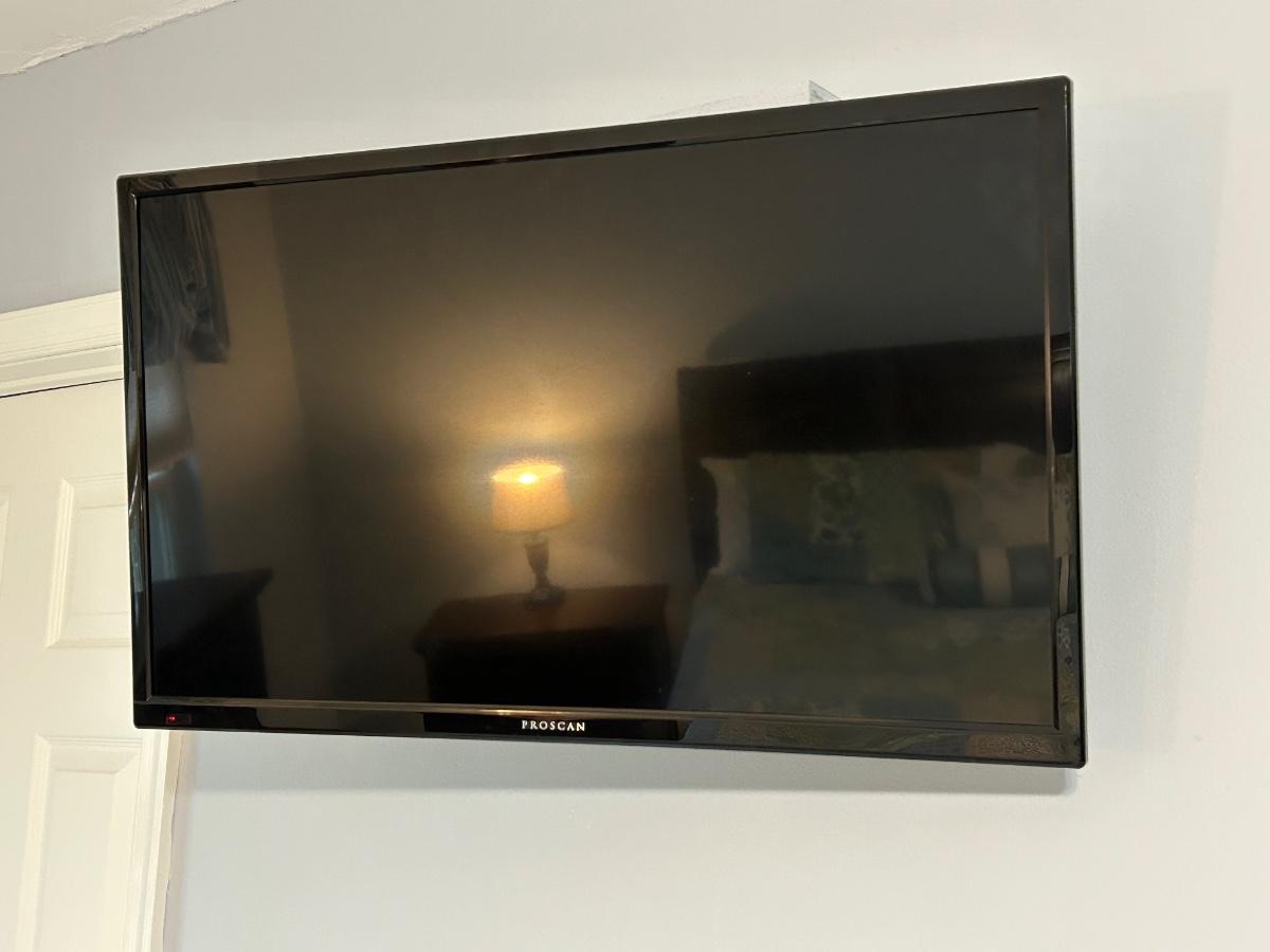 This lot is tv only. Hanging bracket not included. Original tv stand not included.