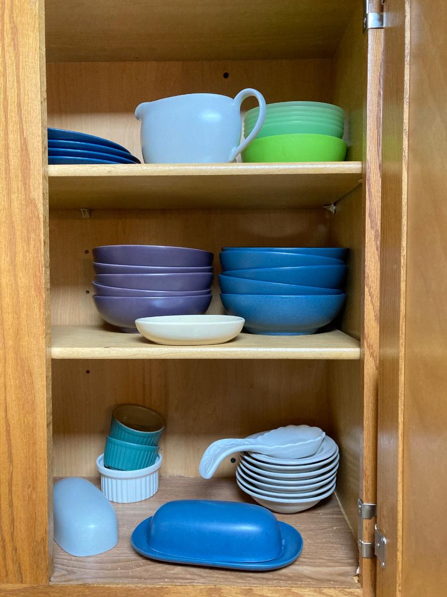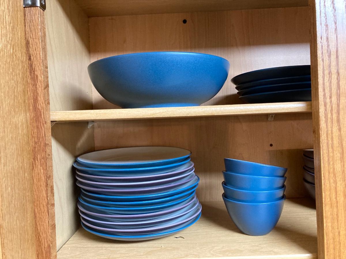 LOT 84: Noritake Colorwave Purple and Blue Dinnerware Set with Serving Trays and More