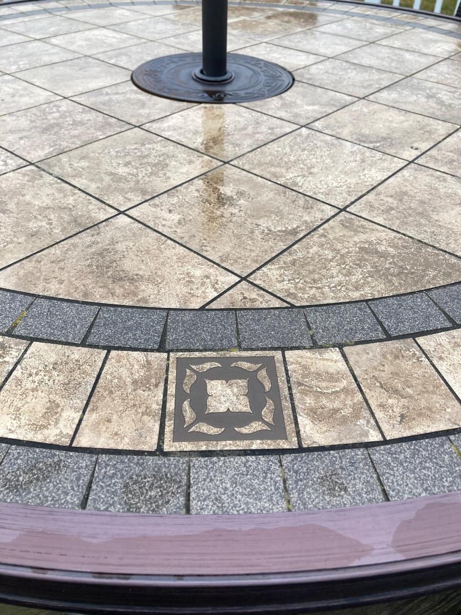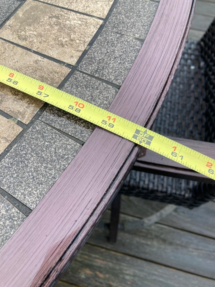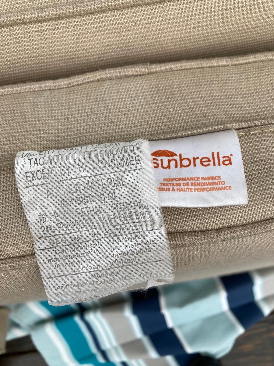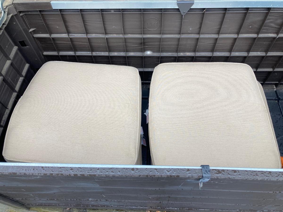 Round Table - 60", Chairs 24w x 42h - Six Sunbrella beige seat cushions, Two floral print cushions (storage chest not included)