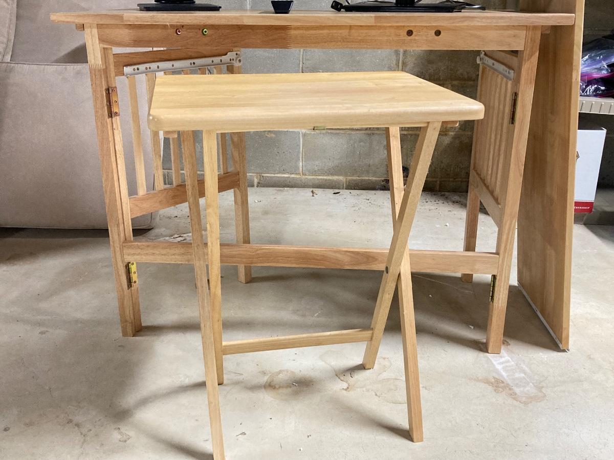 Desk 40"w x 20"d x 30"h, Table 19"w x 14.5"d x 26"h