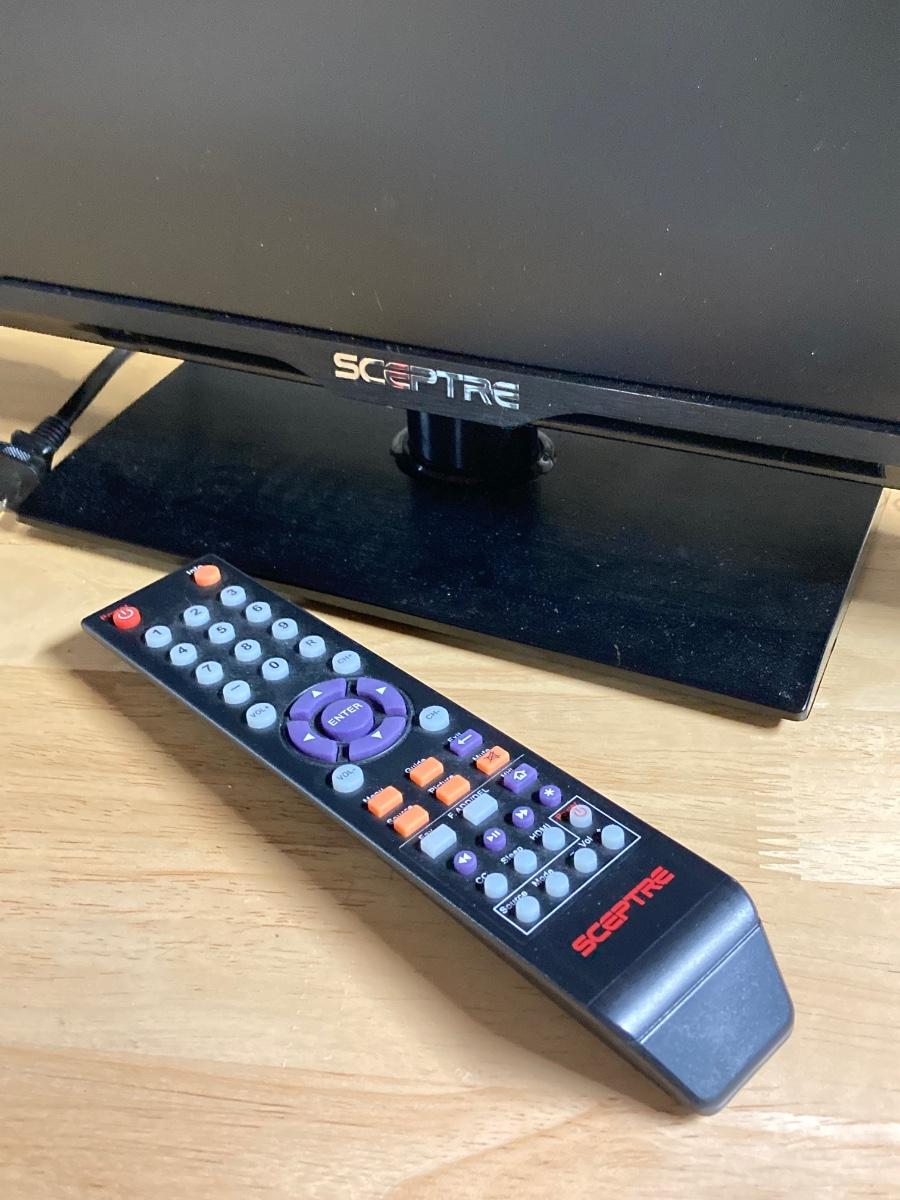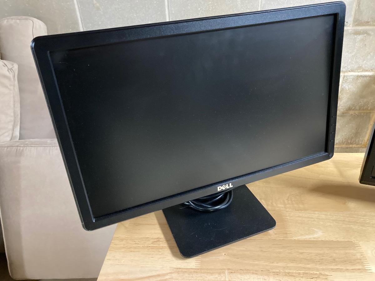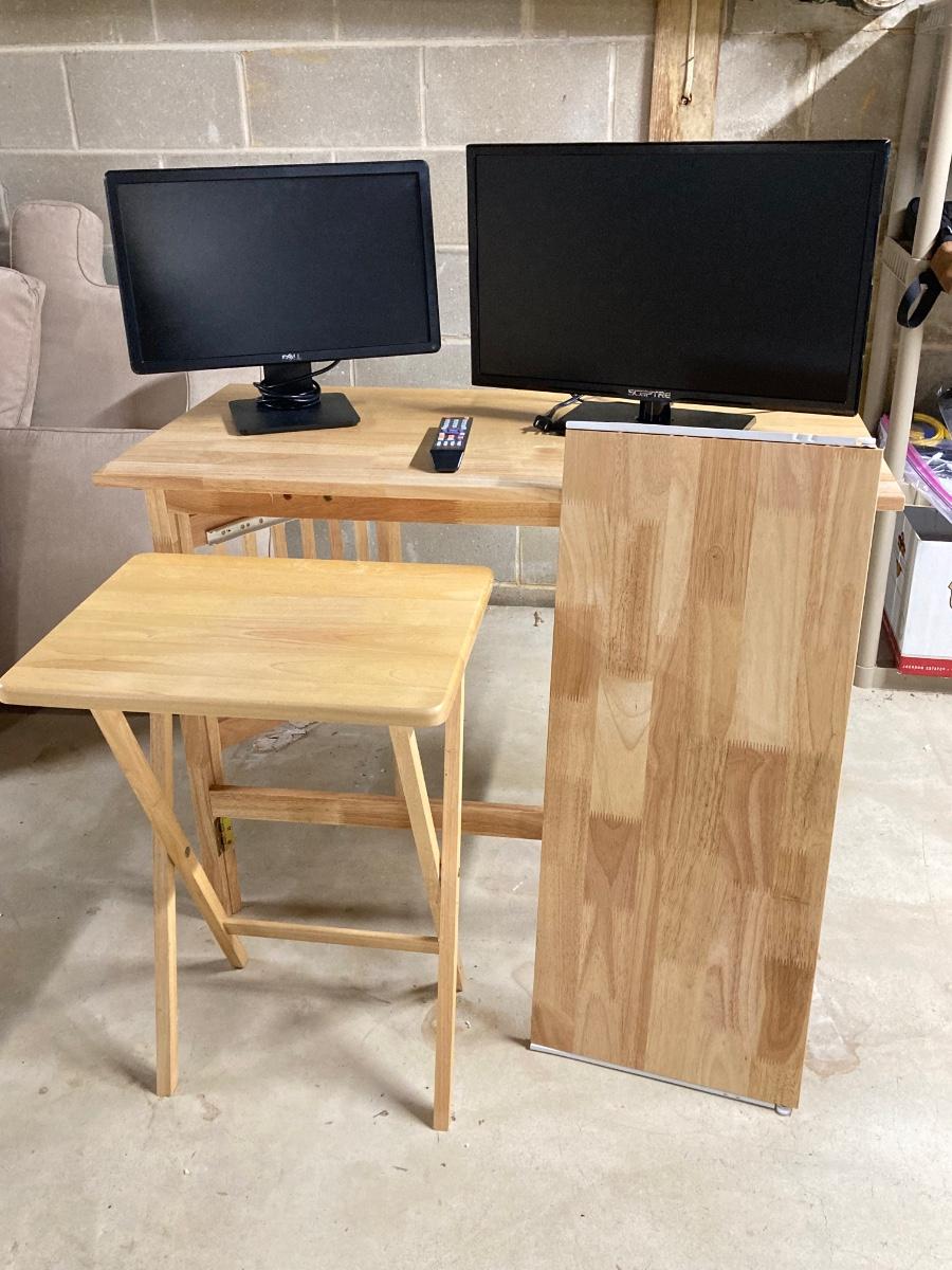 LOT 92: Folding Desk with Slide Out Keyboard Holder, Sceptre TV / Remote, Dell Monitor and Folding Table