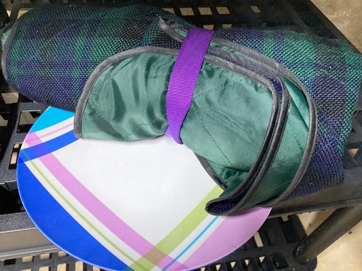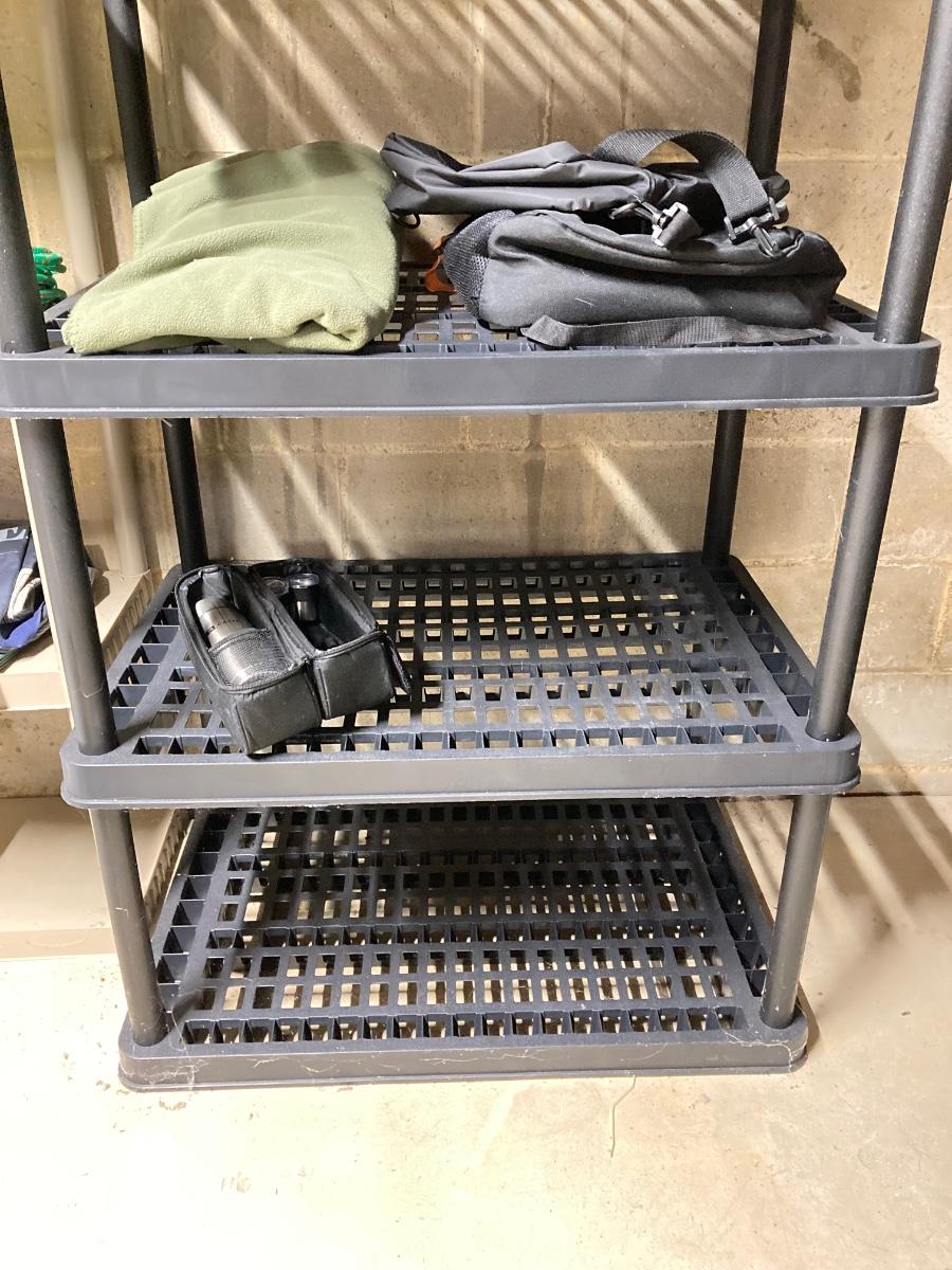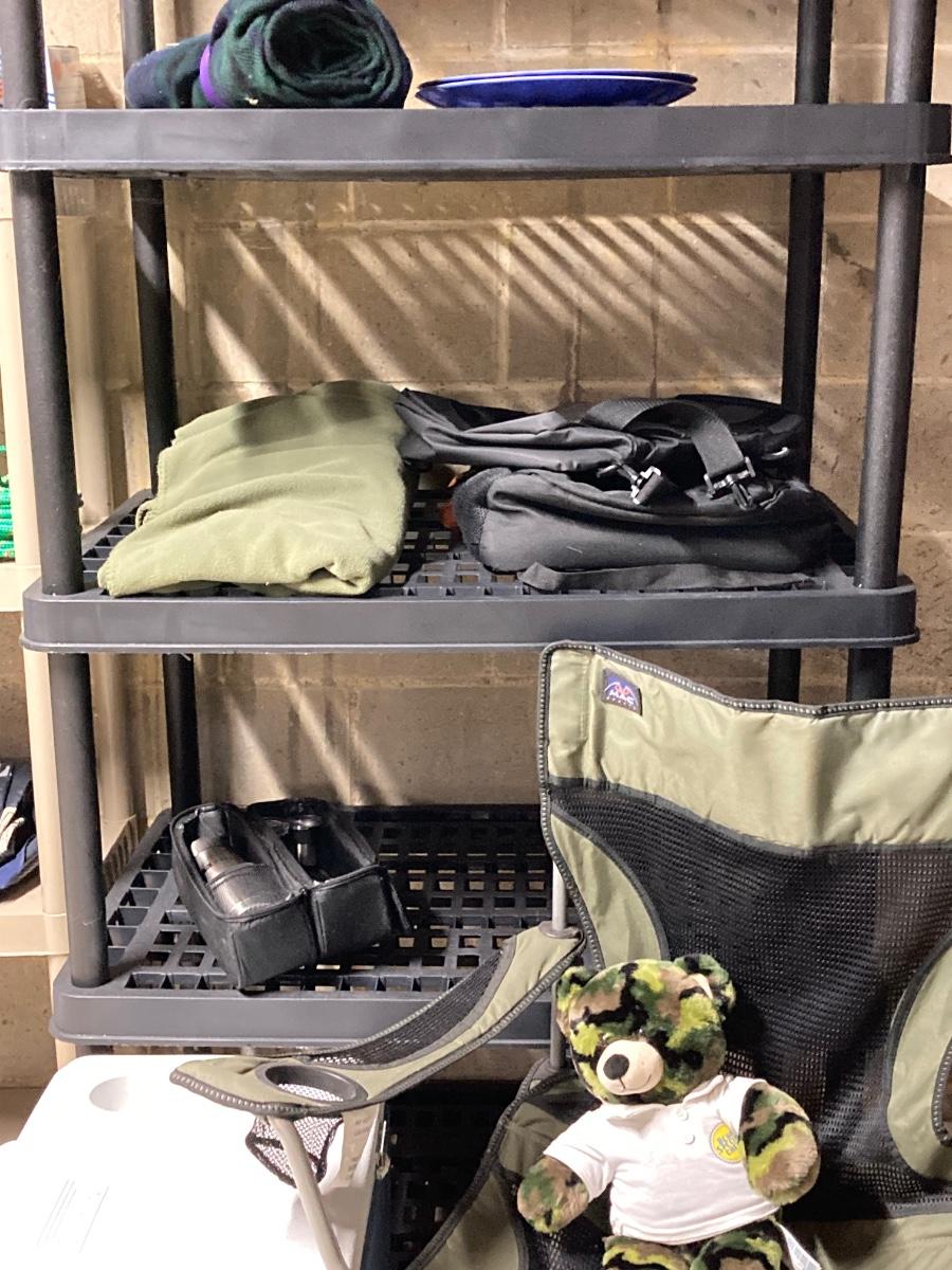 LOT 95: Storage Shelf and Contents - Camping / Picnic Essentials
