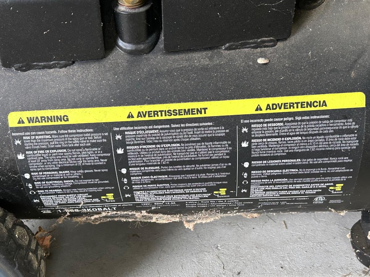 LOT 119: Kobalt Air Compressor