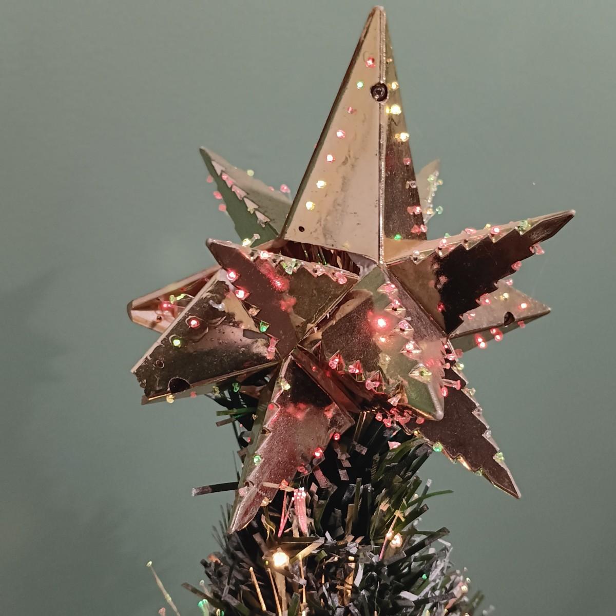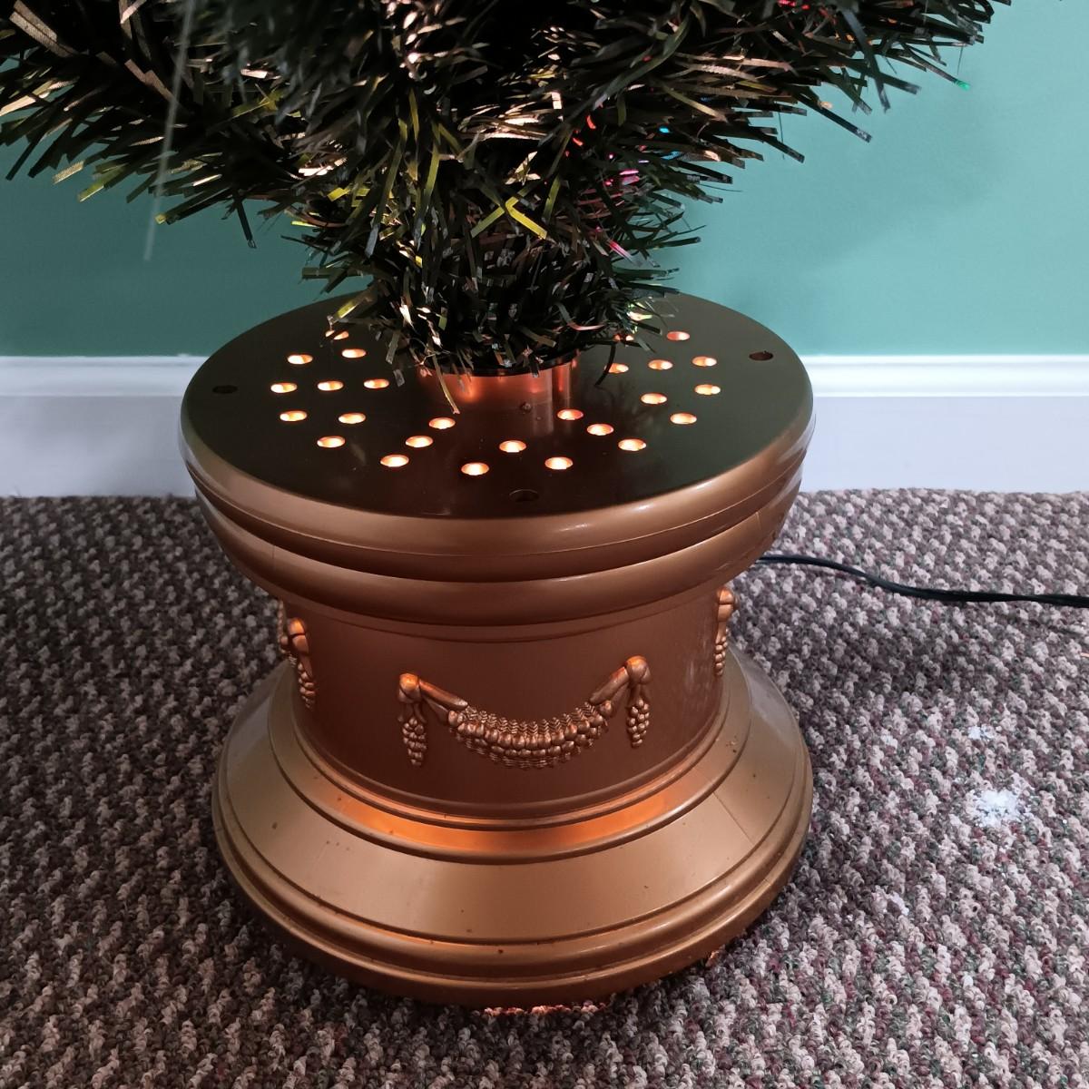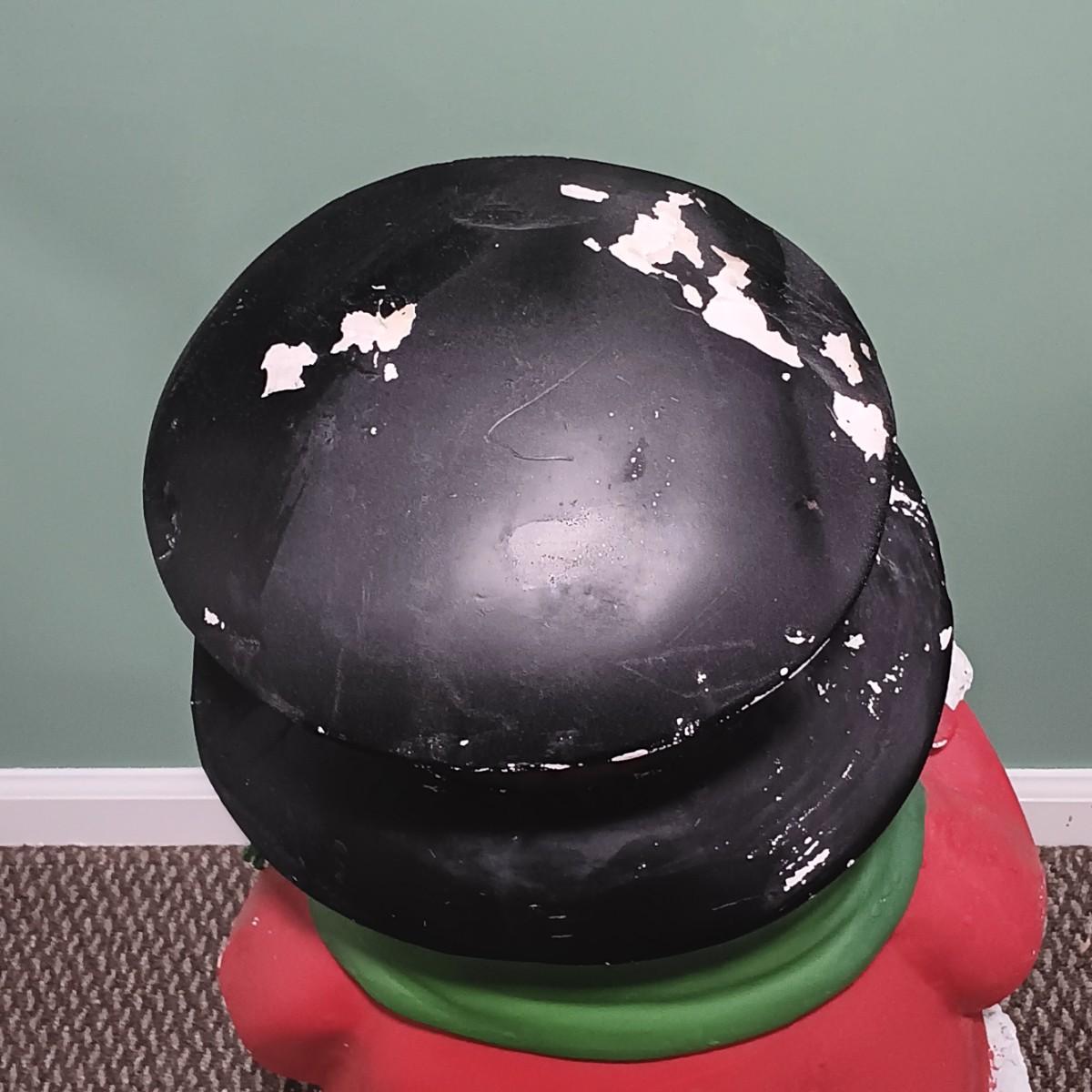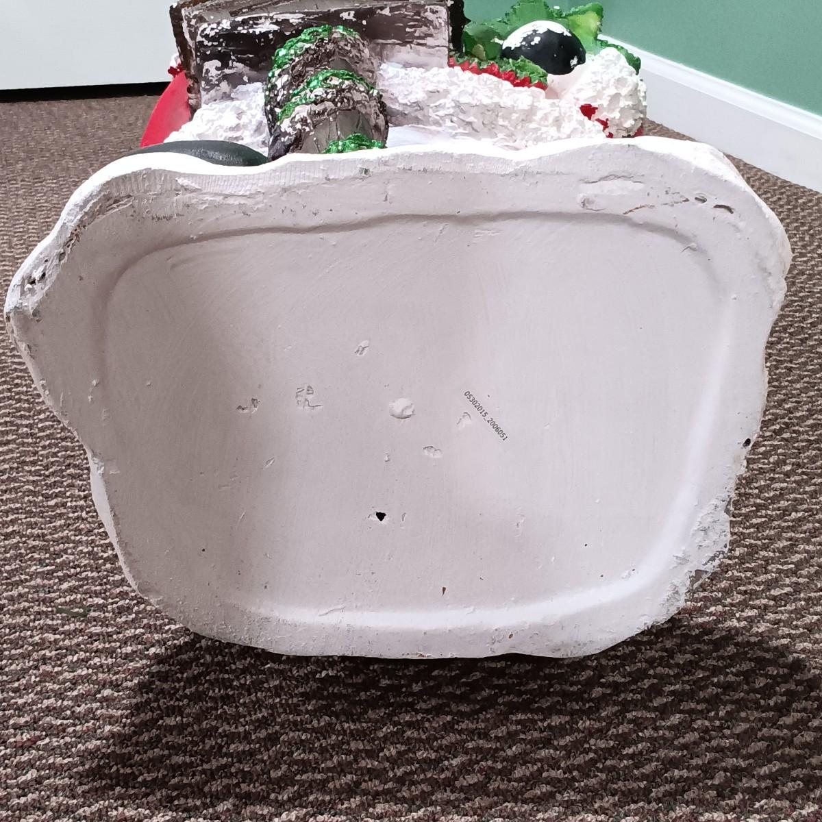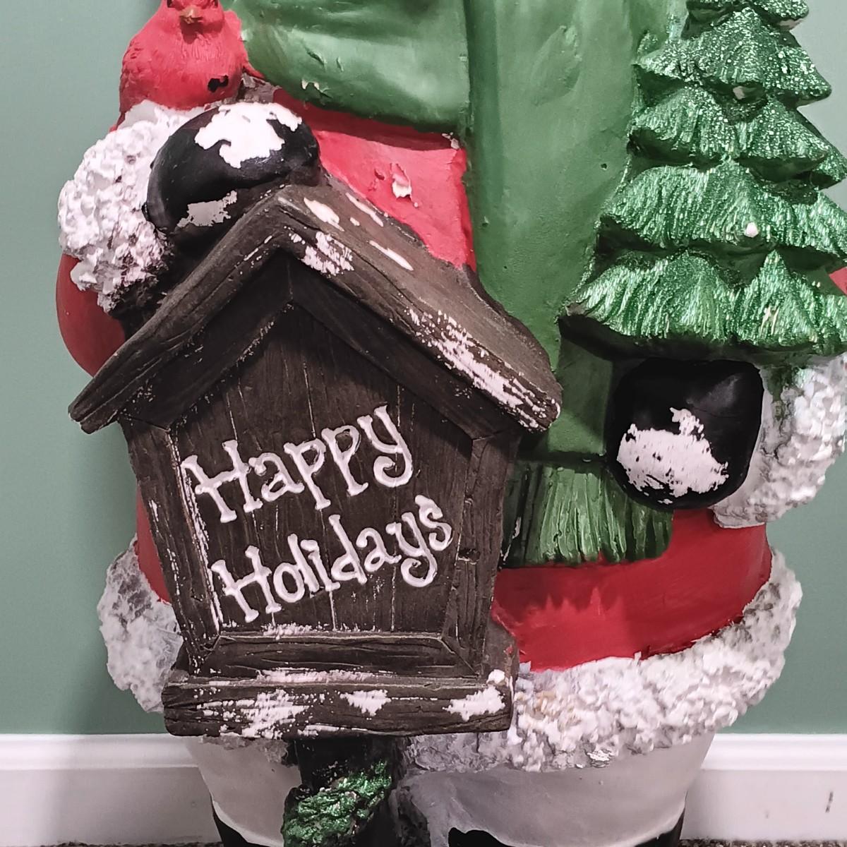 Tree topper is cracked and missing a piece. Snowman has chipped paint and some weathering.