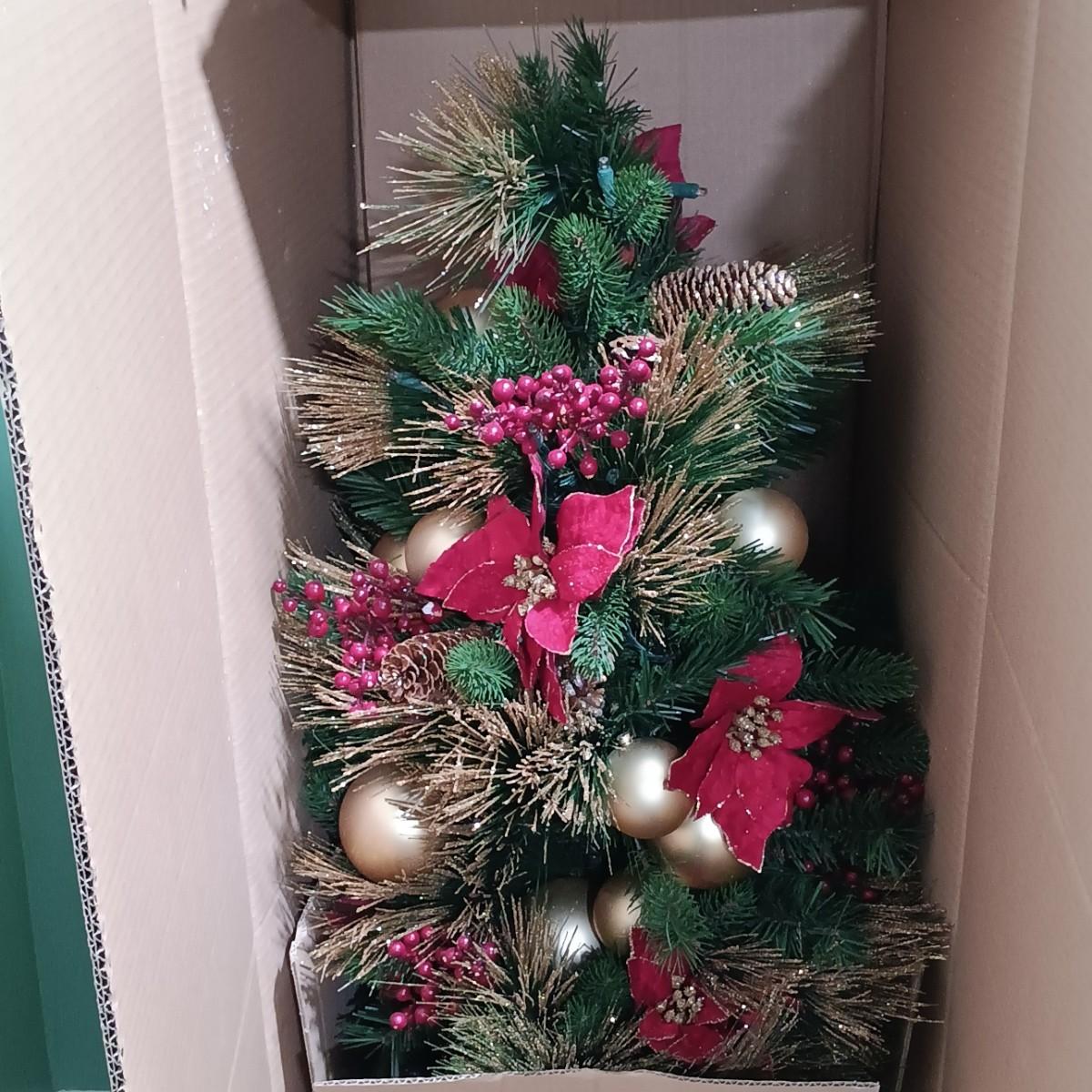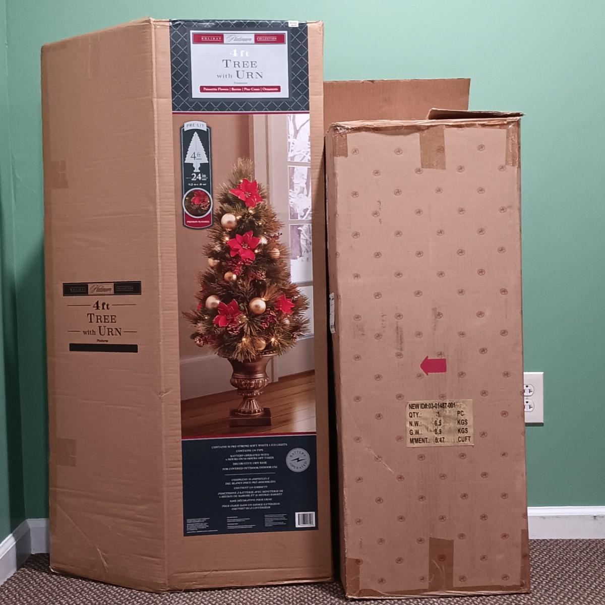 LOT 7: The Traditional Thomas Kinkade 3ft Santa w/ 4ft Tree in Urn