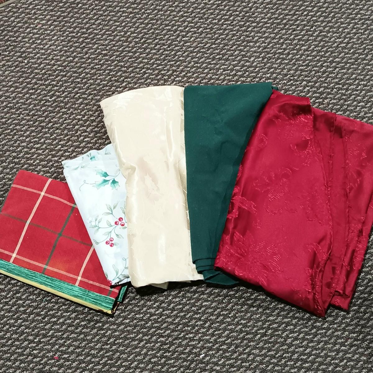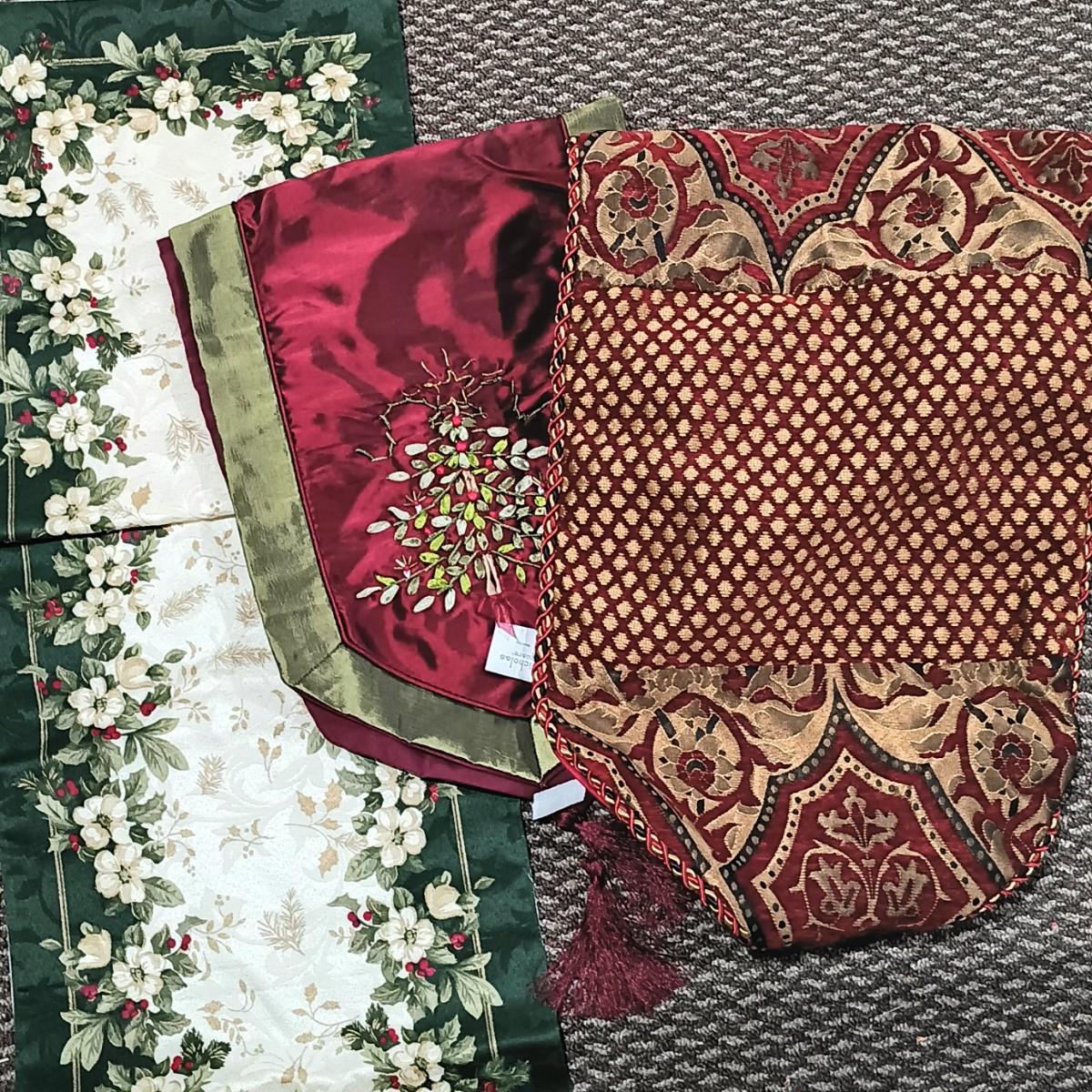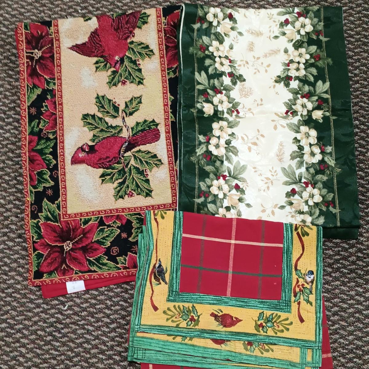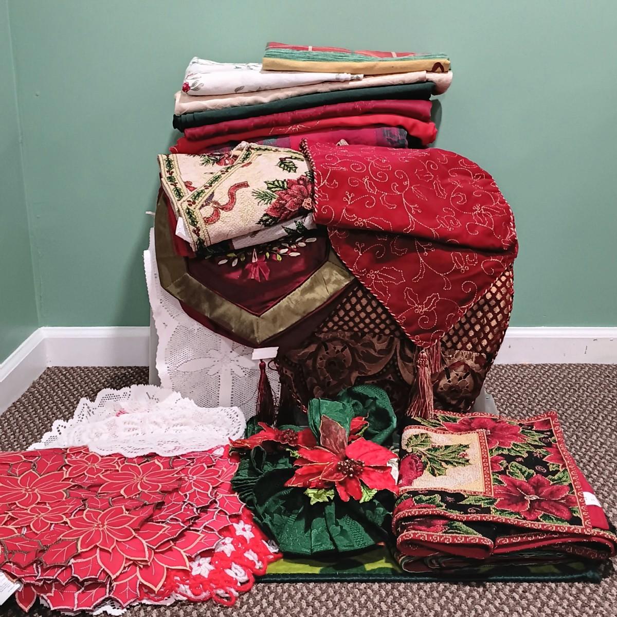 LOT 13: A Collection of Chistmas Themed Napkins, Table Runners, Tablecloths & Placemats in Various Sizes and Shapes