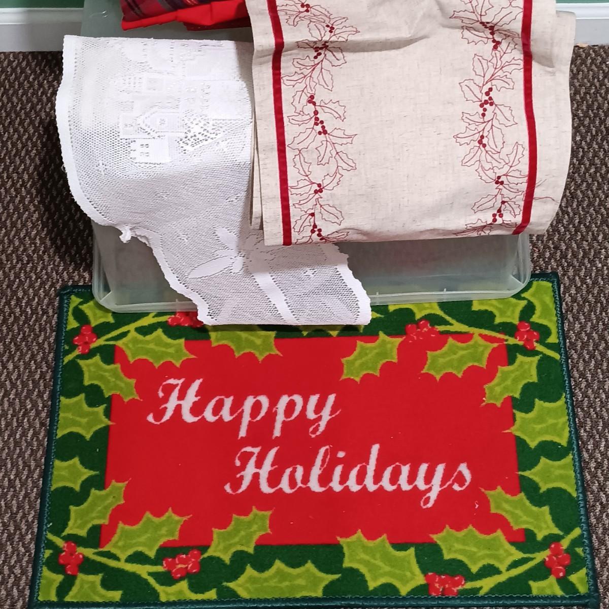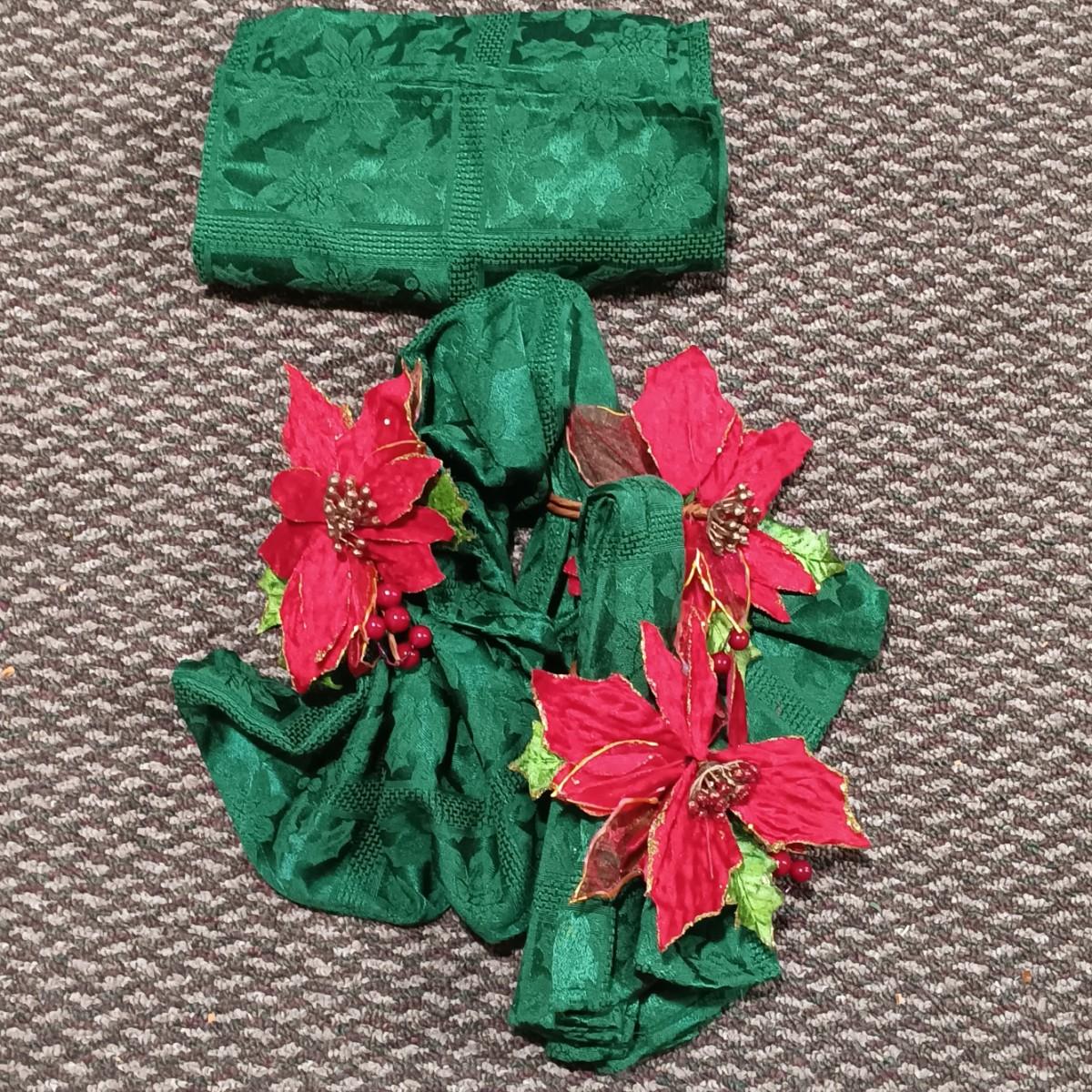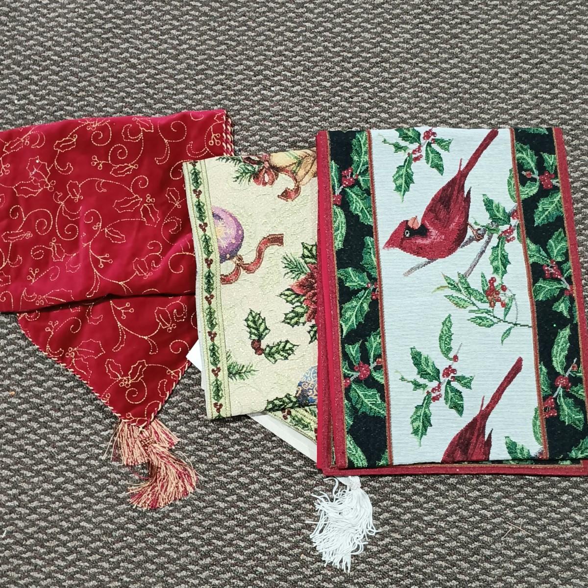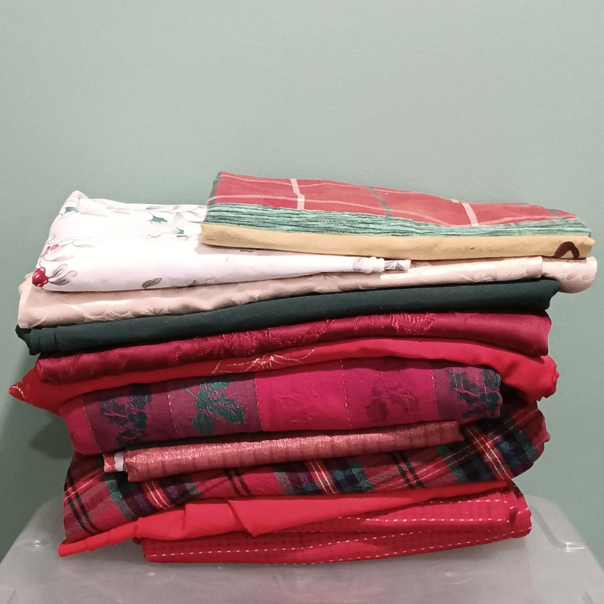 LOT 13: A Collection of Chistmas Themed Napkins, Table Runners, Tablecloths & Placemats in Various Sizes and Shapes