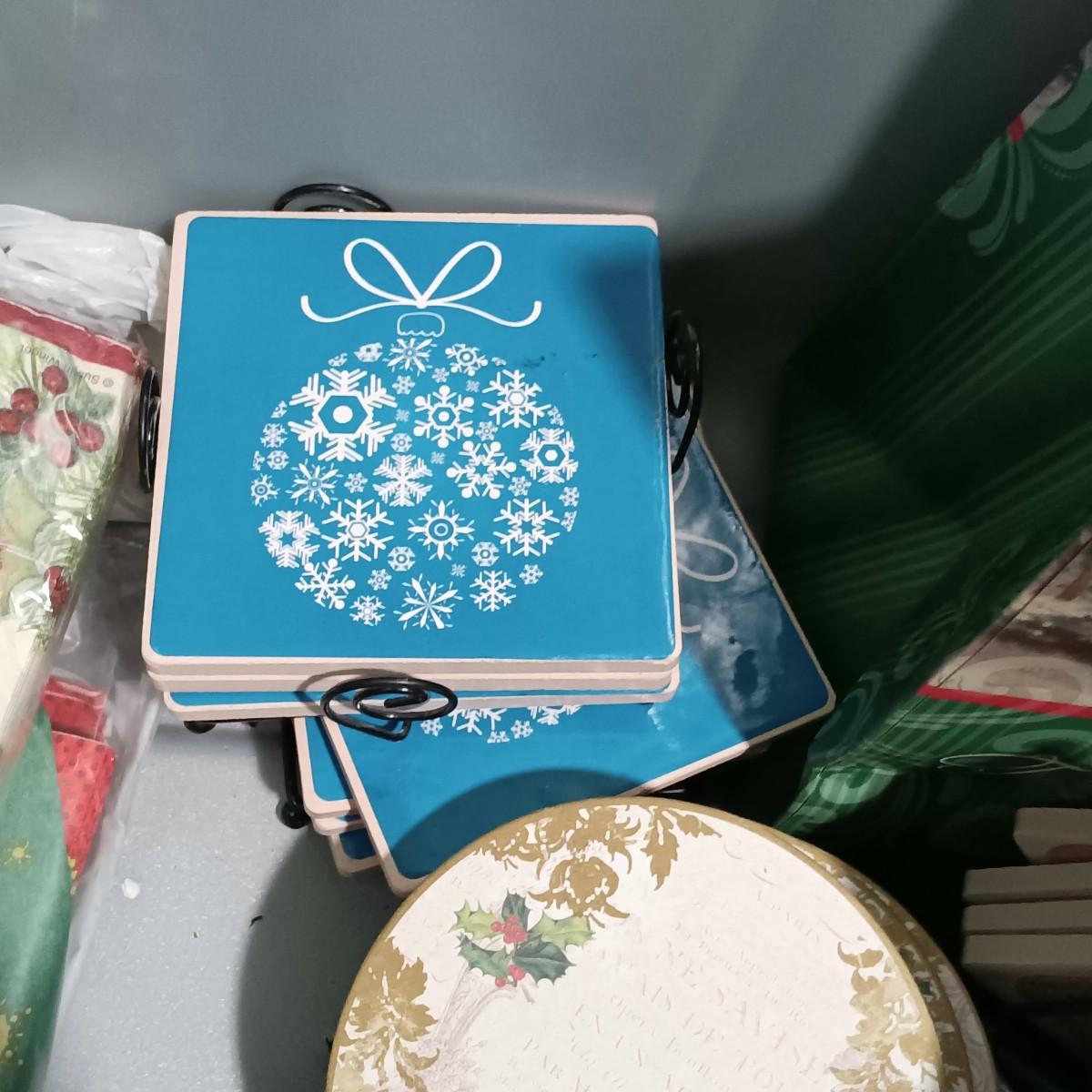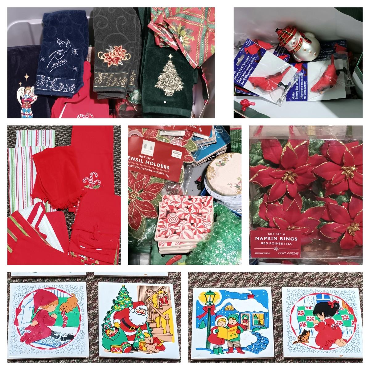 LOT 15: Christmas Collections- Vintage Coasters w/ Hand Towels, Ornaments, Gift Card Holders & More