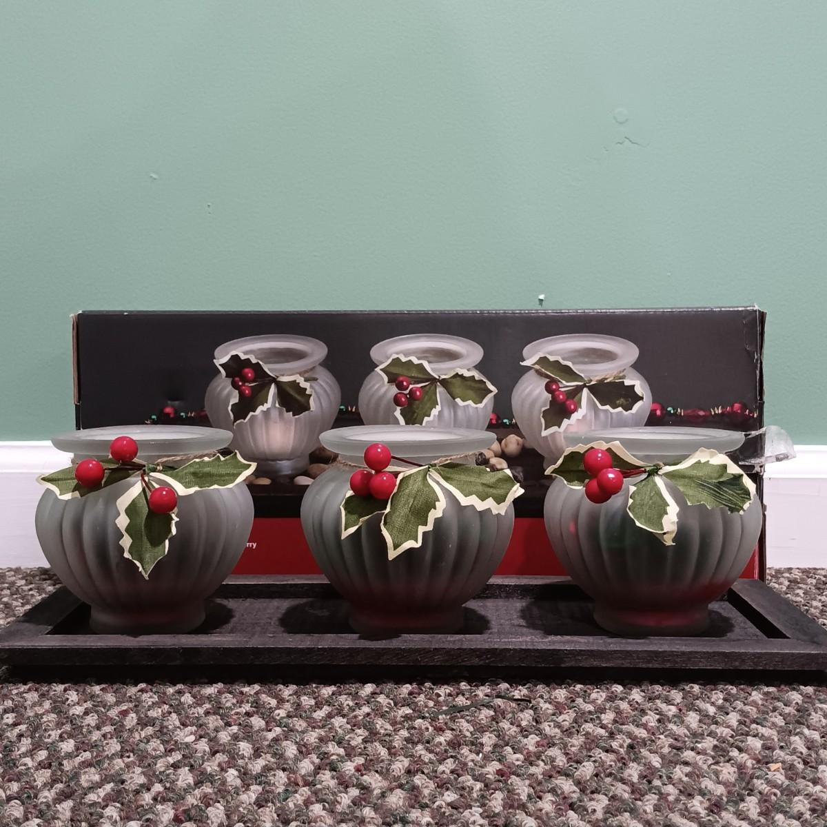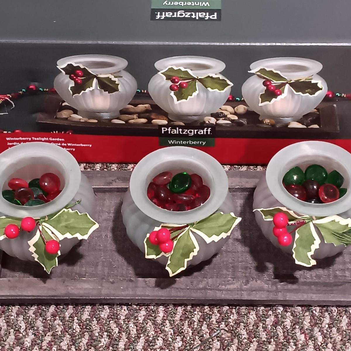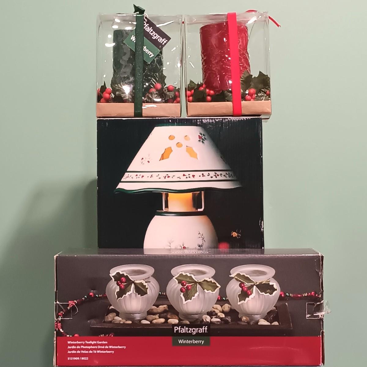 LOT 16: Pfaltzgraff Winterberry Votive Lamp, Tealight Garden & Candles