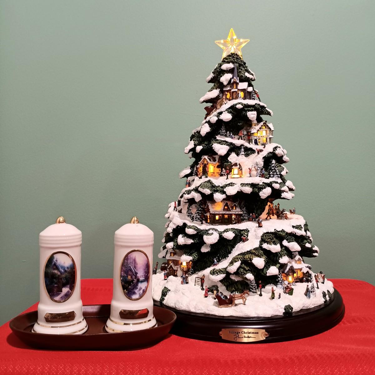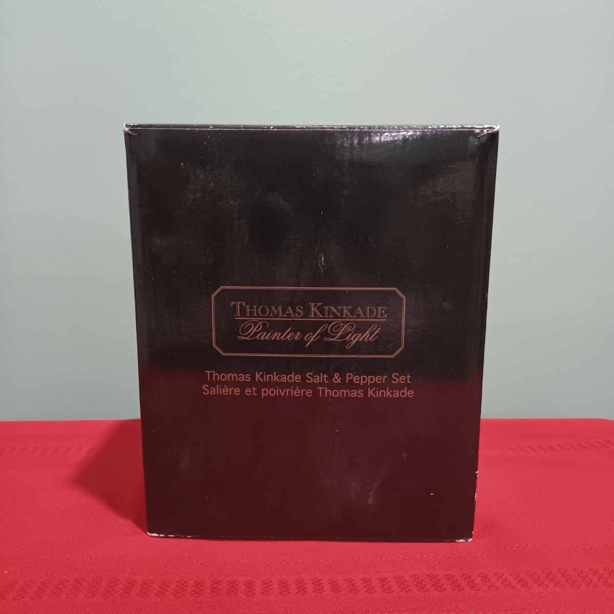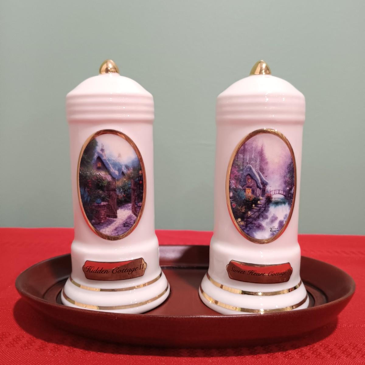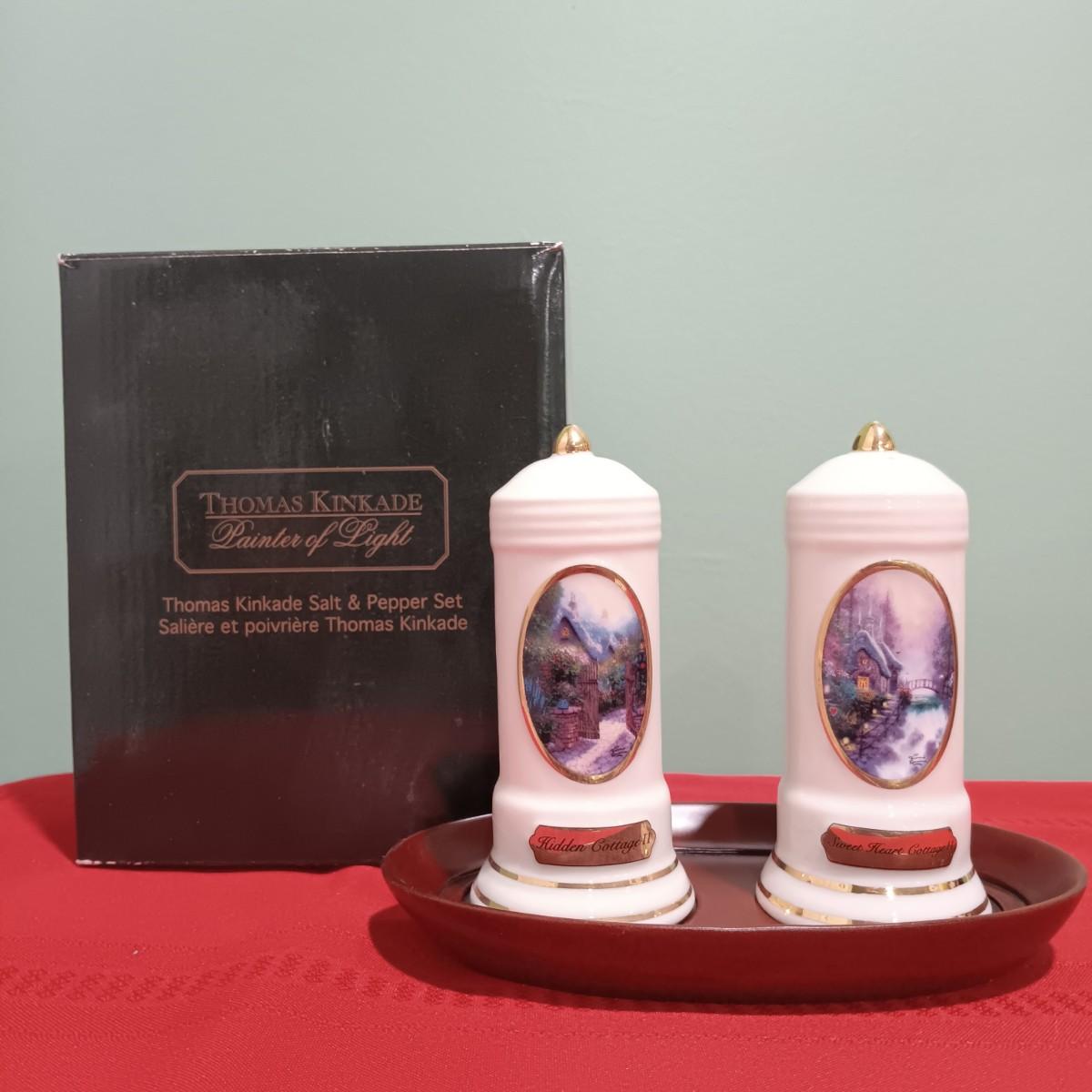 LOT 19: Thomas Kinkade 'Village Christmas' w/ 'Painter of Light' Cottage Salt and Pepper Shakers