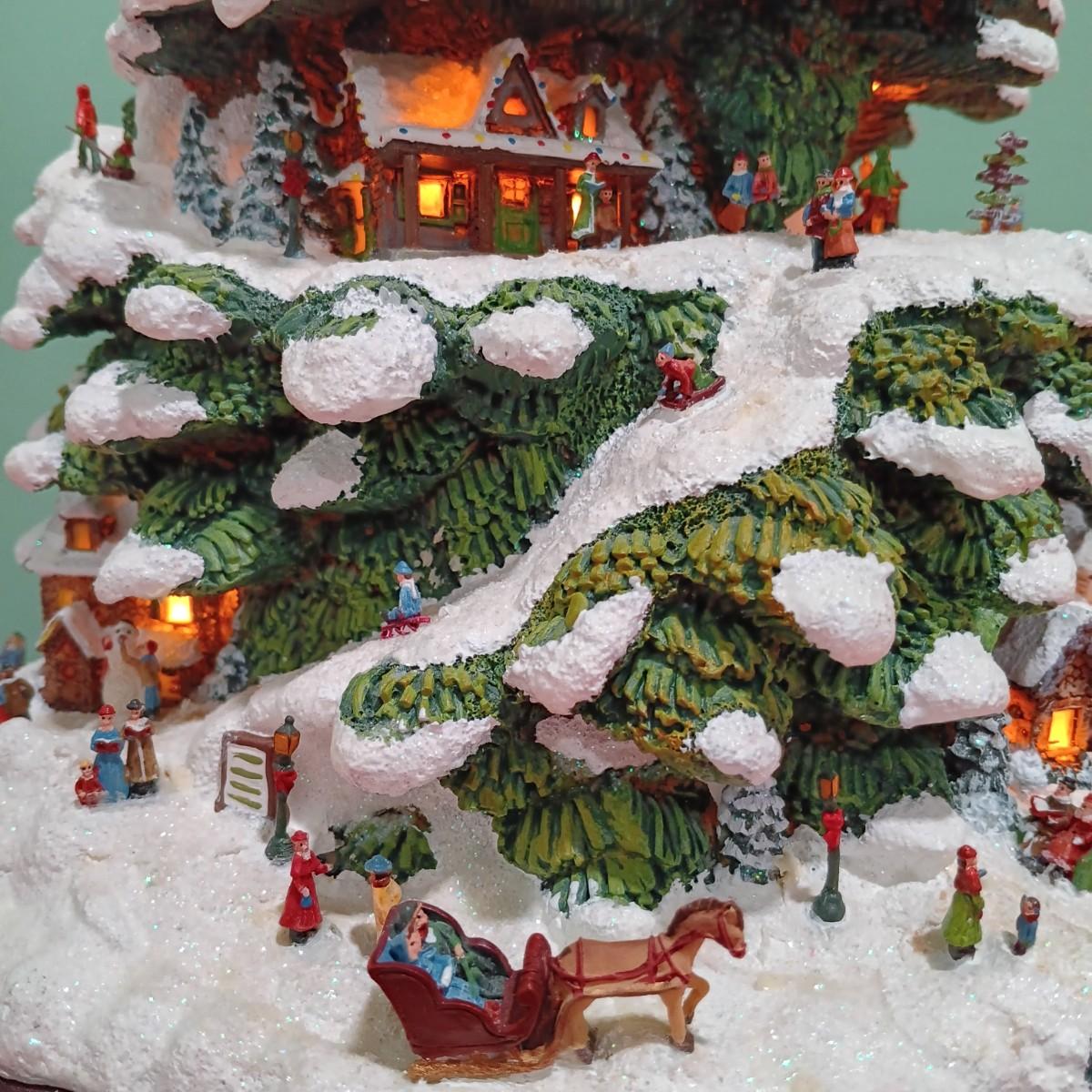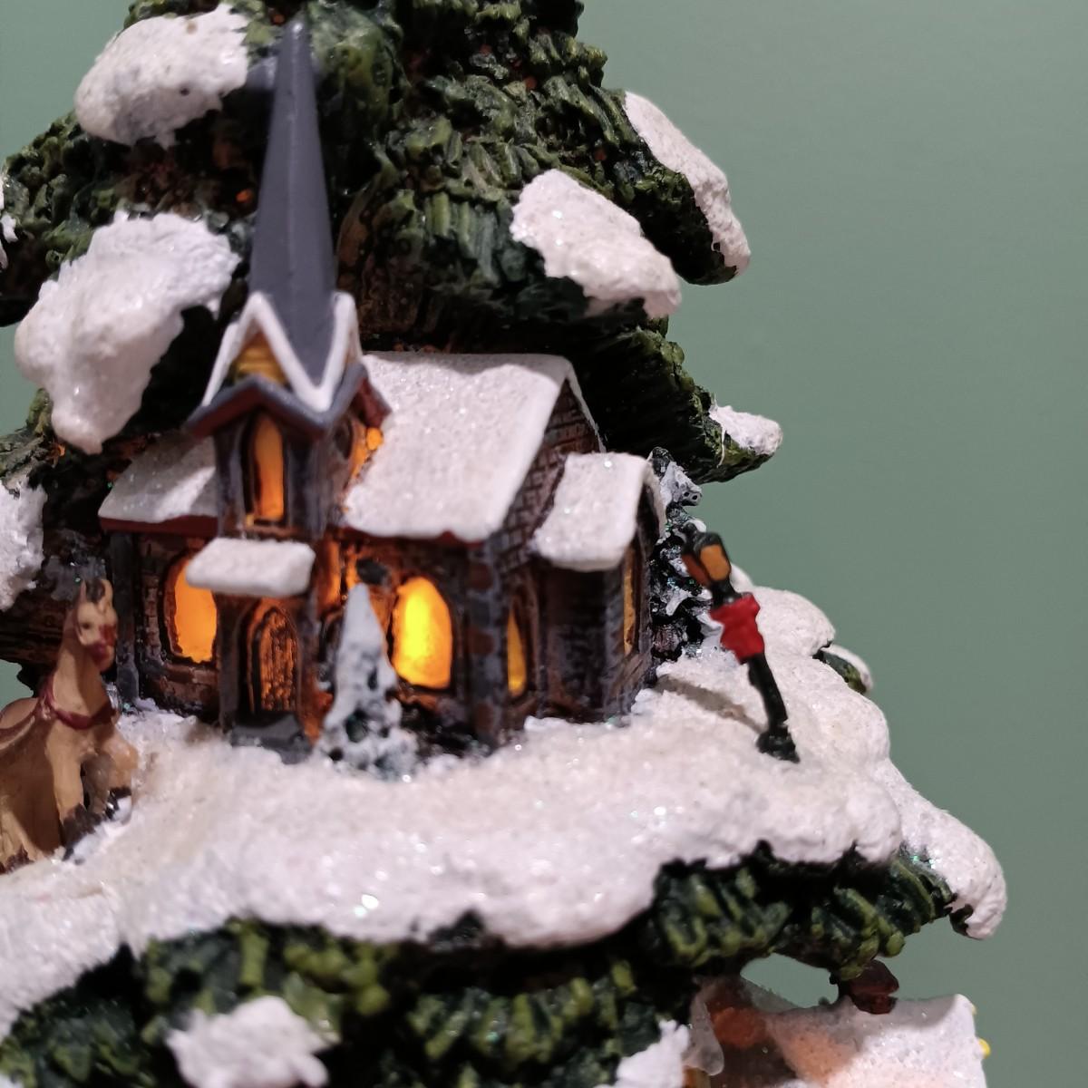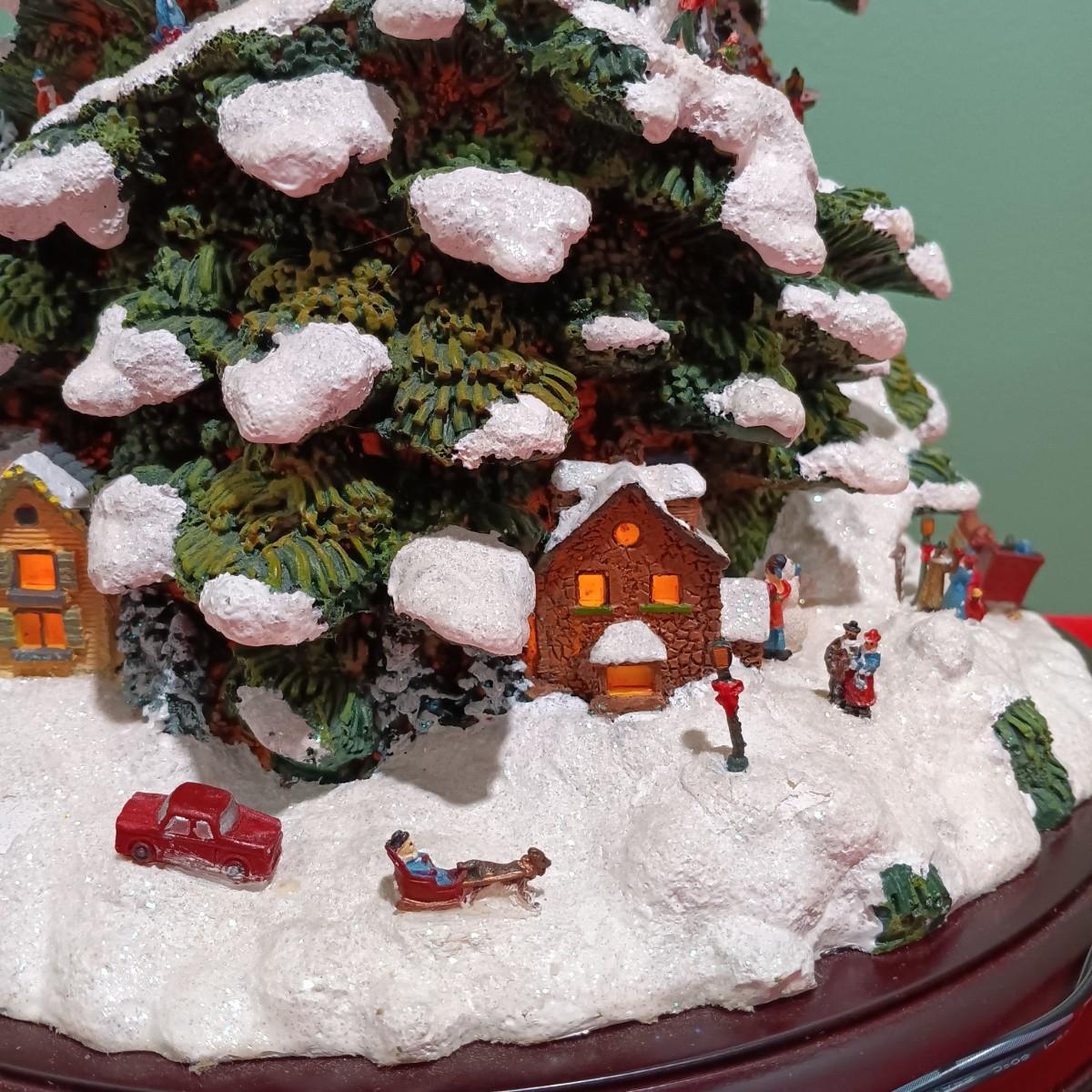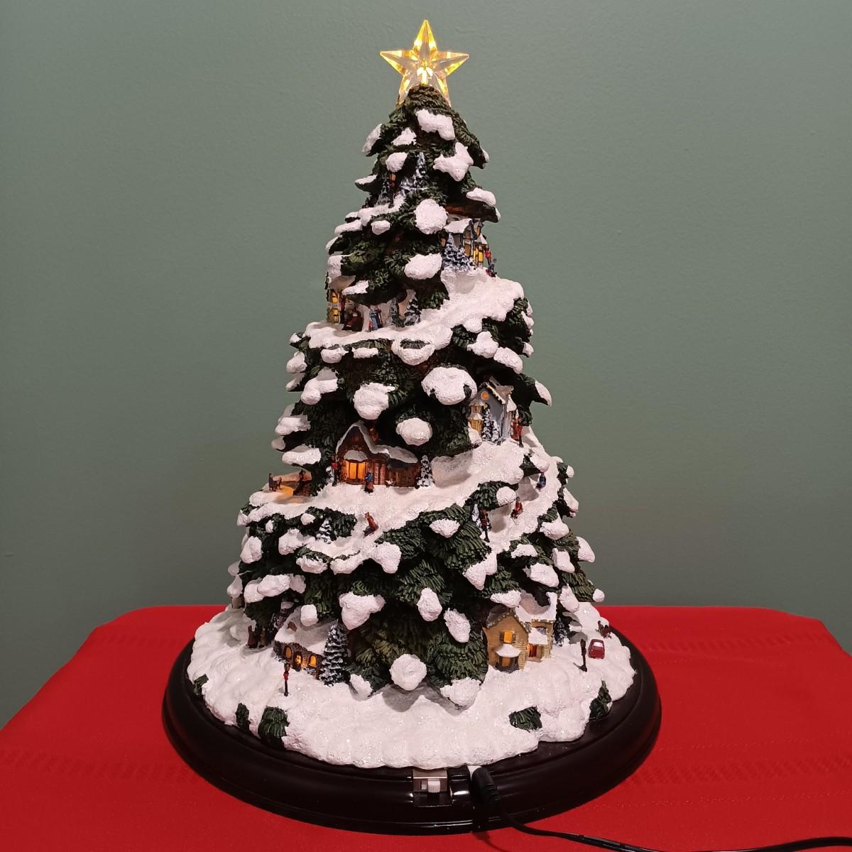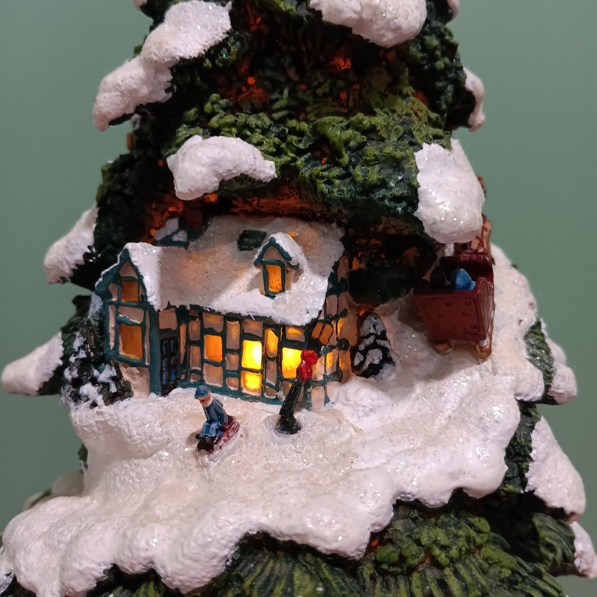 The tree has some bent parts and may be missing some small pieces from previous use. The battery cover is missing.