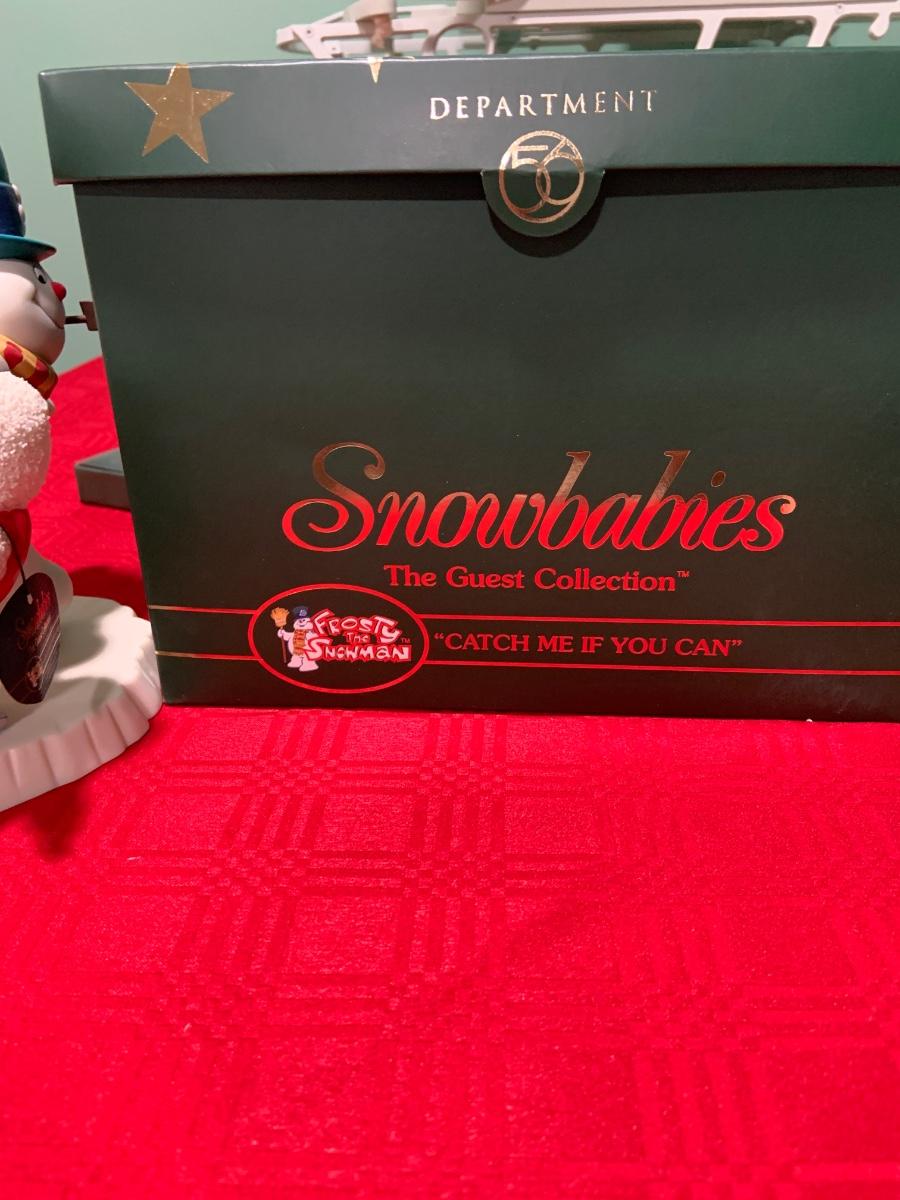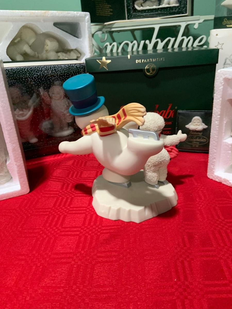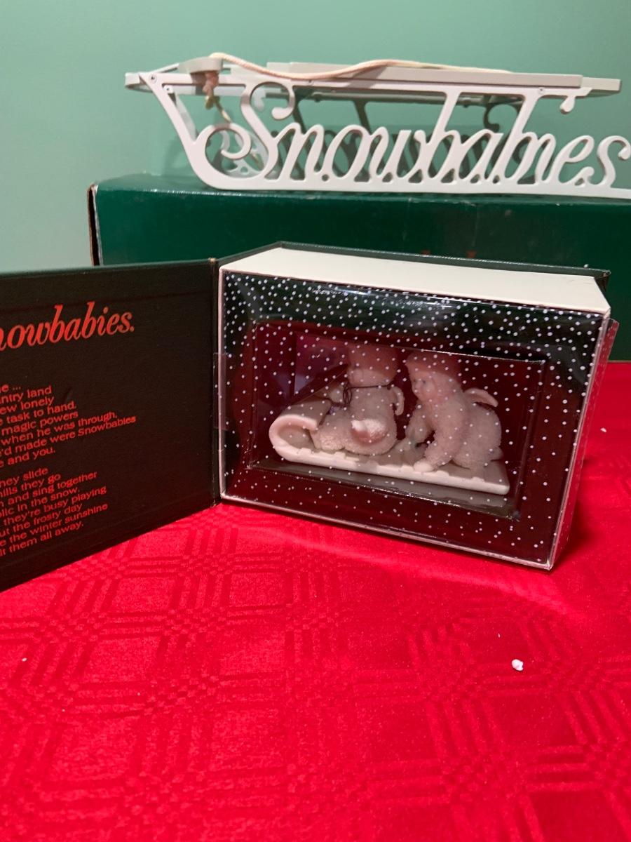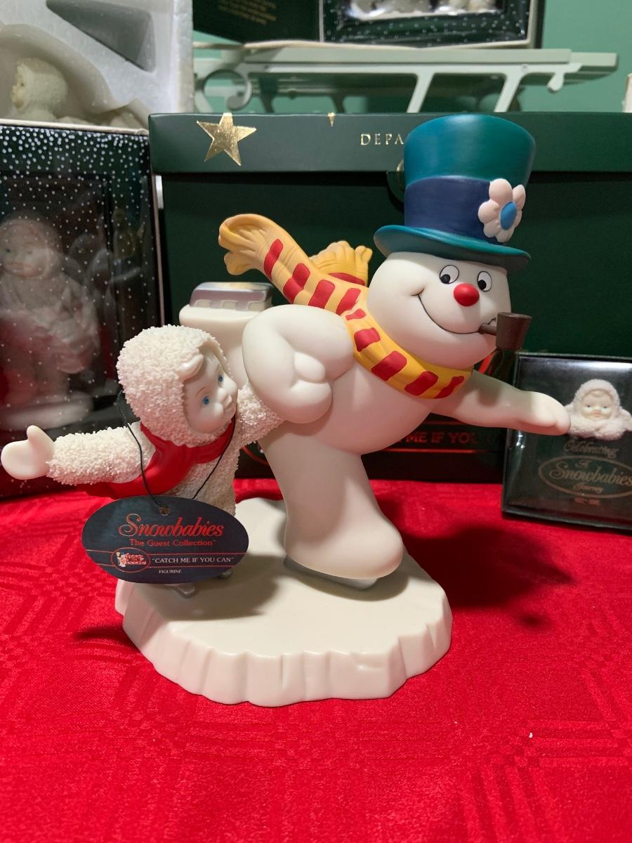 LOT:31G: Collection of Department 56 Snowbabies Figurines Featuring Fosty the Snowman "Catch Me If You Can" Figurine, Snowbabies Display Sled and More Adorable Figurines