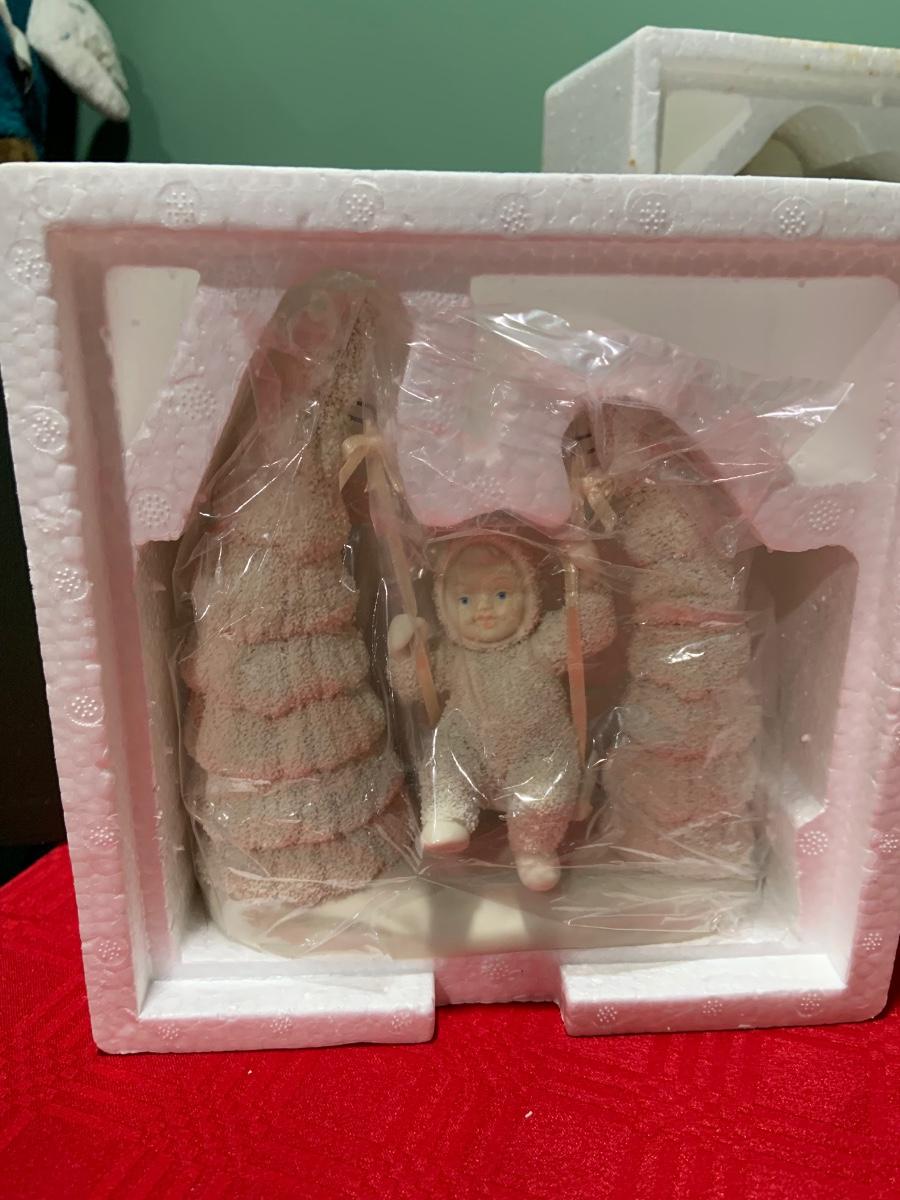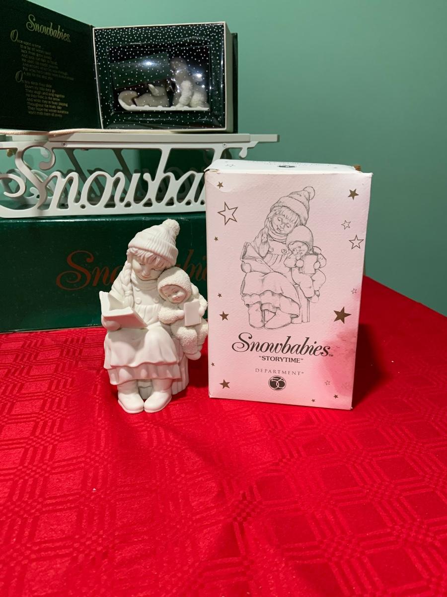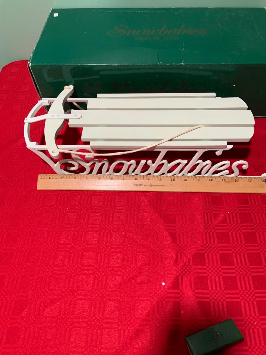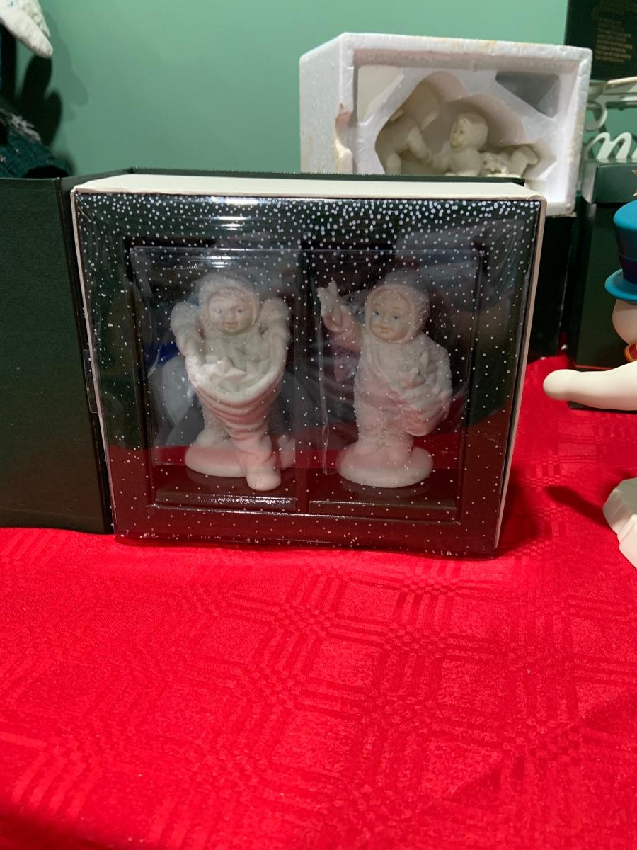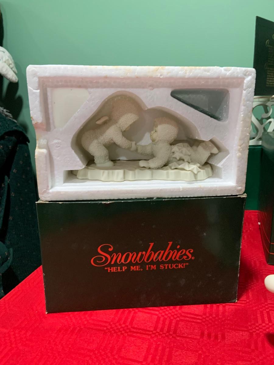 LOT:31G: Collection of Department 56 Snowbabies Figurines Featuring Fosty the Snowman "Catch Me If You Can" Figurine, Snowbabies Display Sled and More Adorable Figurines