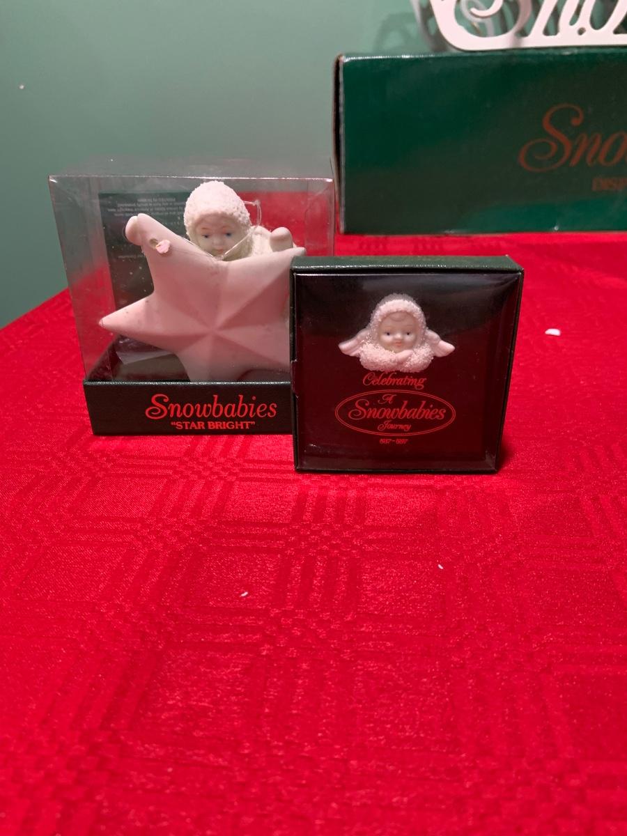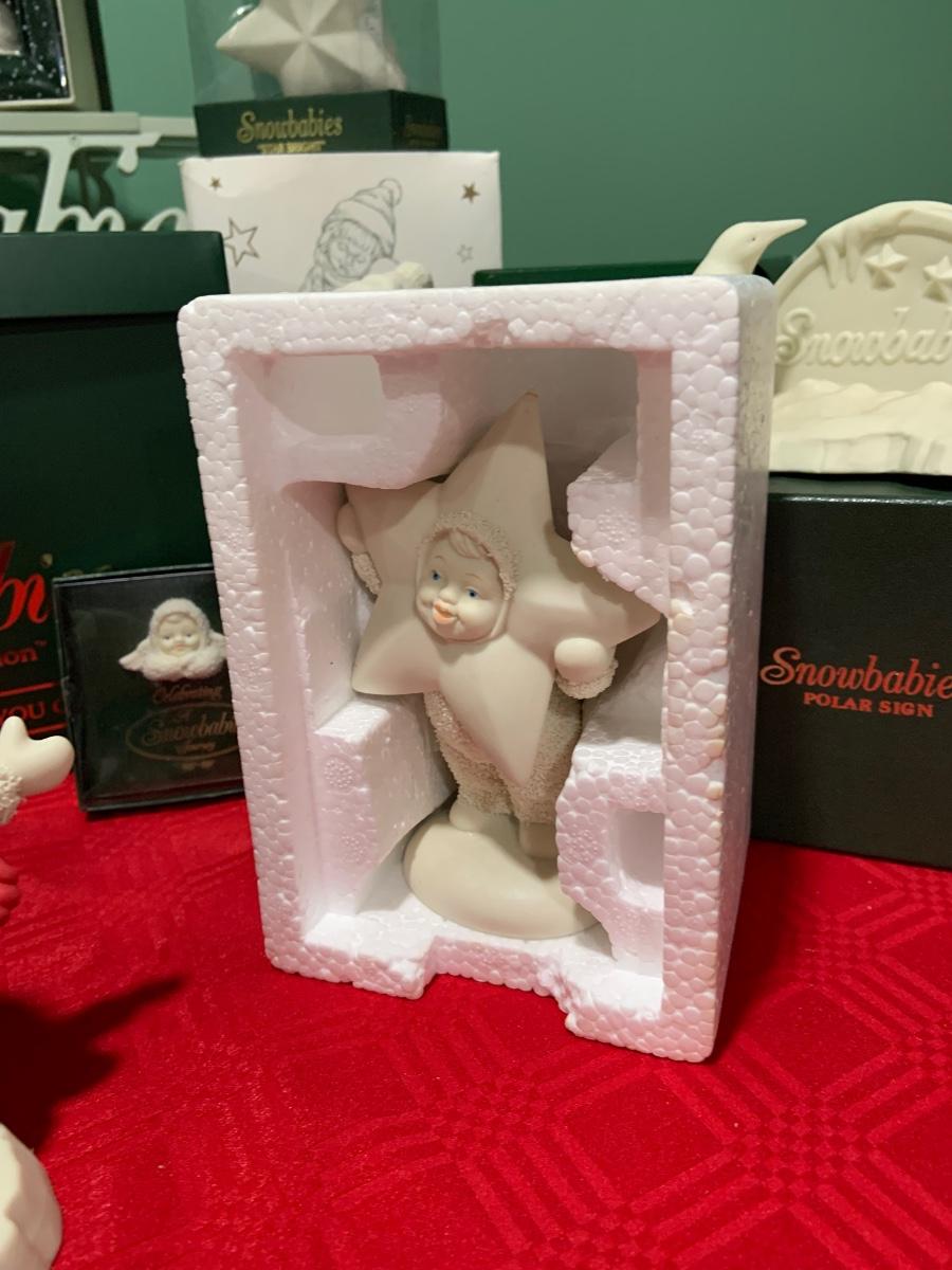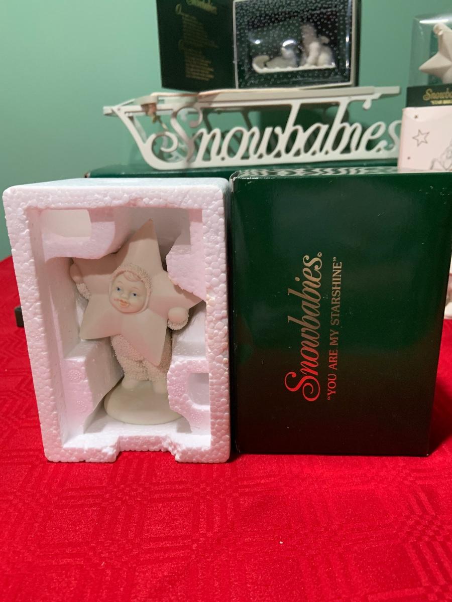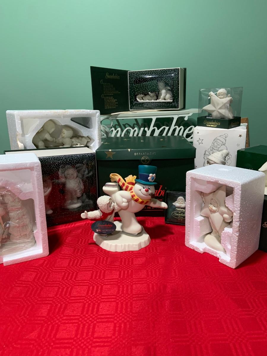 LOT:31G: Collection of Department 56 Snowbabies Figurines Featuring Fosty the Snowman "Catch Me If You Can" Figurine, Snowbabies Display Sled and More Adorable Figurines
