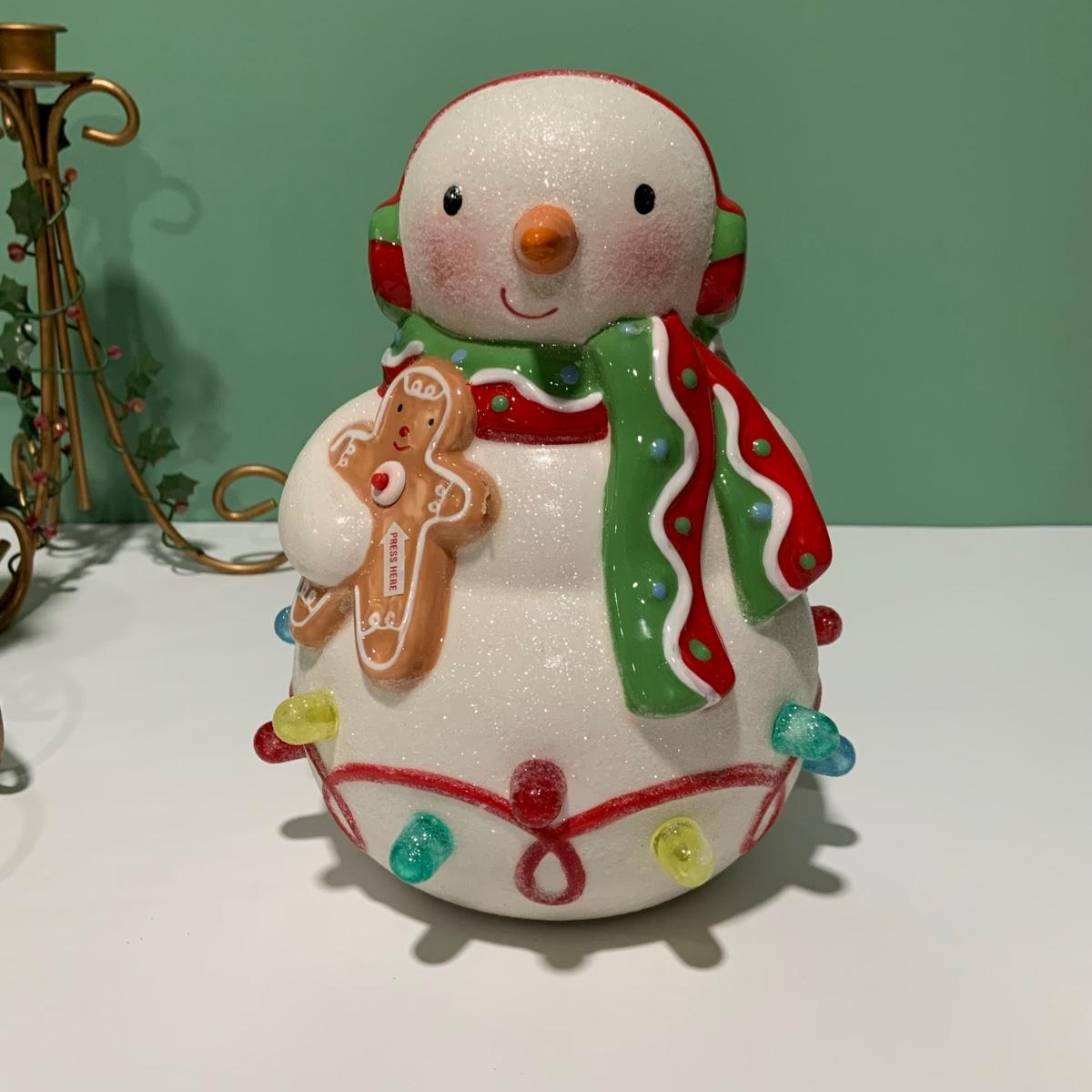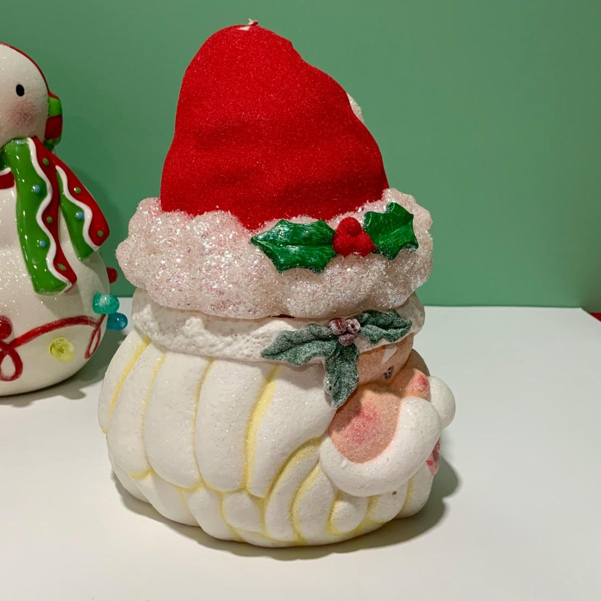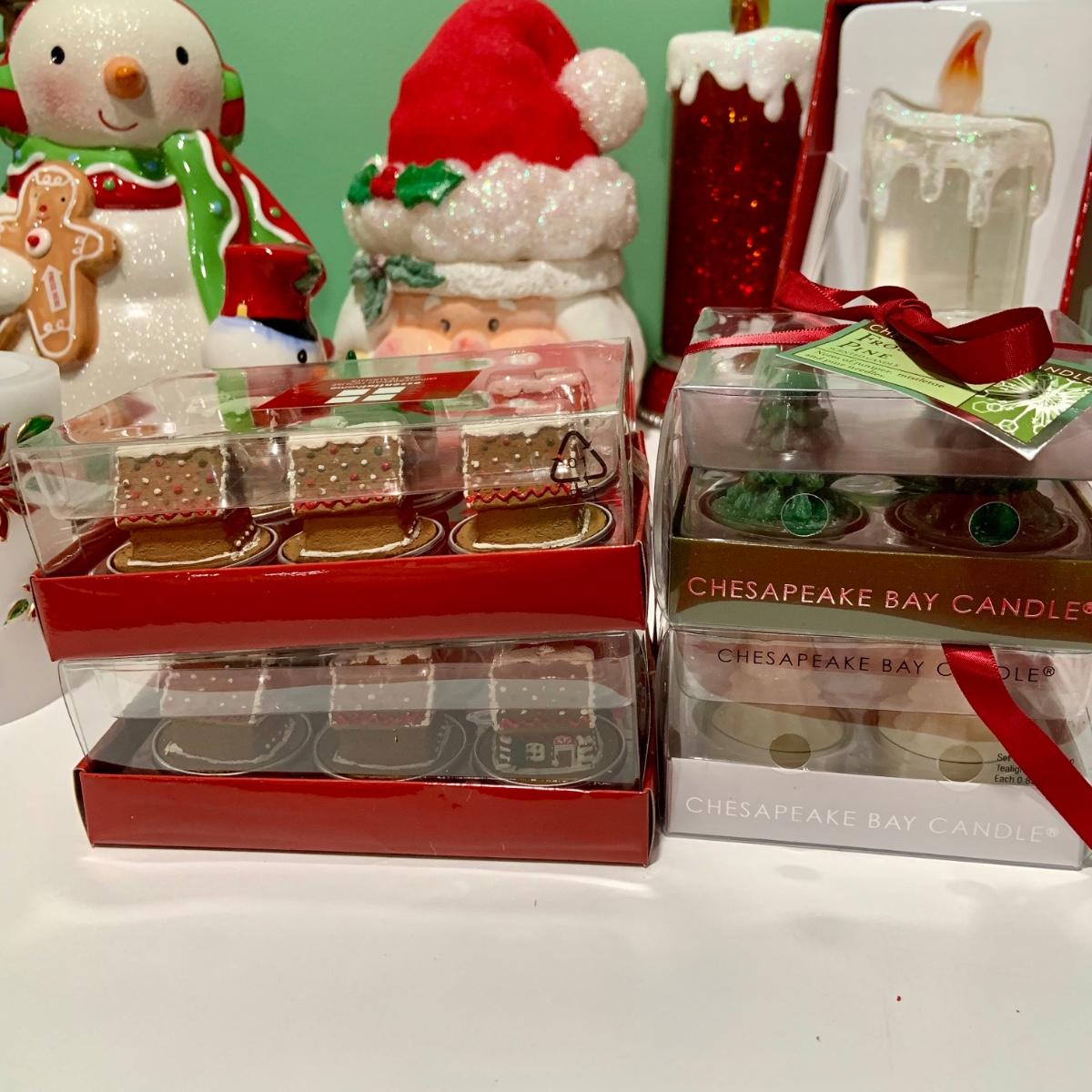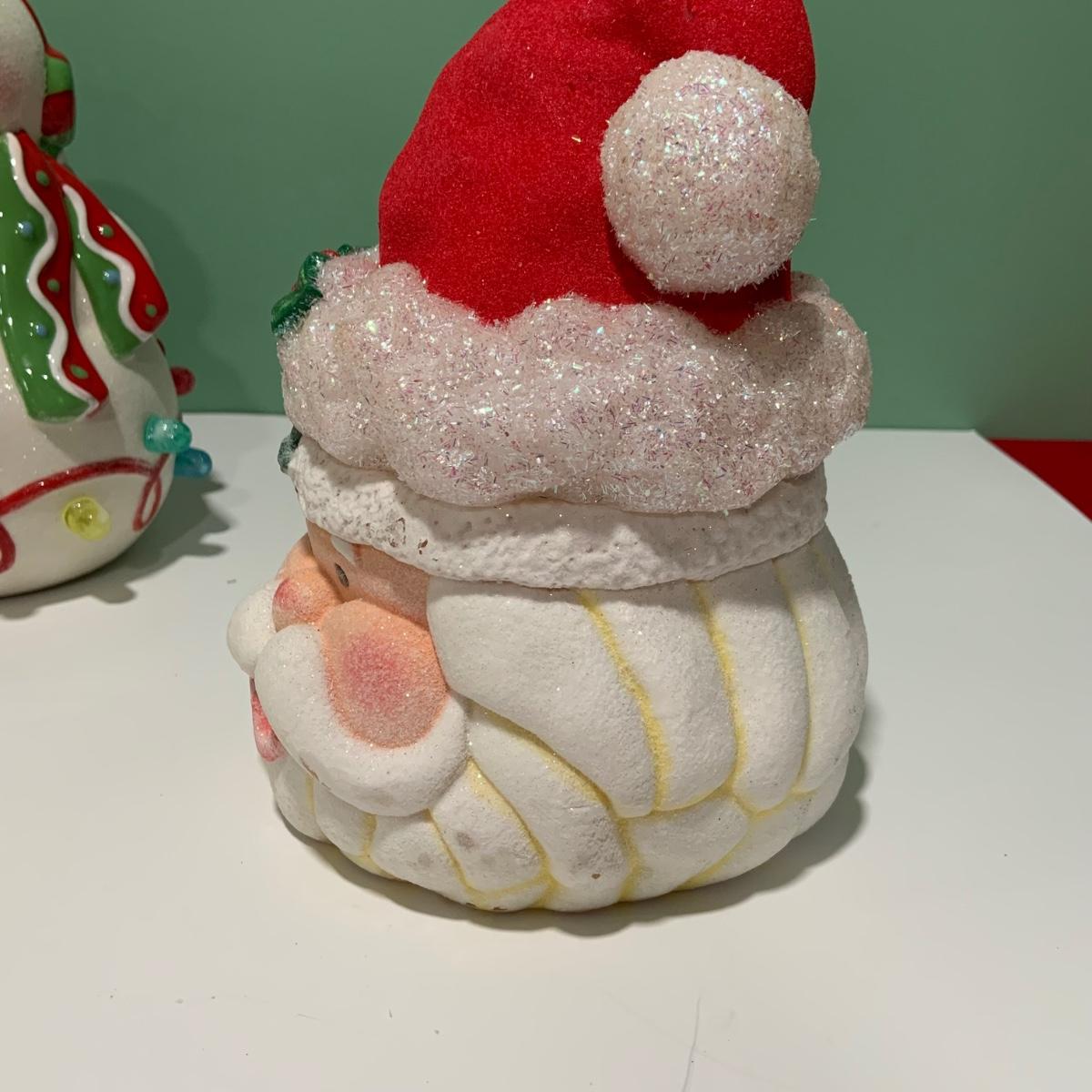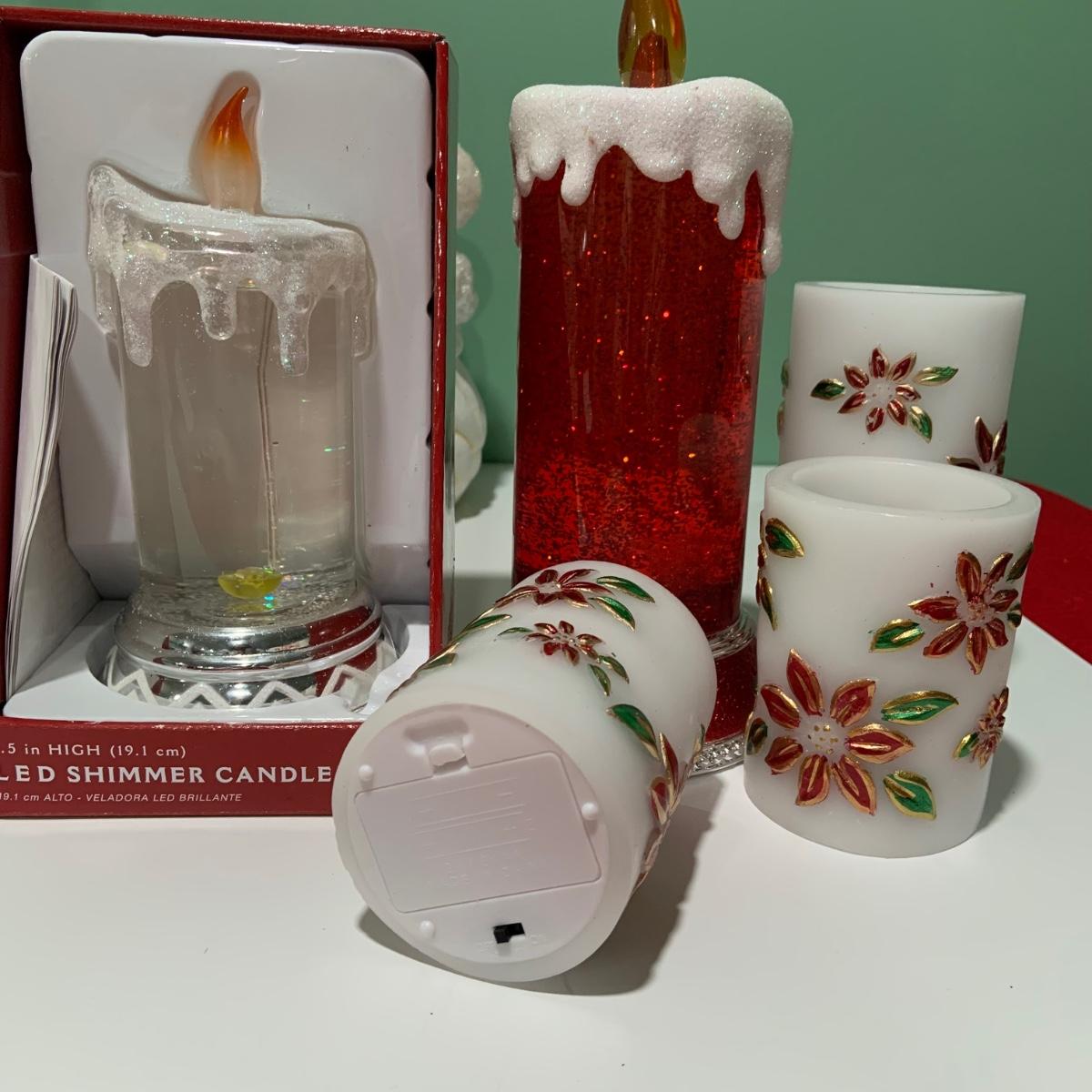 LOT:38: Light Up the Holidays Collection of Flameless Candles, White Barn Snowman Candle, Large Santa Head Wax Candle, Hallmark Light-Up Snowman Mini Gingerbread House Candles and More