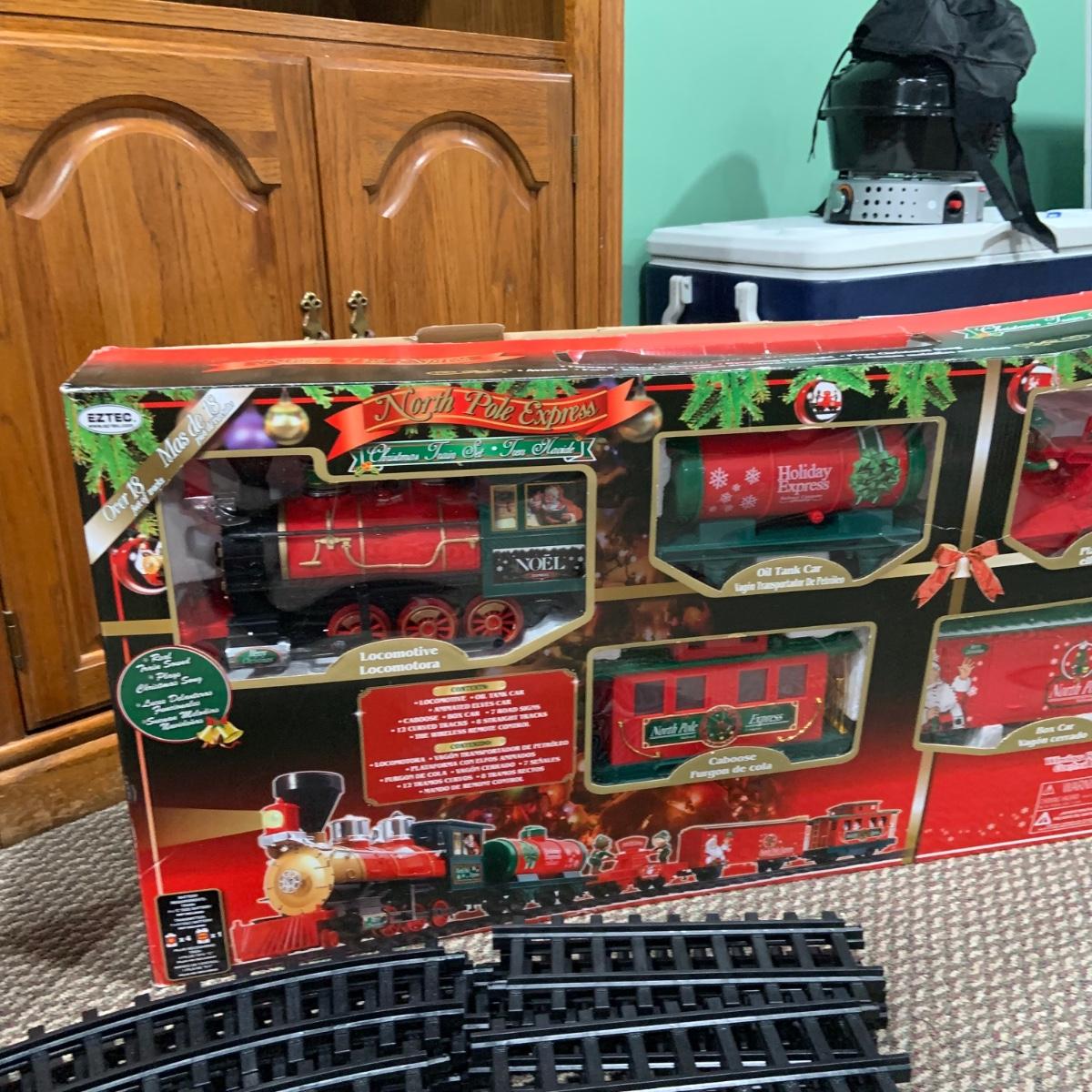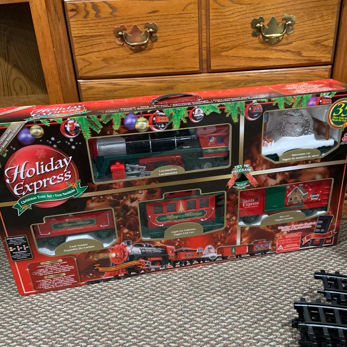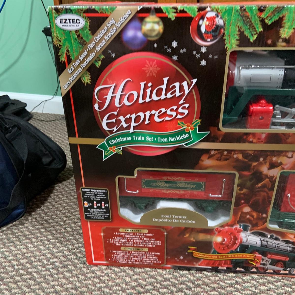 The CAT train set is missing a car but the Holiday Exoress set was never removed from the box.