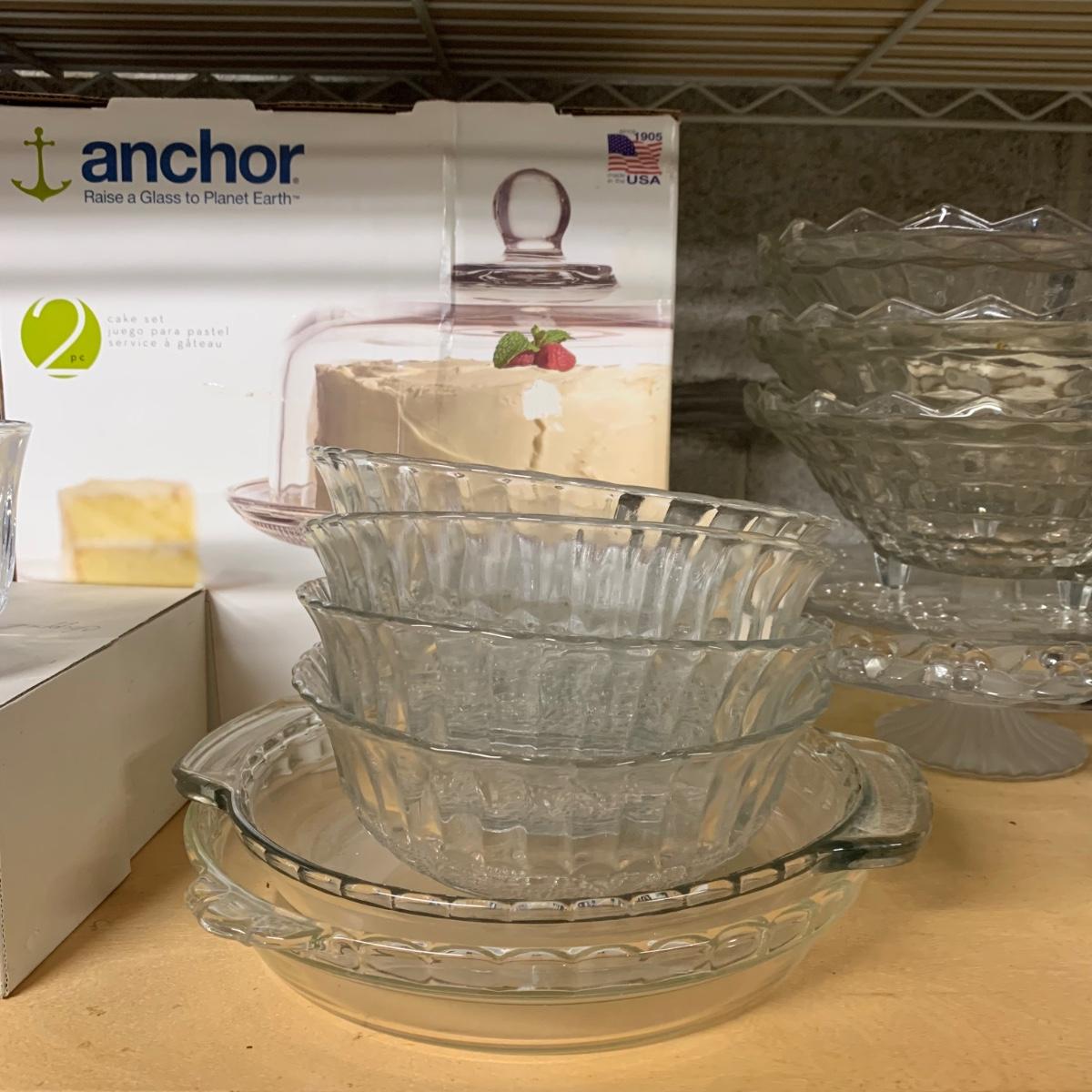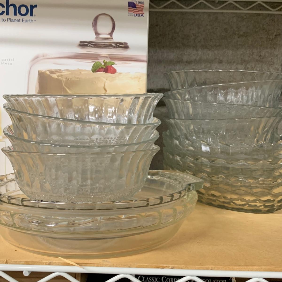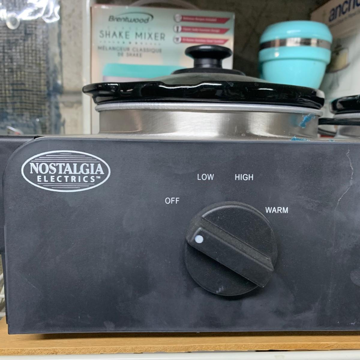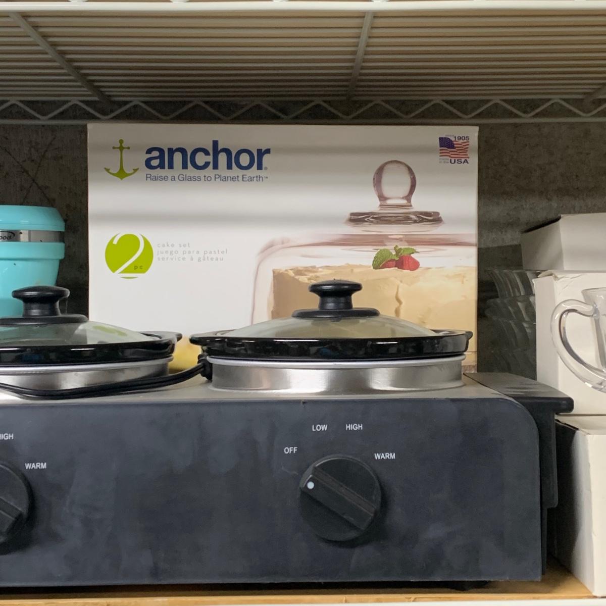 LOT:56: Kitchen Closet Lot Includes Brentwood Shake Mixer In MCM Blue, Nostalgia Electrics Slow Cooker Buffet, Glass Dishes. Anchor Cake Dish and More