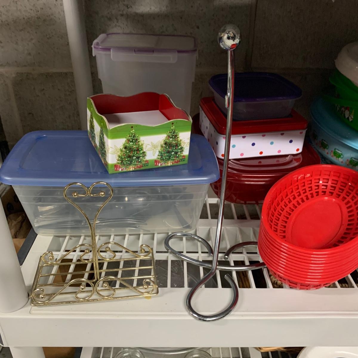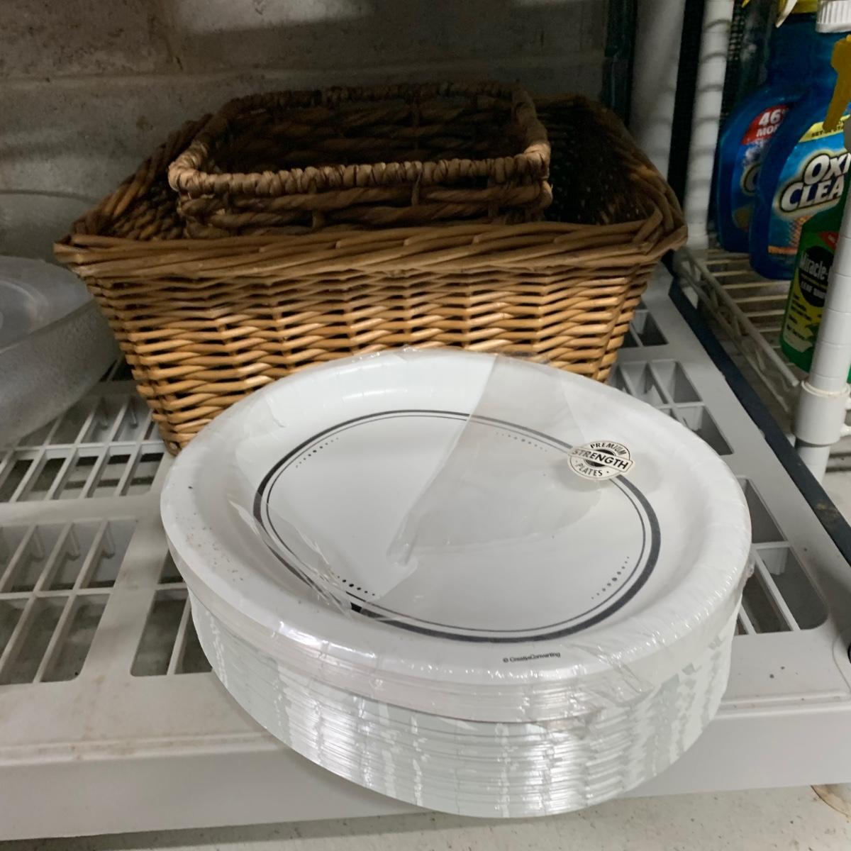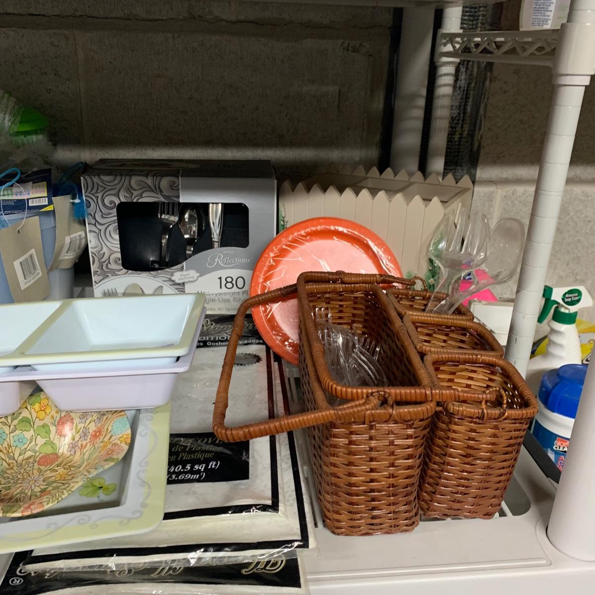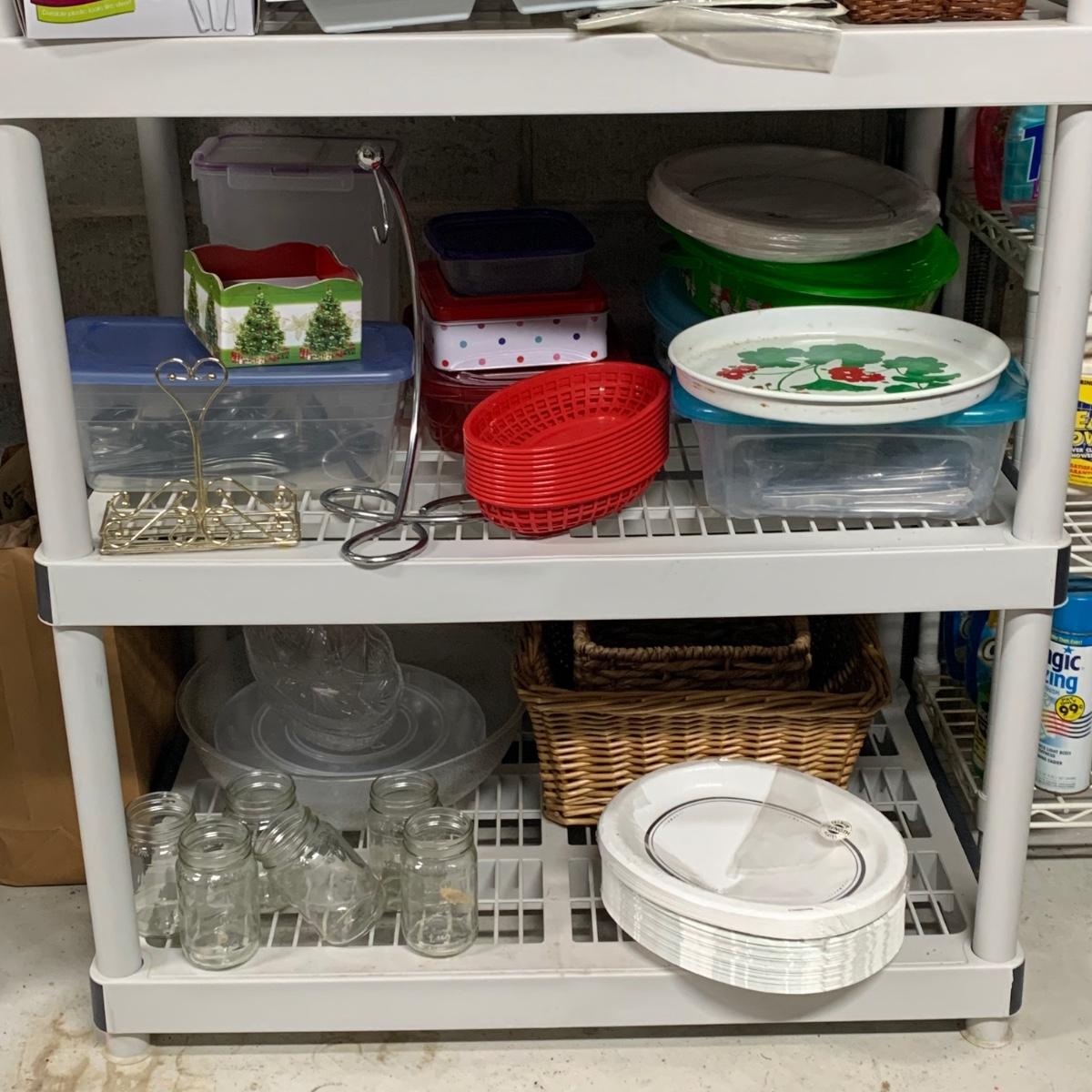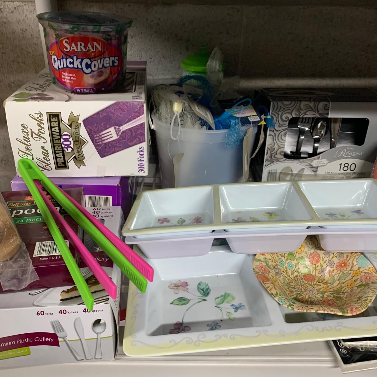 LOT 58B: Everything to Party Lot - Paperplates, Plasticware, Plastic Serving Dishes, Mason Jars and More