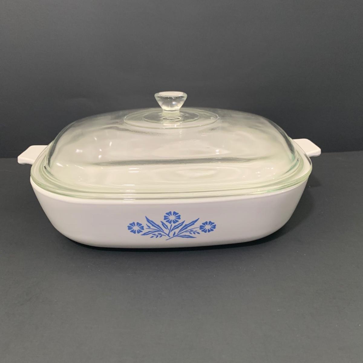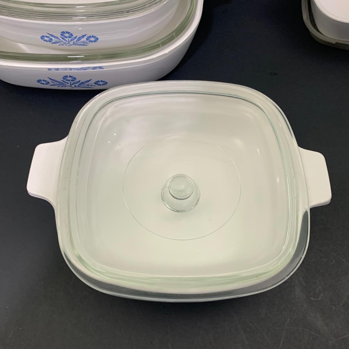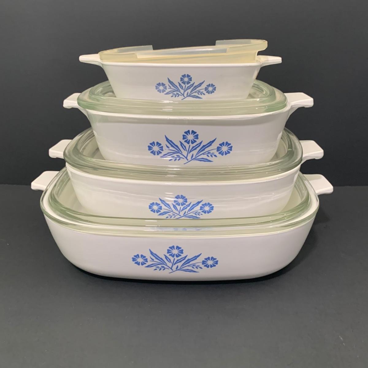 LOT 64: Set of 4 Various Sizes Corningware Blue Cornflower Baking Dishes with Lids