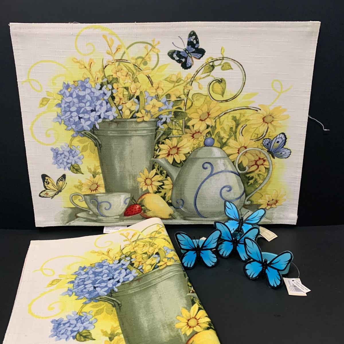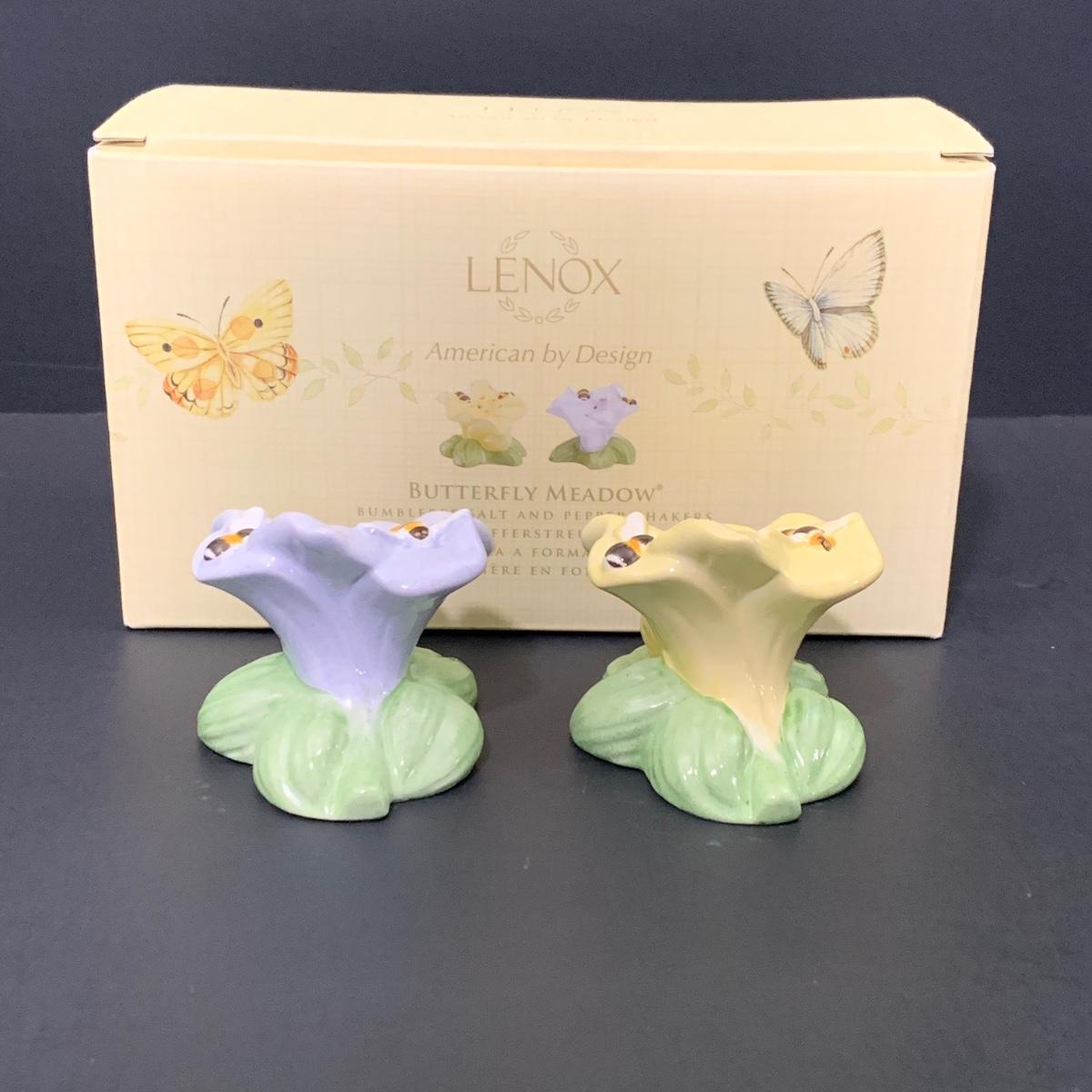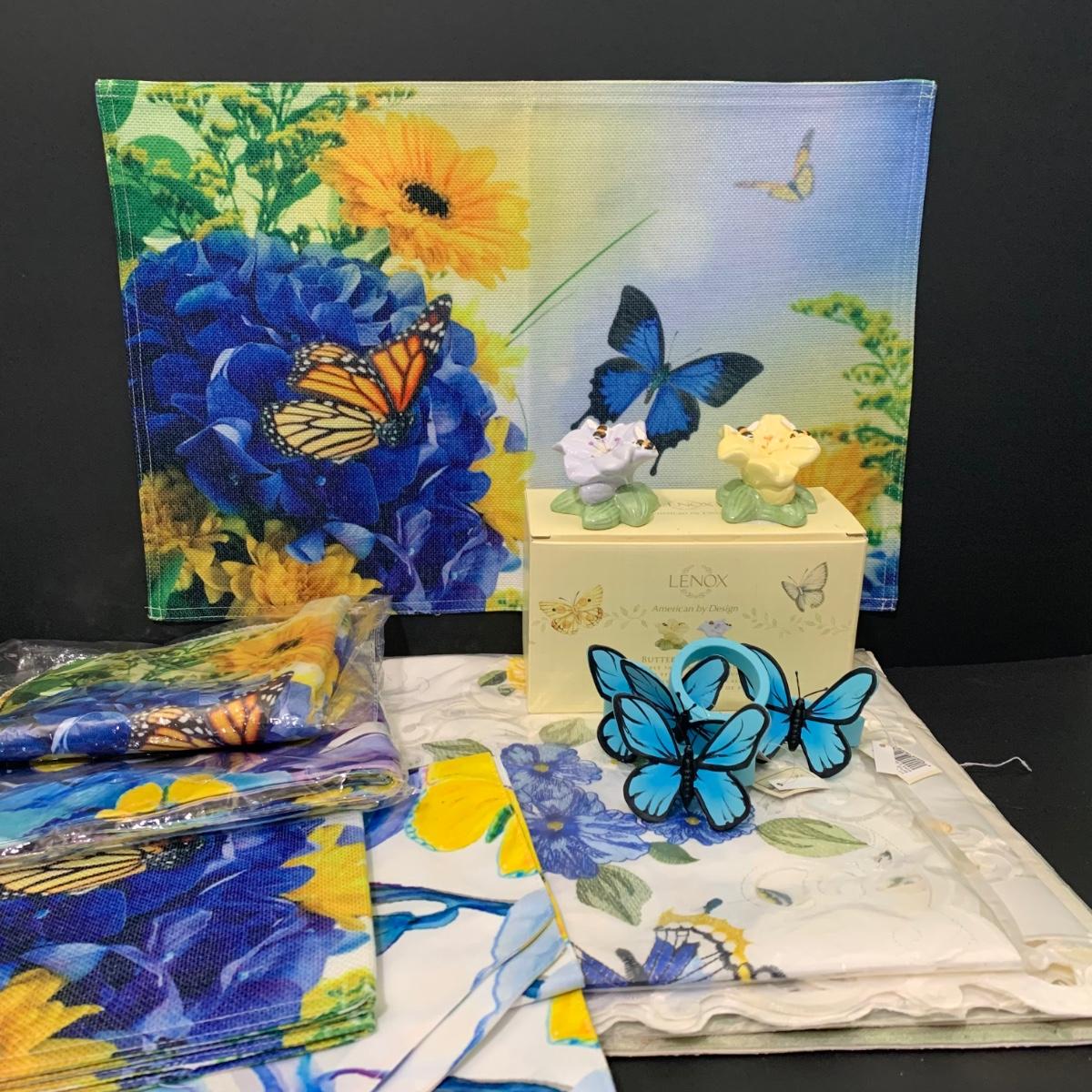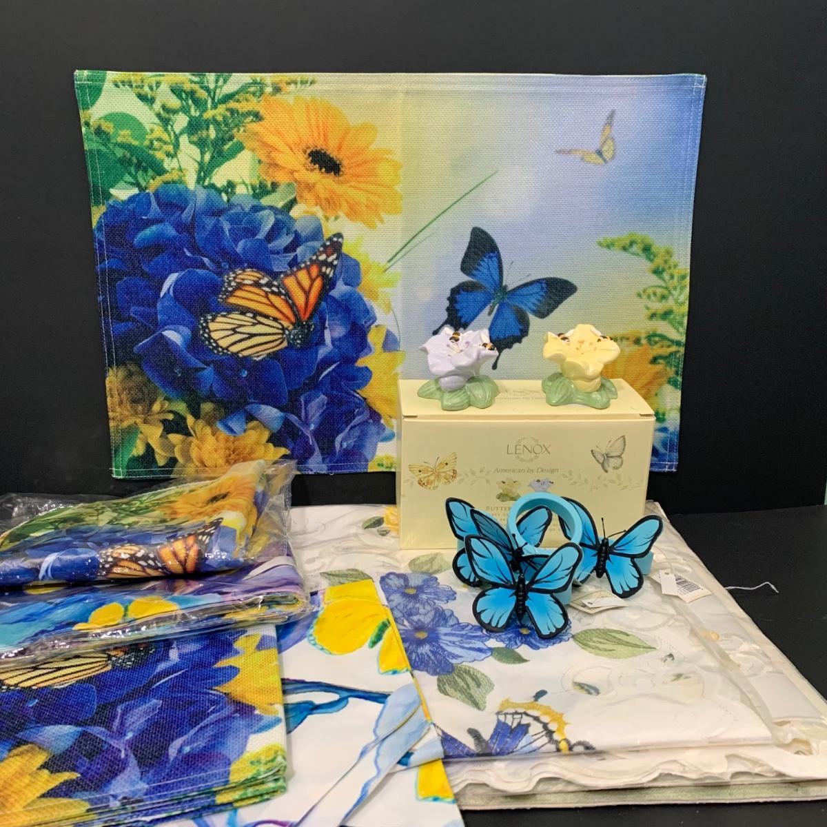 LOT 66: Think Spring - Lenox Butterfly Meadow Bubble Bee Shakers, Butterfly Napkin Rings, Table Linens, Flags and More