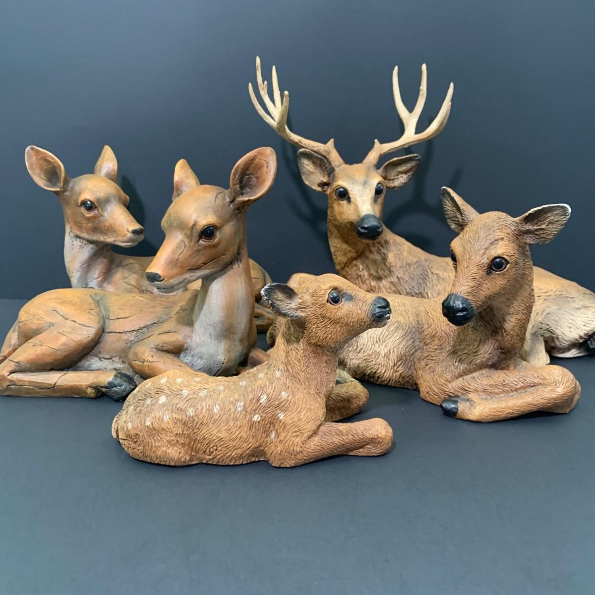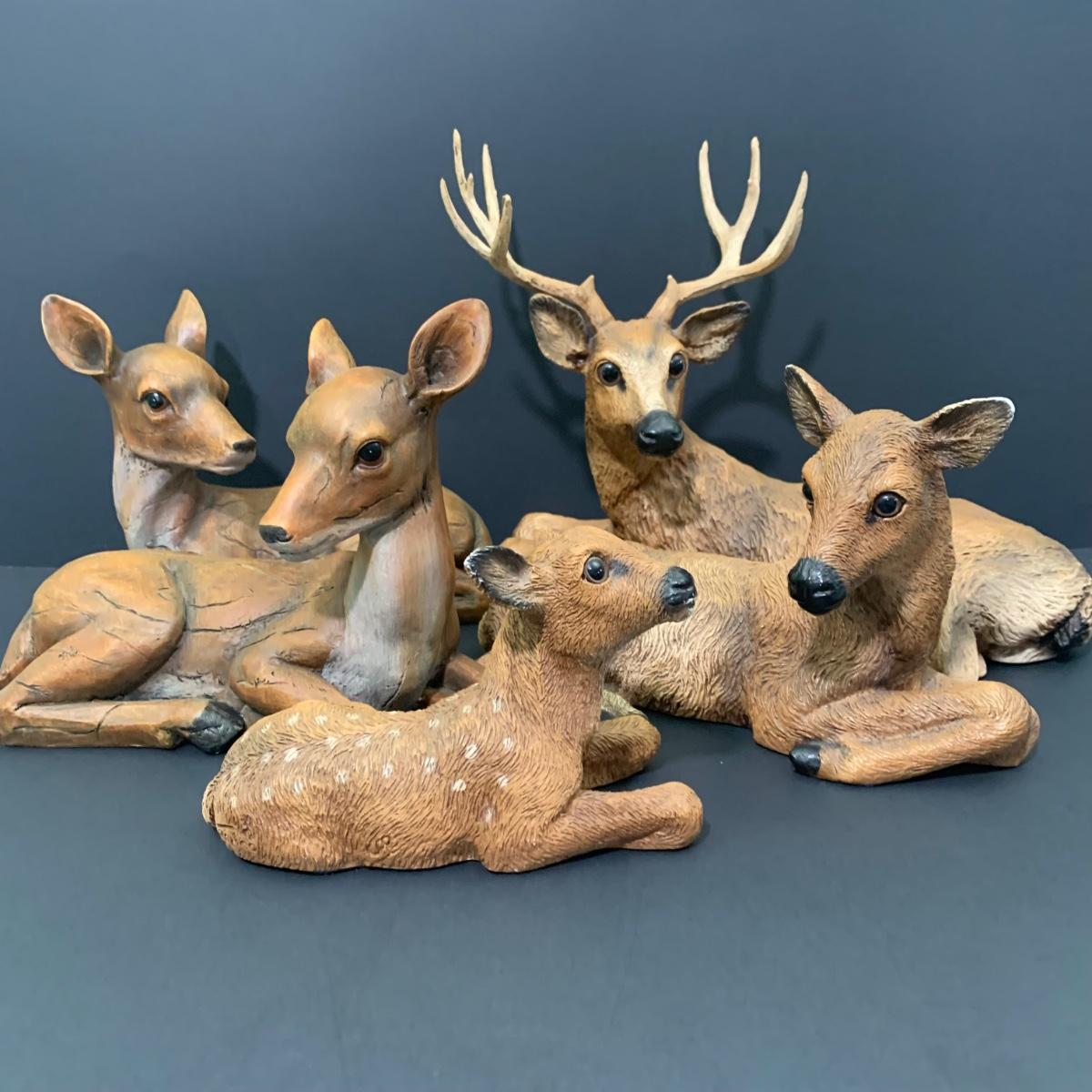 LOT 68: Collection of Resin Sitting Deer - Does, Fawn and a Buck