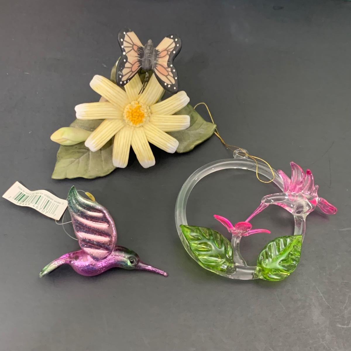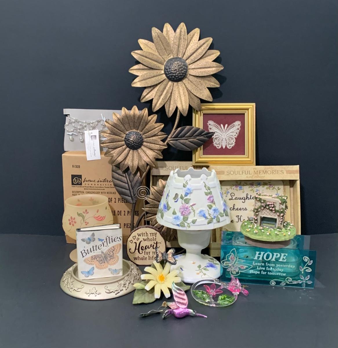 LOT 70: Spring Home Decor Collection - Humming Birds and Butterfly Hanging Ornaments, Floral Books, Candle Holders and Plaques, and More