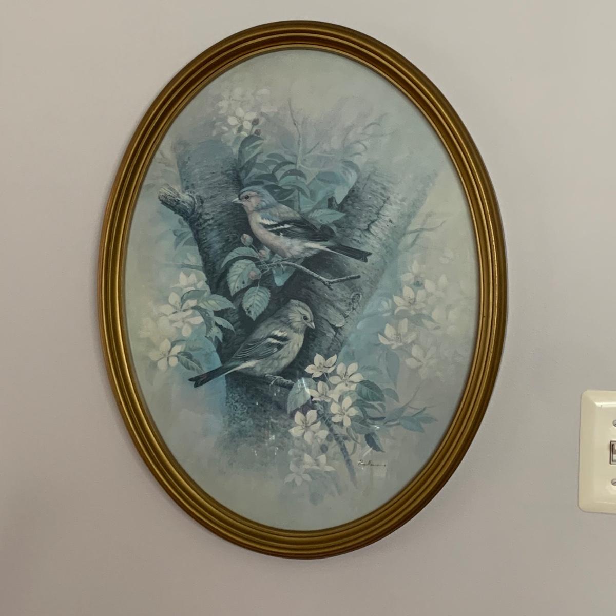 LOT 78: Oval Framed Wall Art by Ruane Manning - Birds