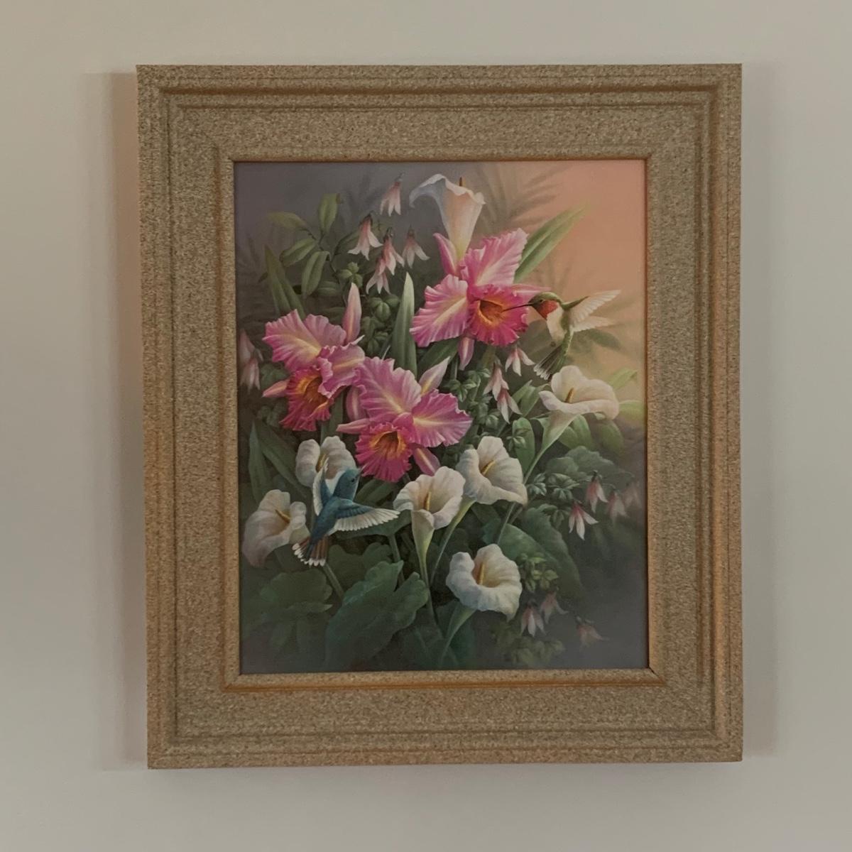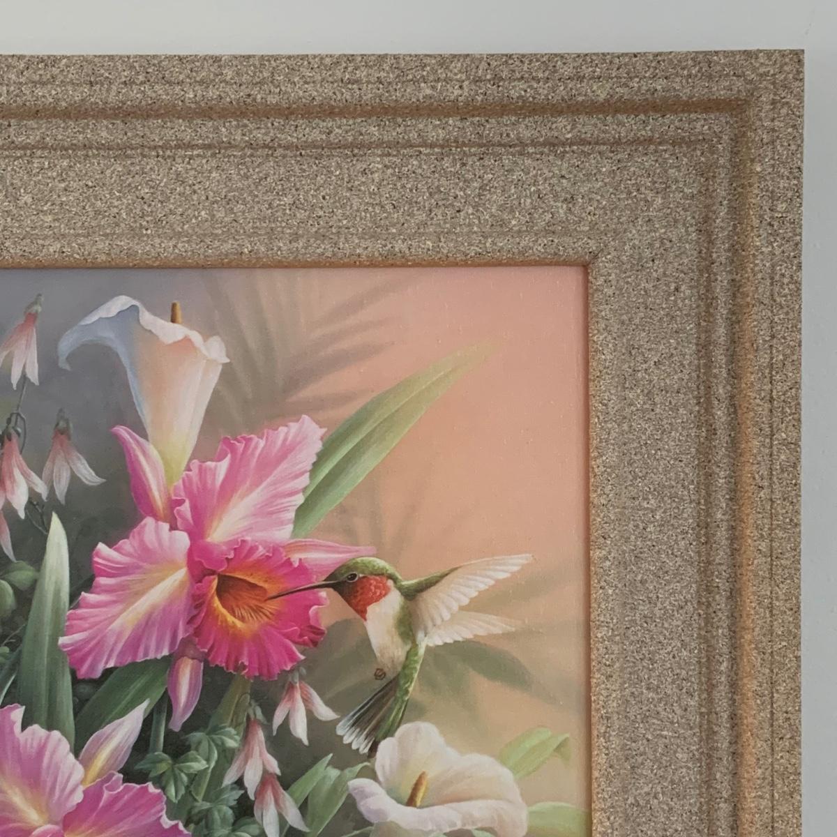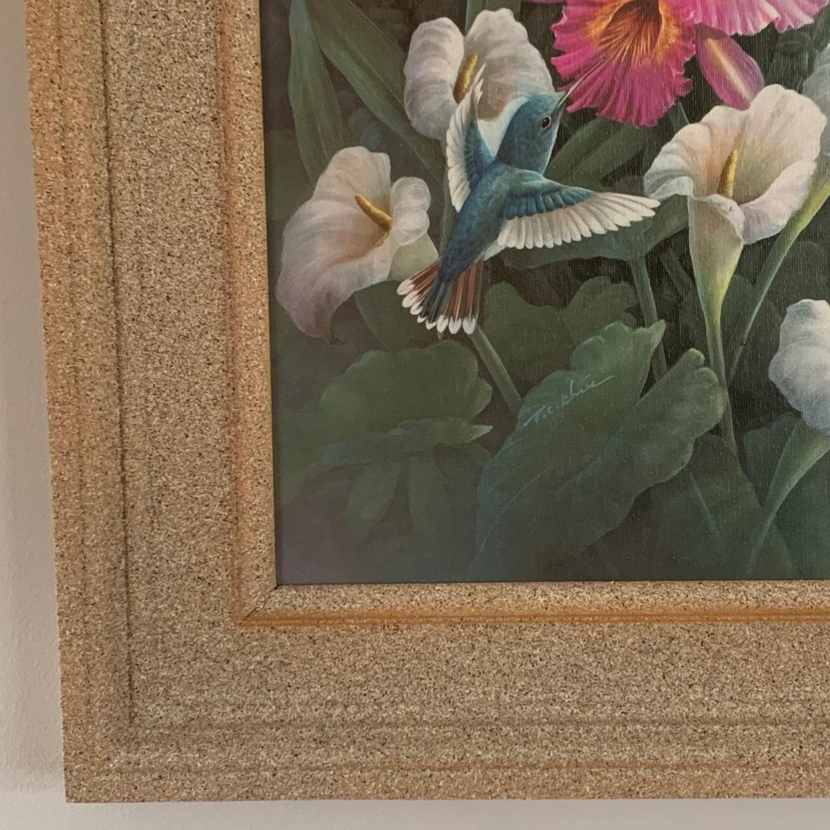 LOT 79: Beautiful Framed Humming Bird and Flowers Print