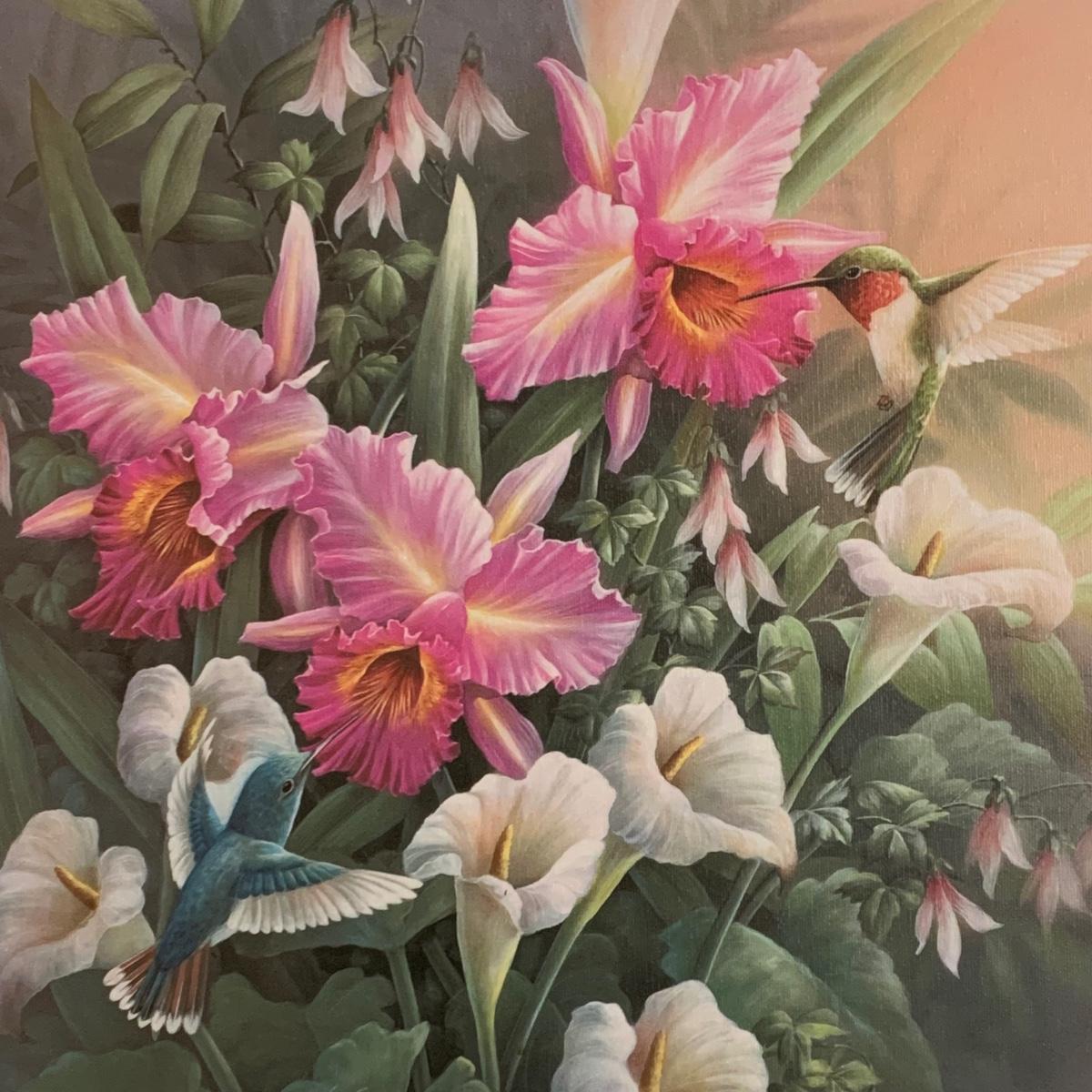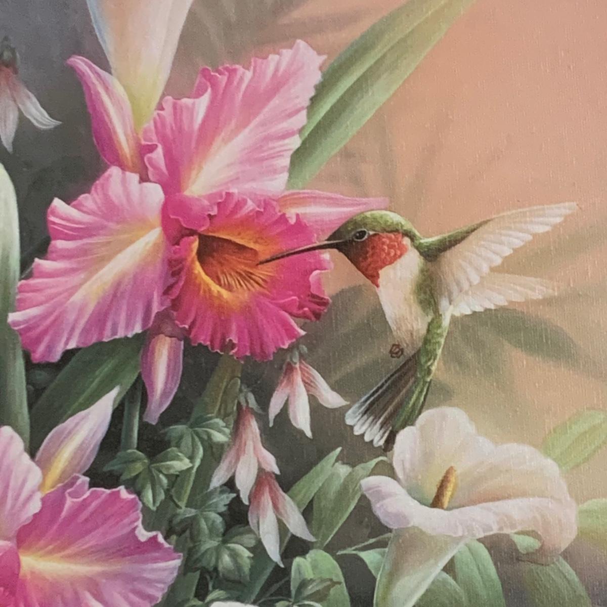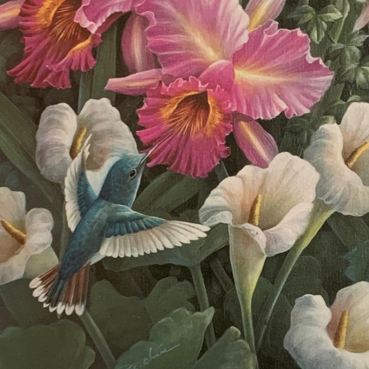 LOT 79: Beautiful Framed Humming Bird and Flowers Print