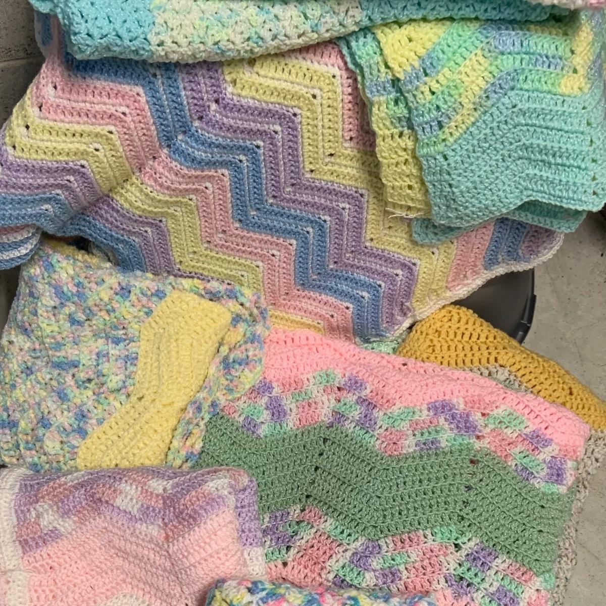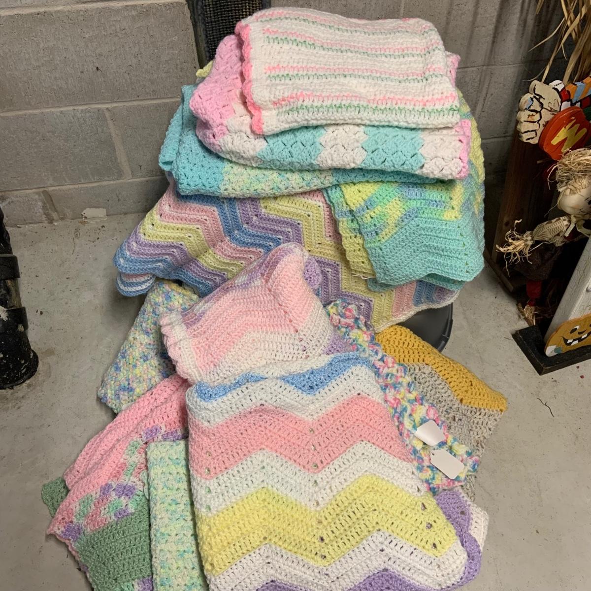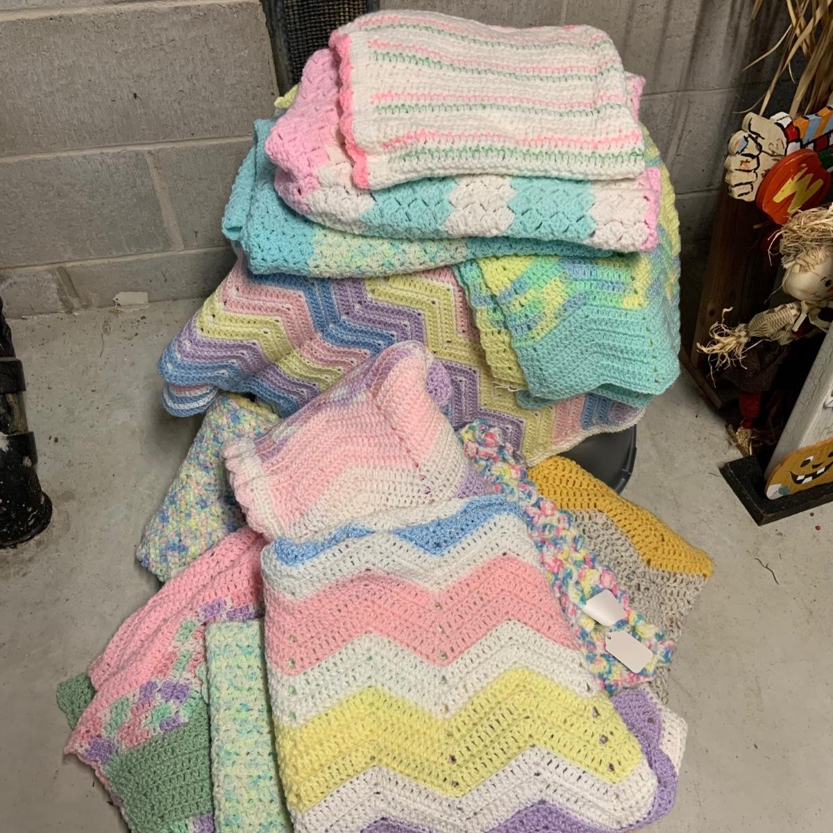 LOT:83: Beautiful Handmade Crocheted Baby Blankets and Throws