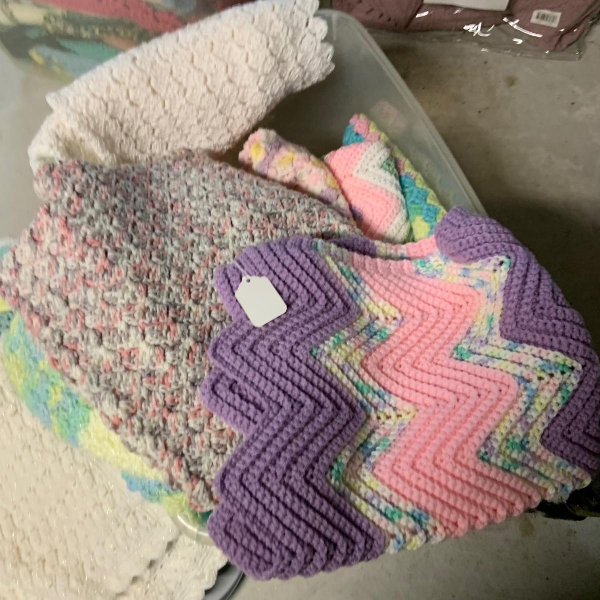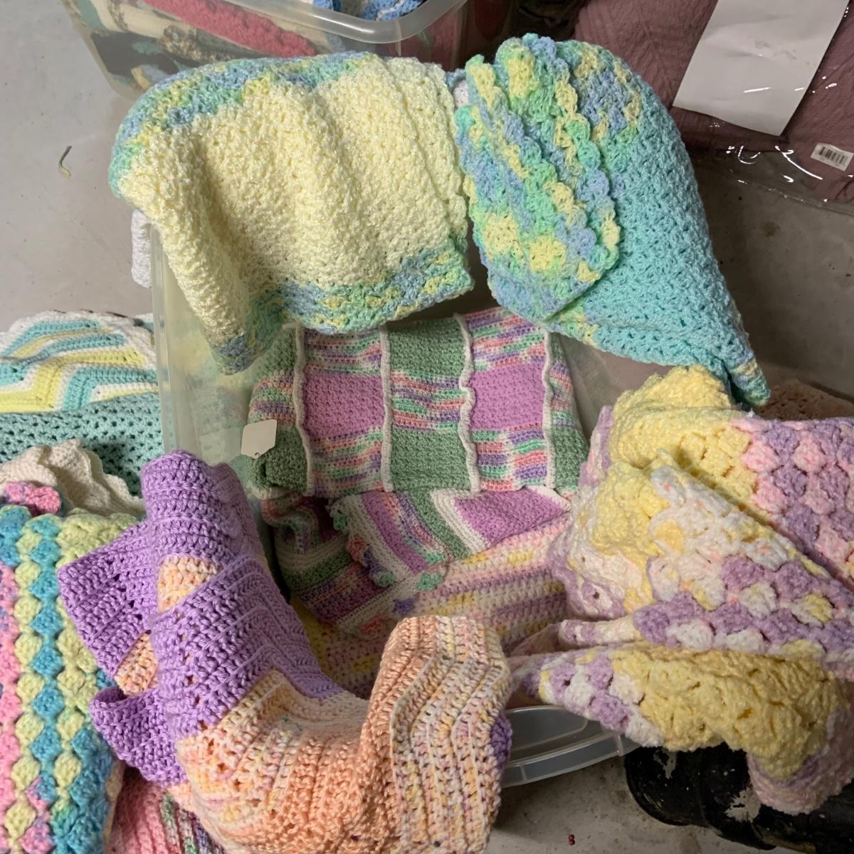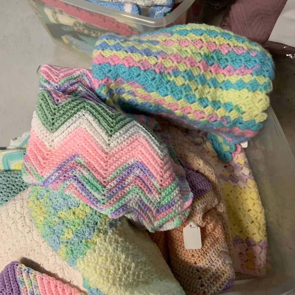 LOT:84: Assortment of Hand Crocheted Baby Blankets, Throws and More