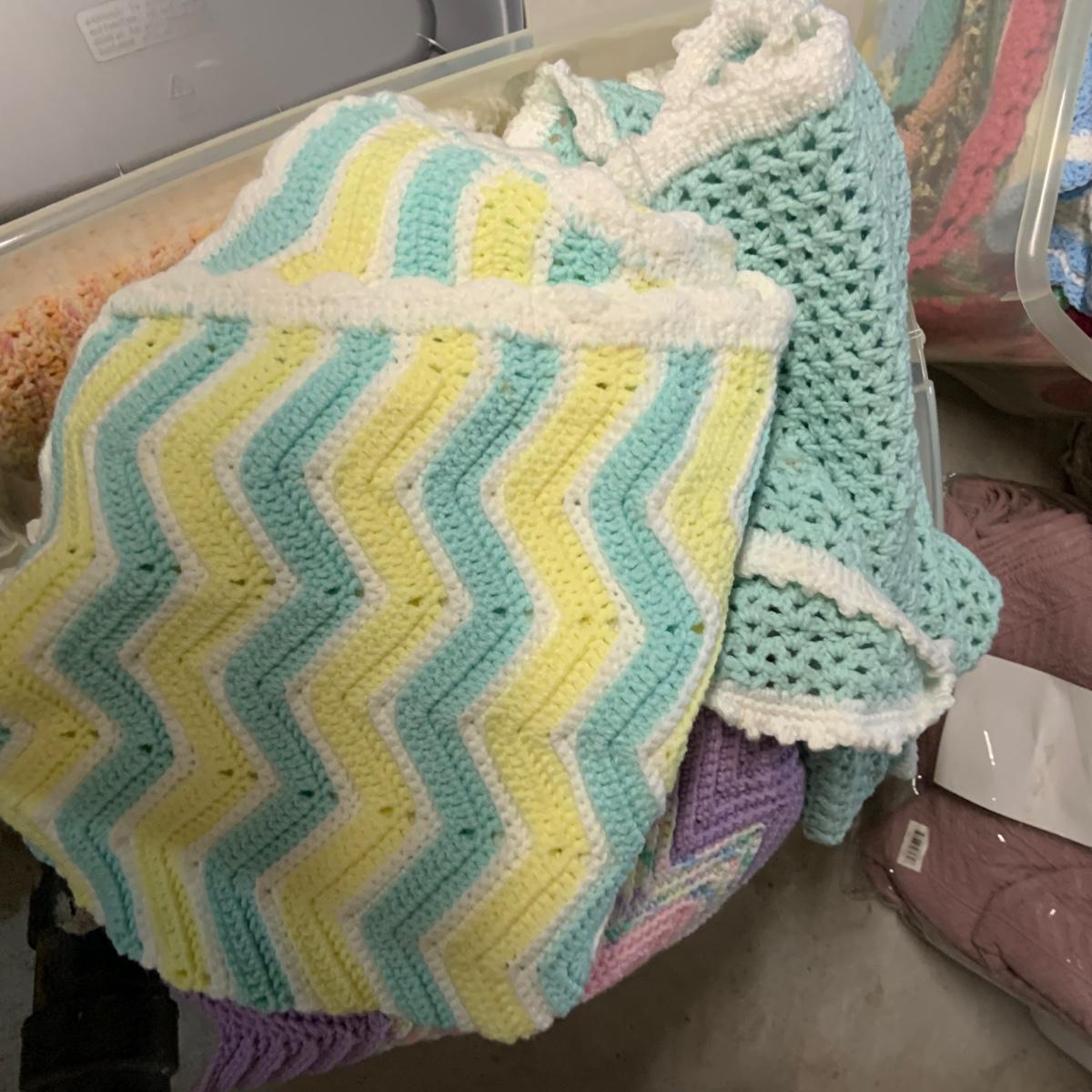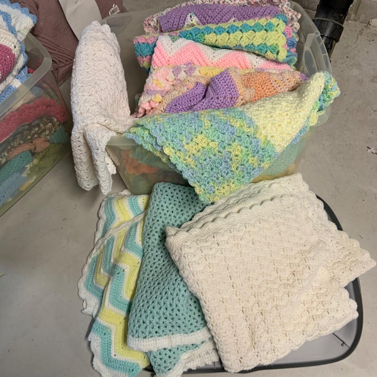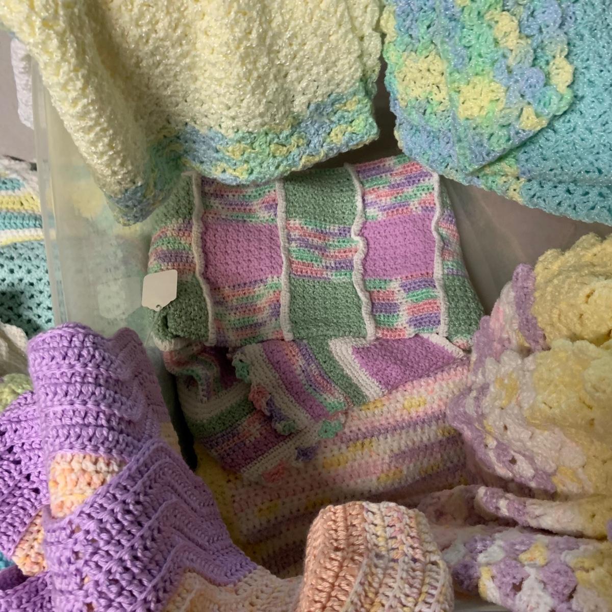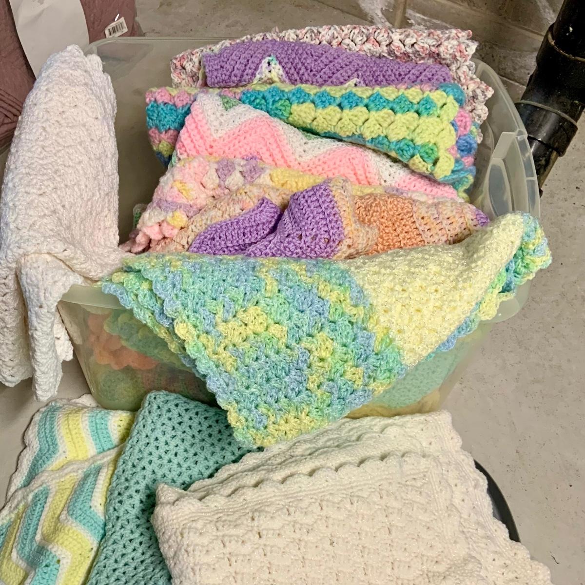 LOT:84: Assortment of Hand Crocheted Baby Blankets, Throws and More