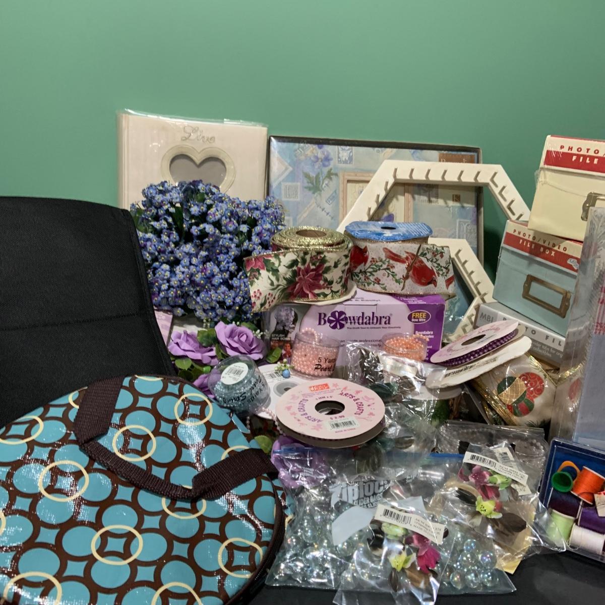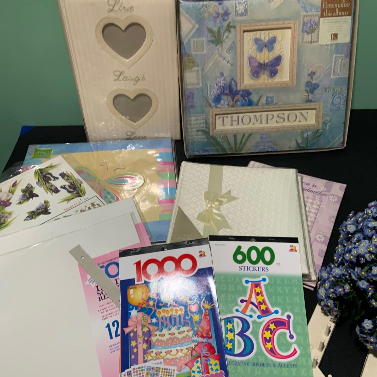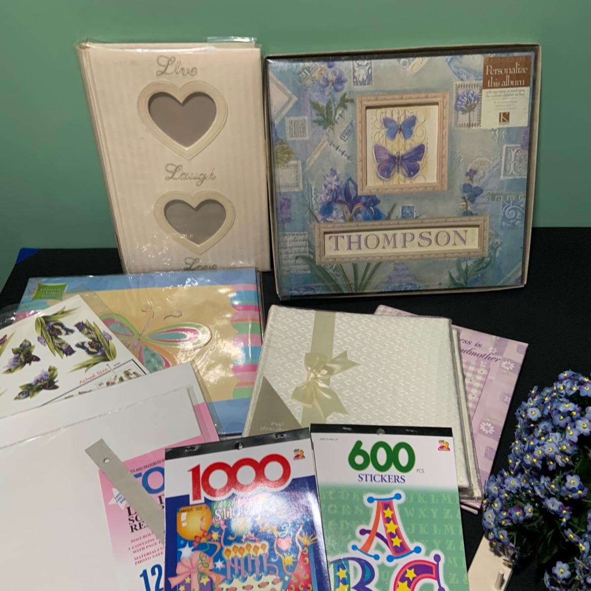LOT:90: Large Assortment of Crafting / Scrapbooking Necessities Including Marbles, Beads Flowers Bags Stickers, Photo Albums and Much More