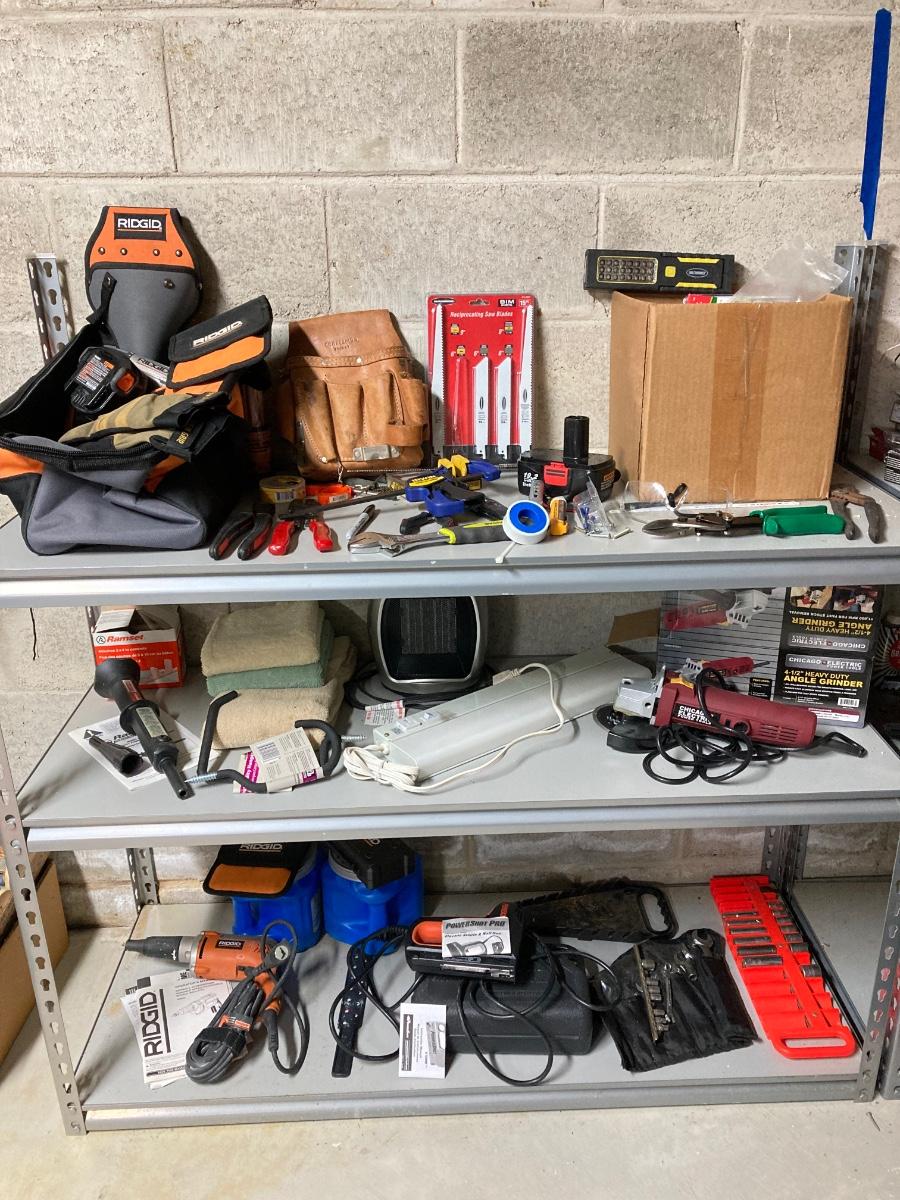 LOT 93: Contents of Shelf Unit - Rigid, Craftsman, Chicago Electric and More