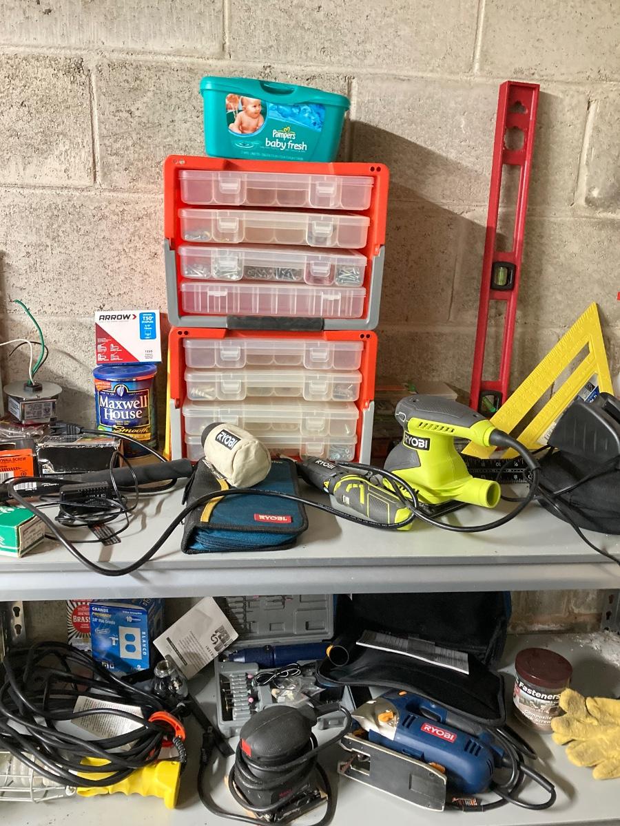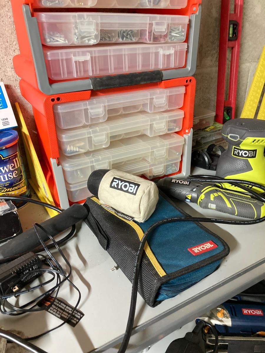 LOT 94: Tools and More - Ryobi, Rotary Tool Set, Plastic Hardware with Storage