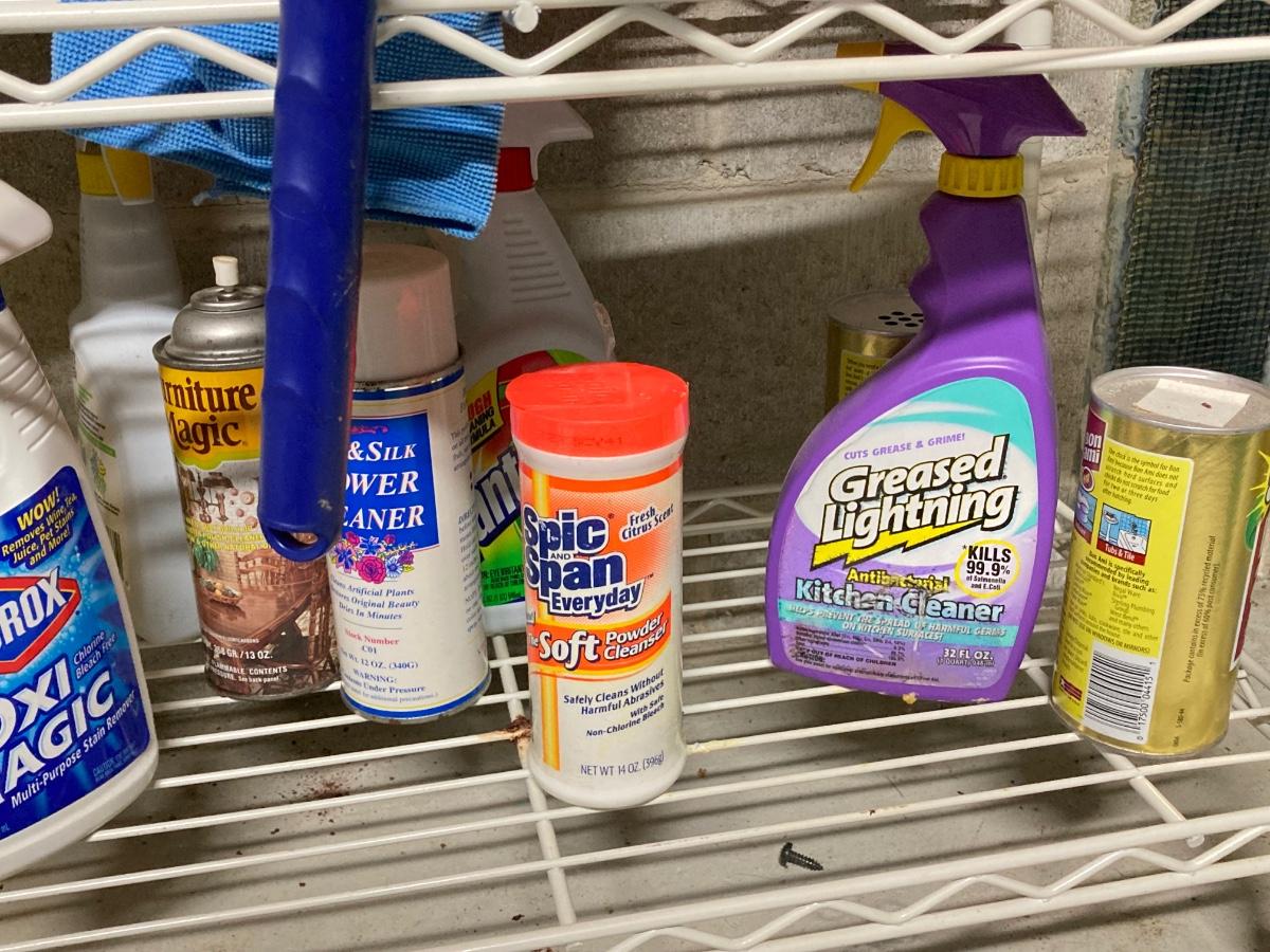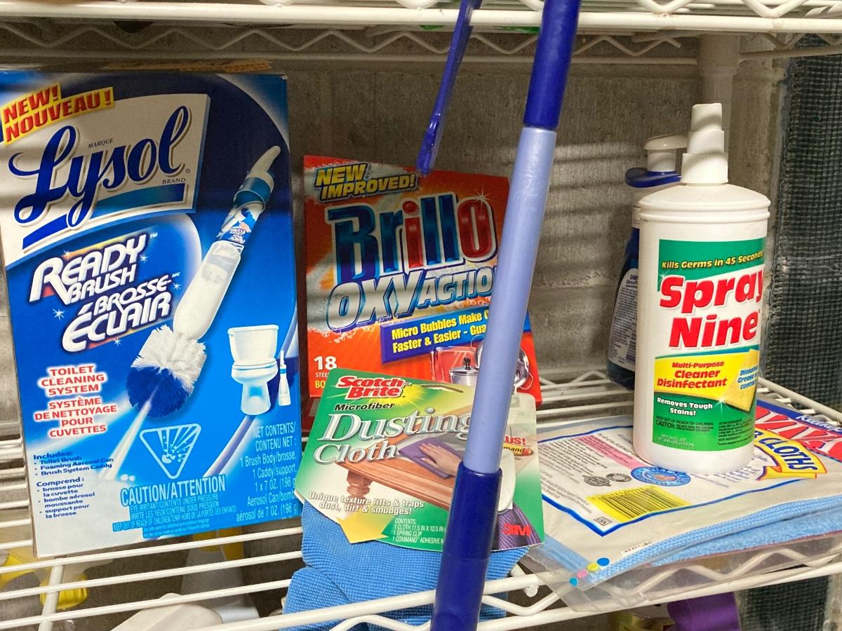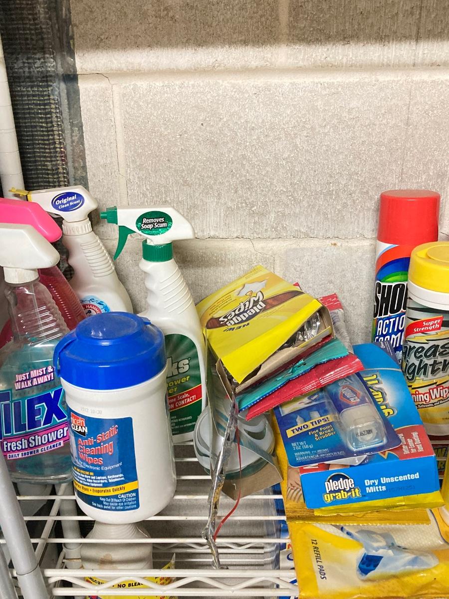 LOT 98: Contents of Shelf Unit - Household Cleaning Items Products and More