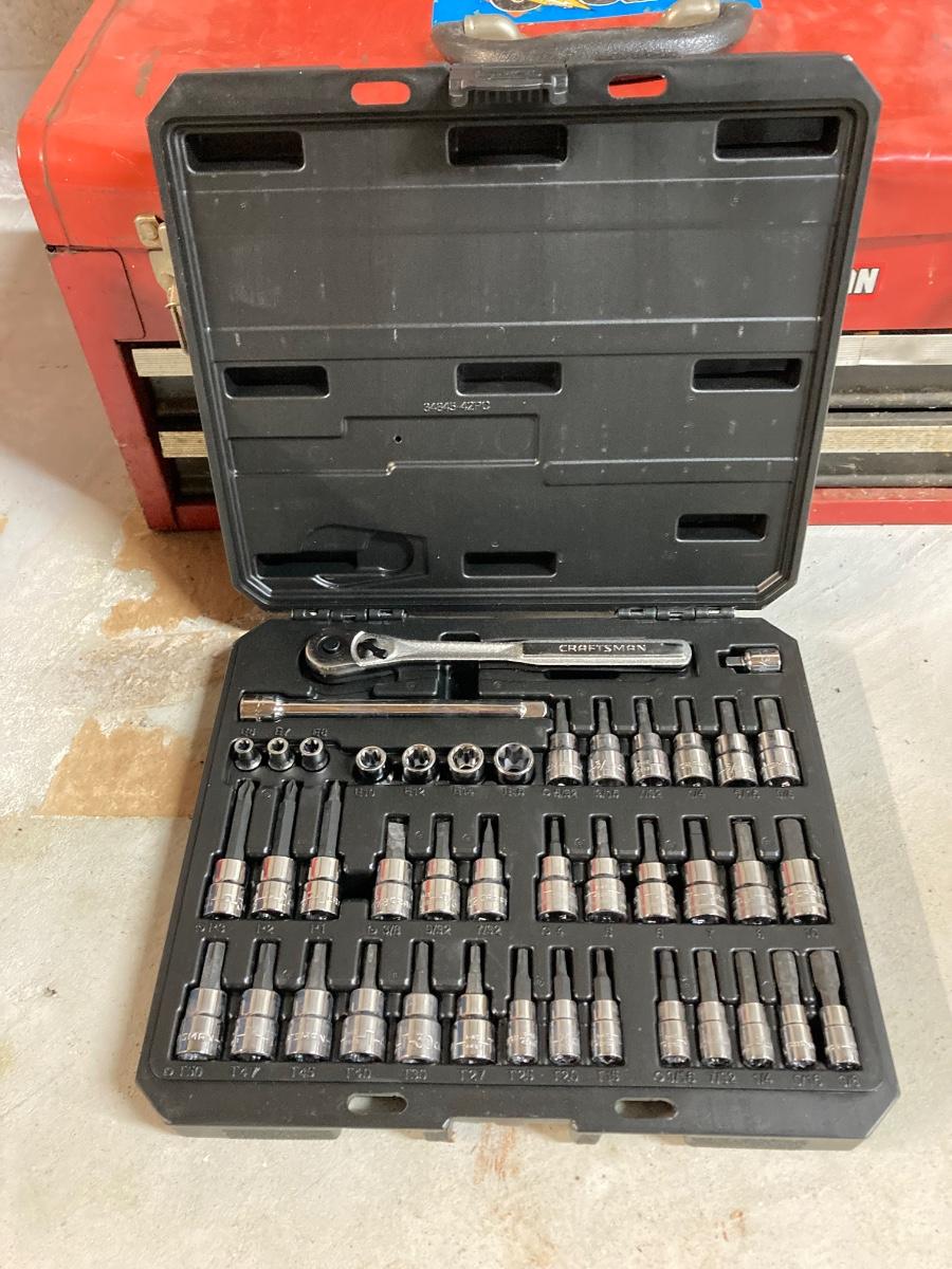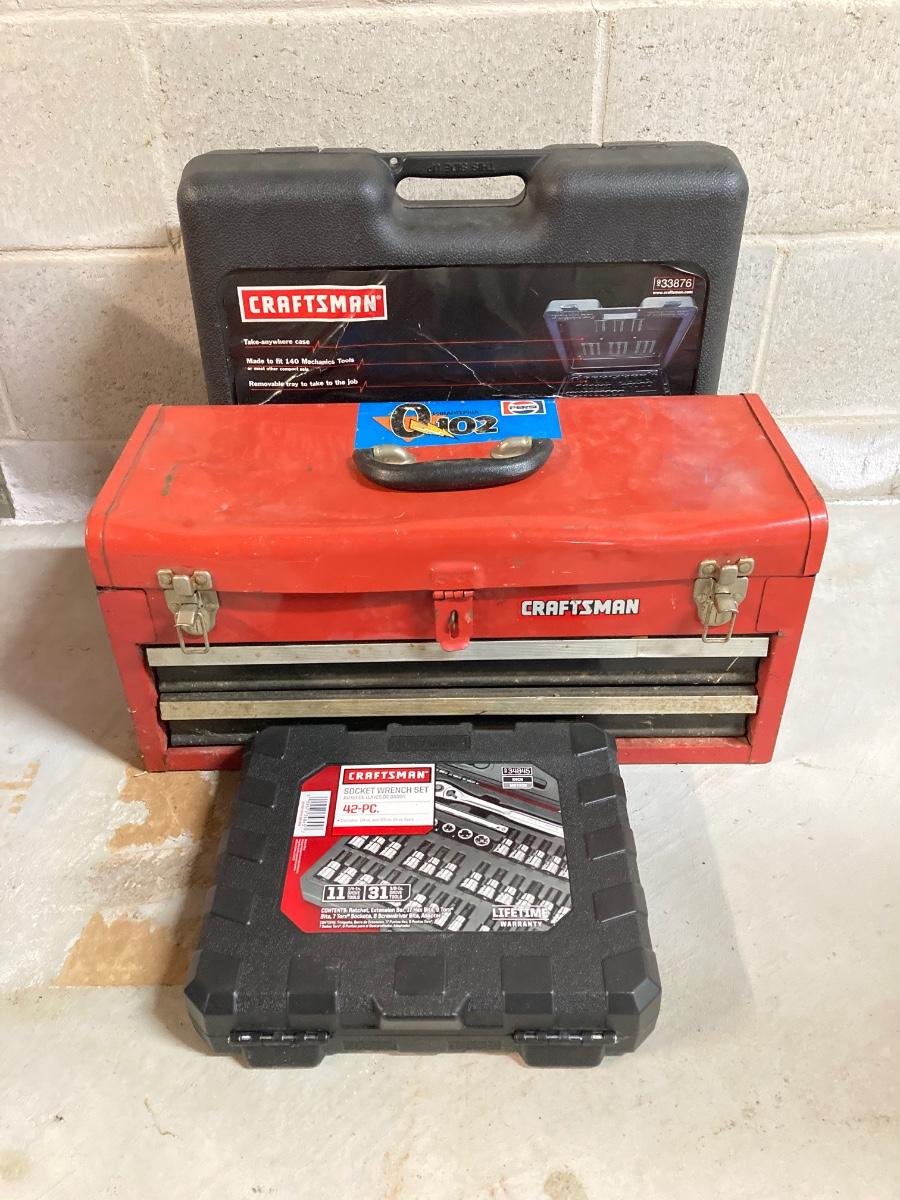 LOT 100: Craftsman Tool Box, Socket Wrench Sets and Carry Case