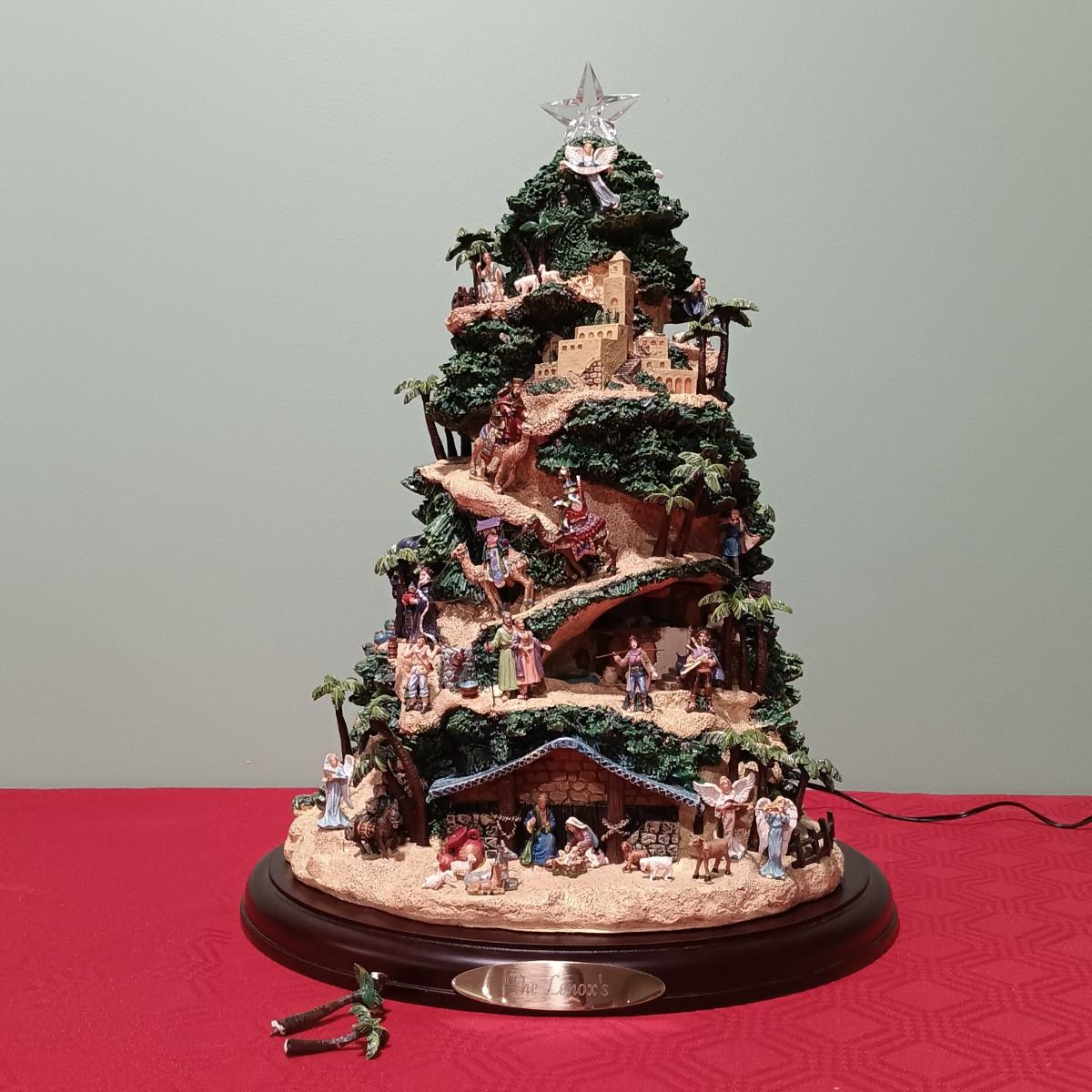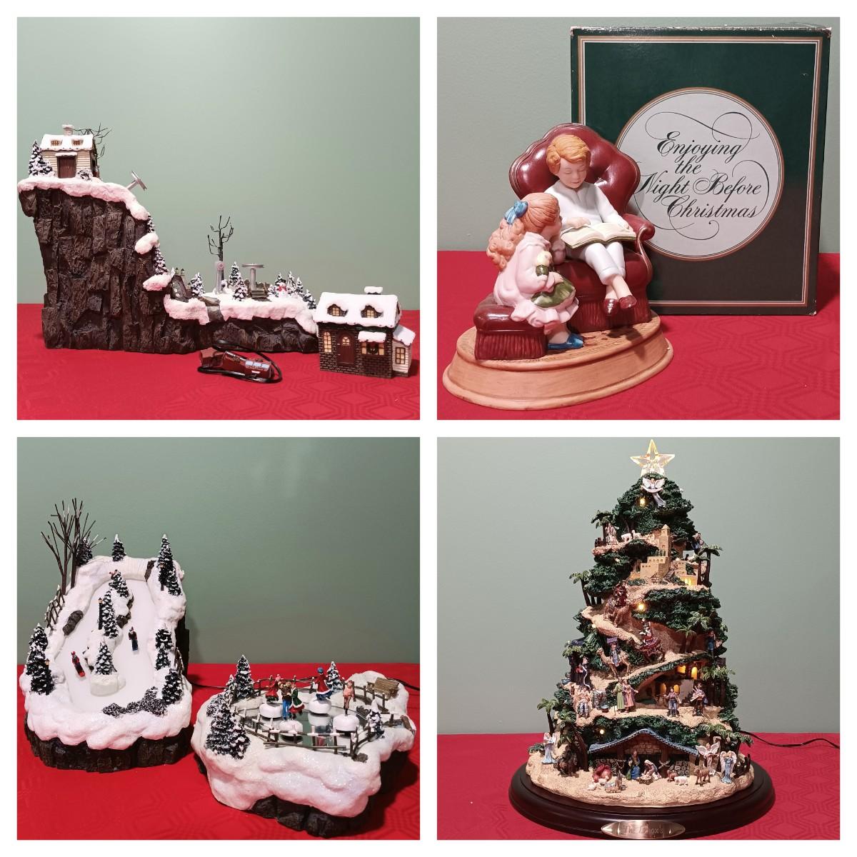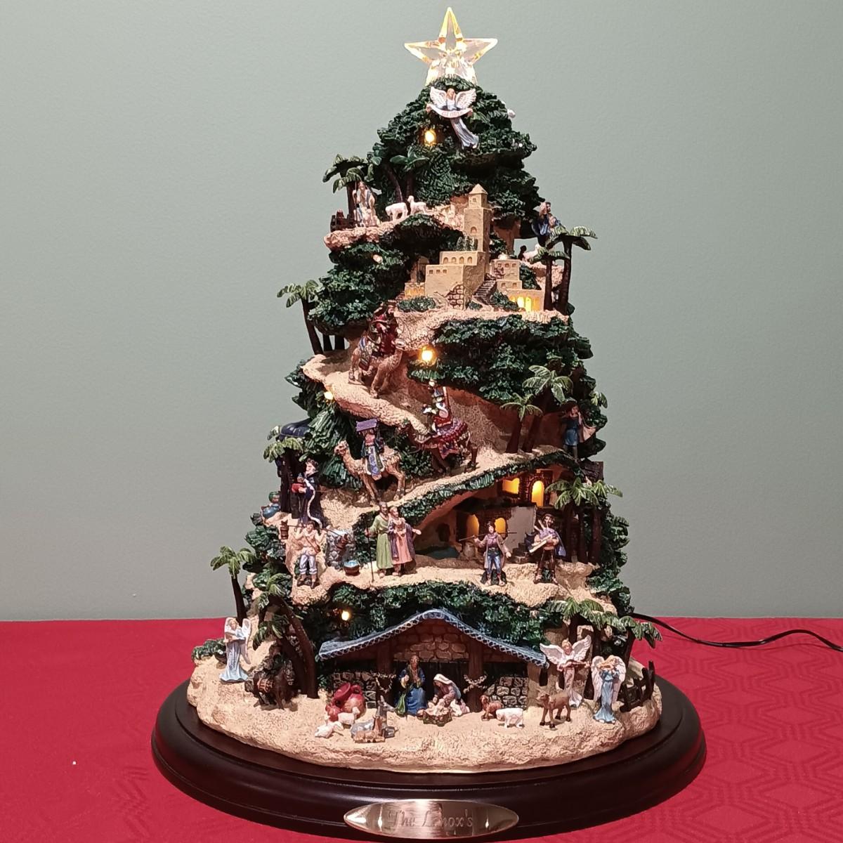 LOT 119: Thomas Kinkade Mistletoe Mountain Collection and Nativity Tree w/ Avon Christmas Memories Figurine